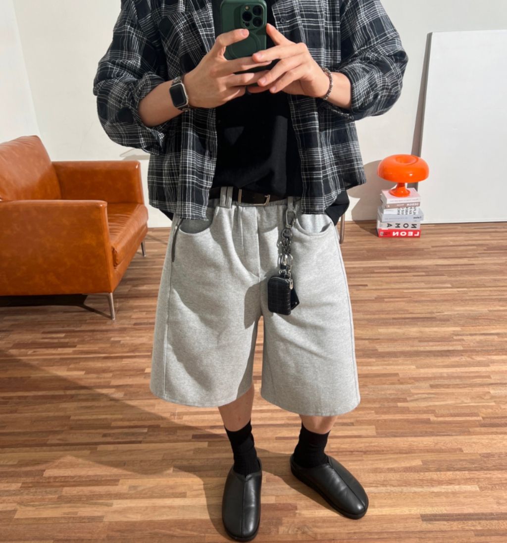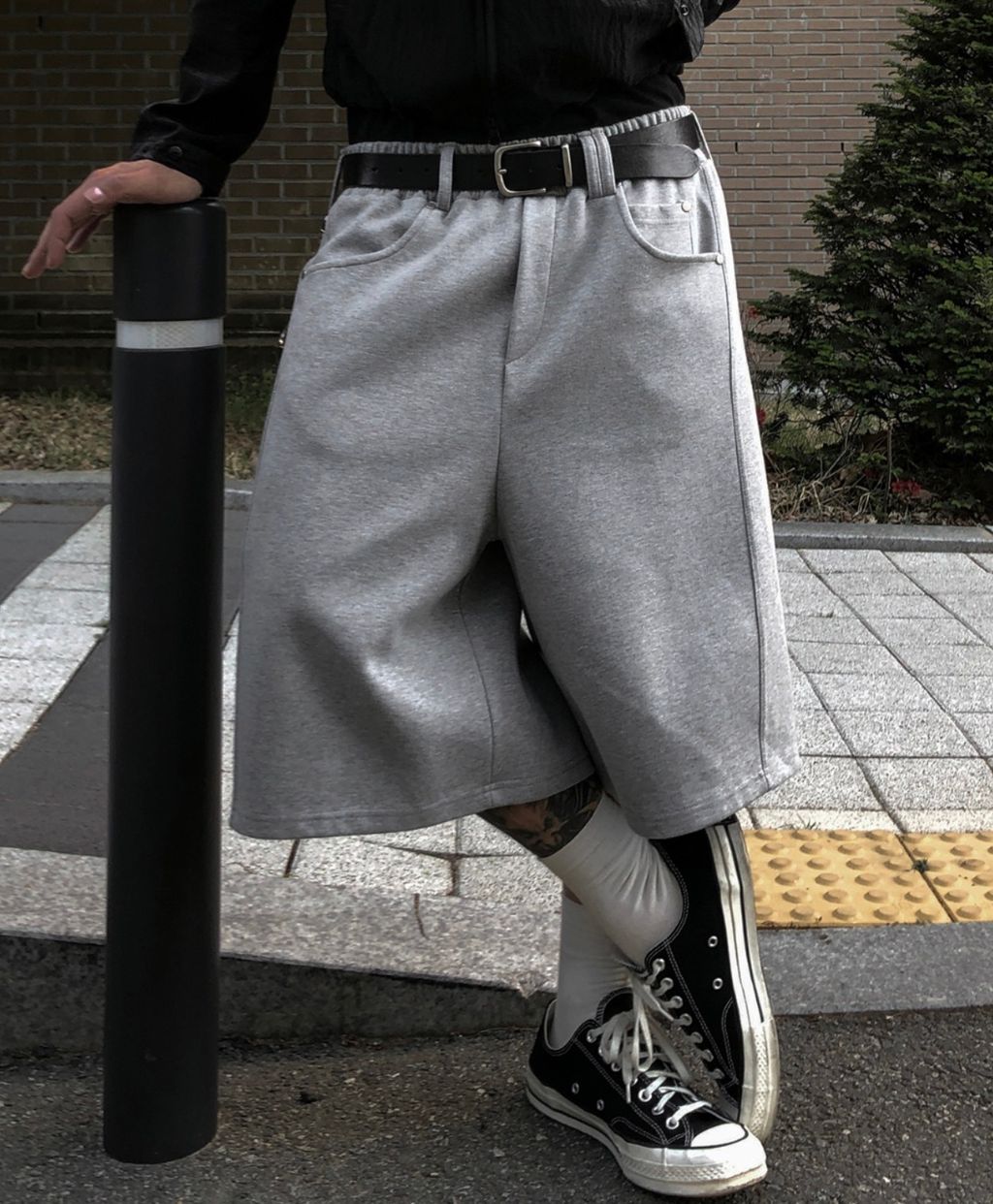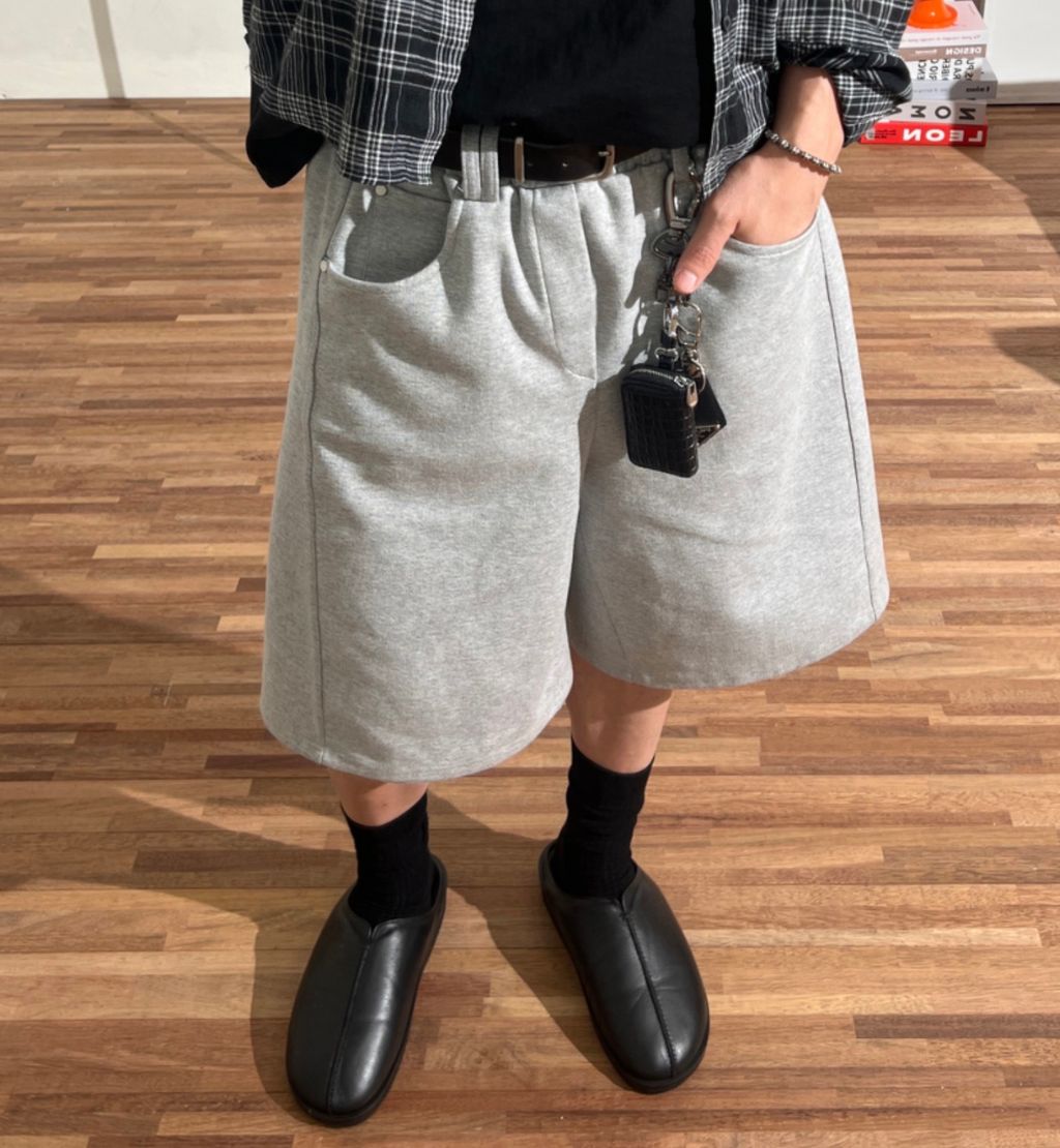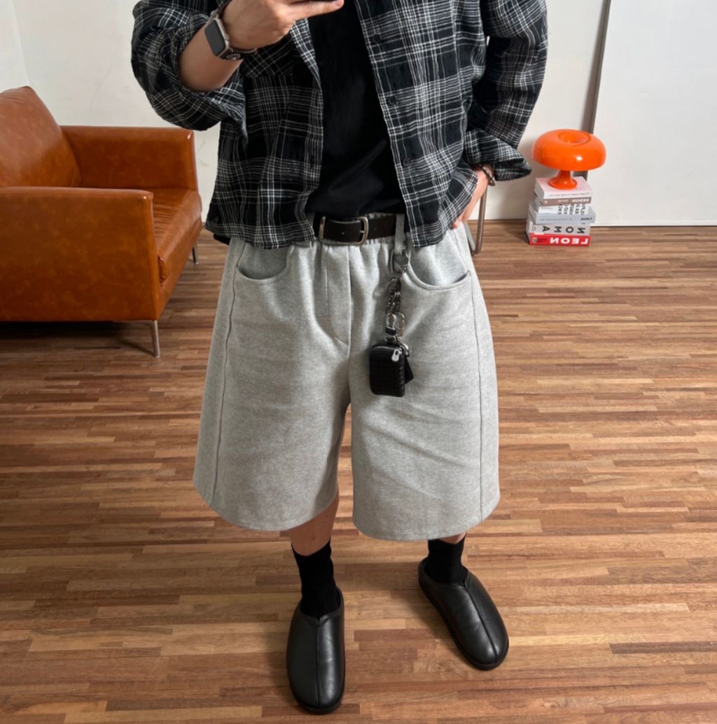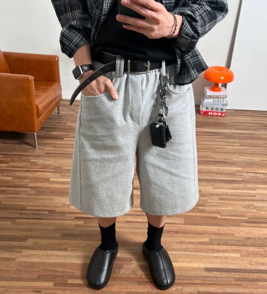 腰帶扣環裝飾 棉質 五分 寬管 棉褲 短褲 三色