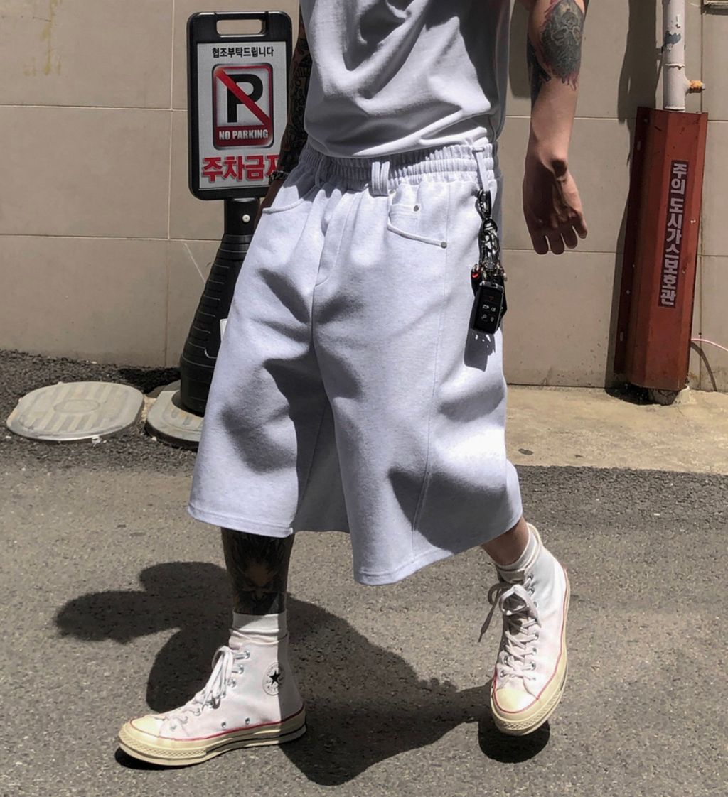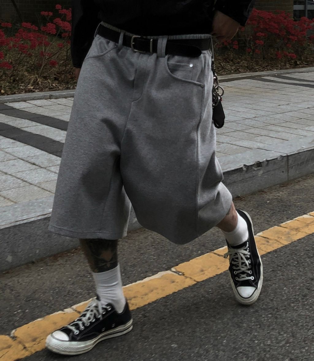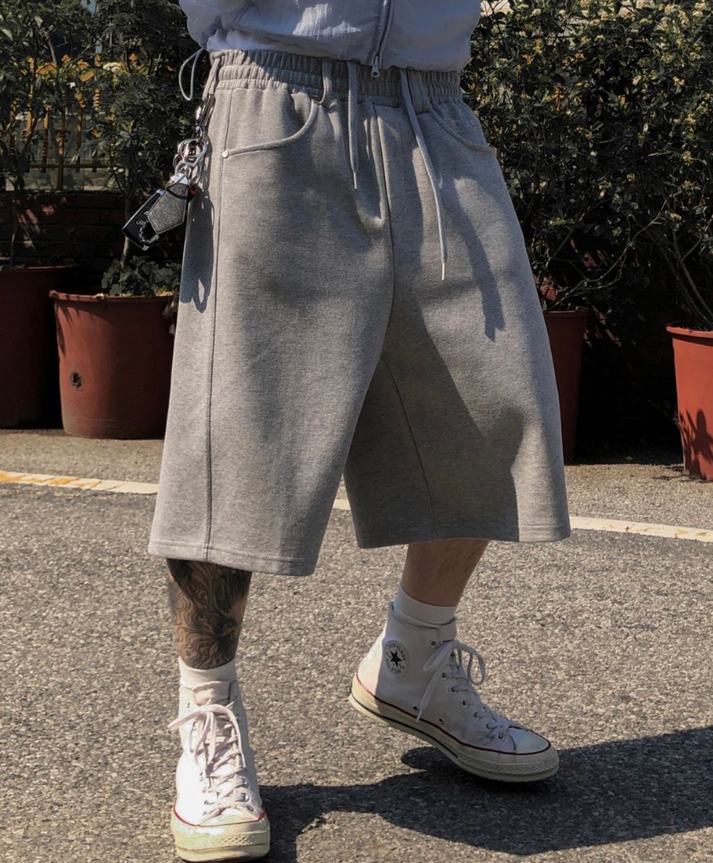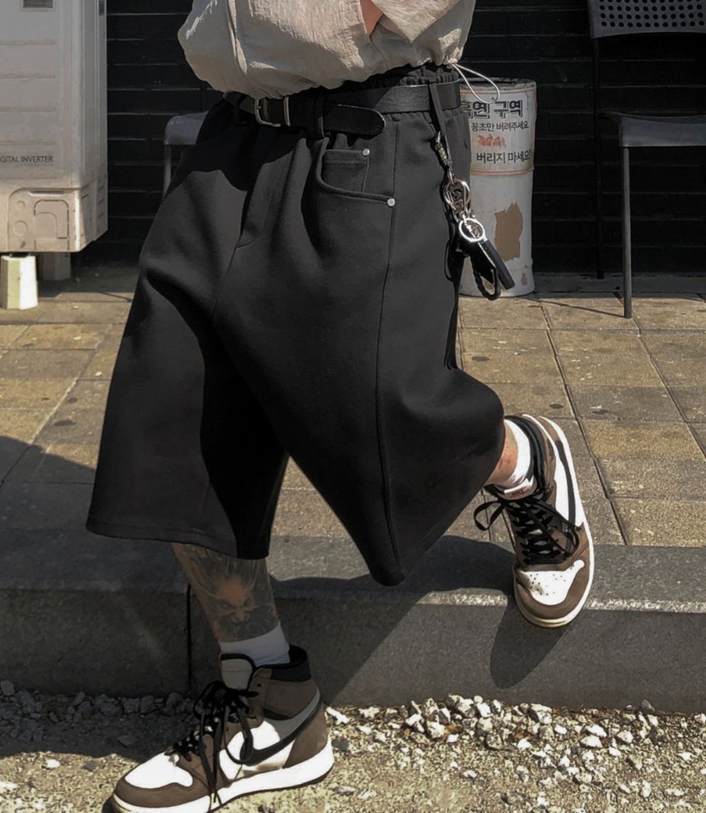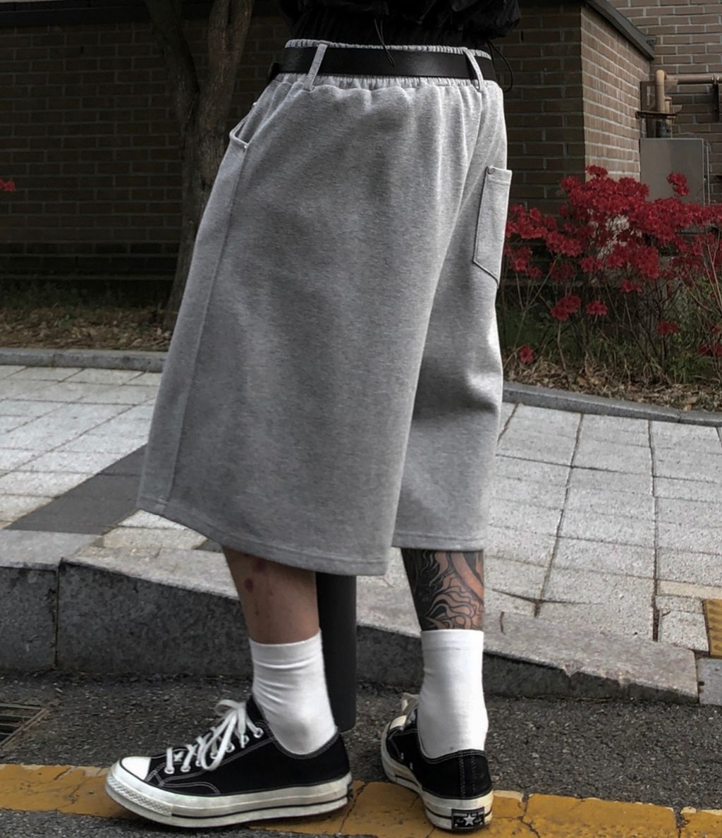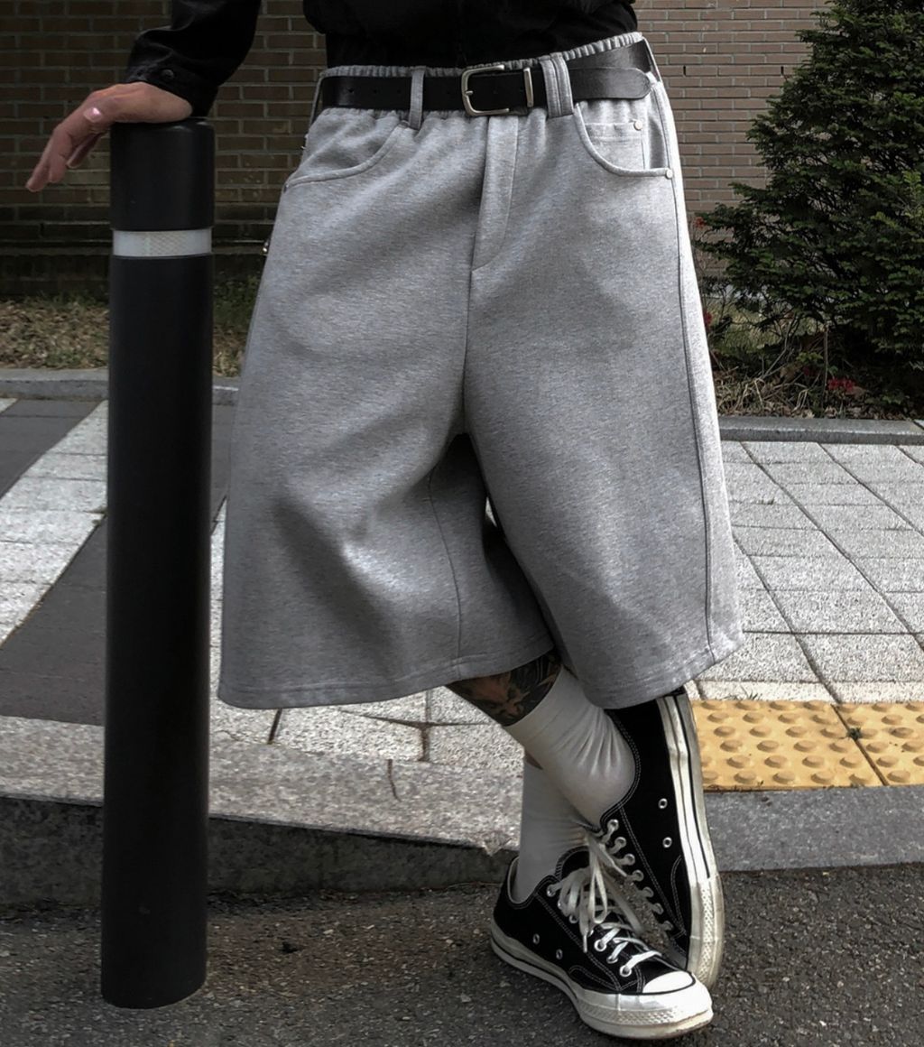 腰帶扣環裝飾 棉質 五分 寬管 棉褲 短褲 三色