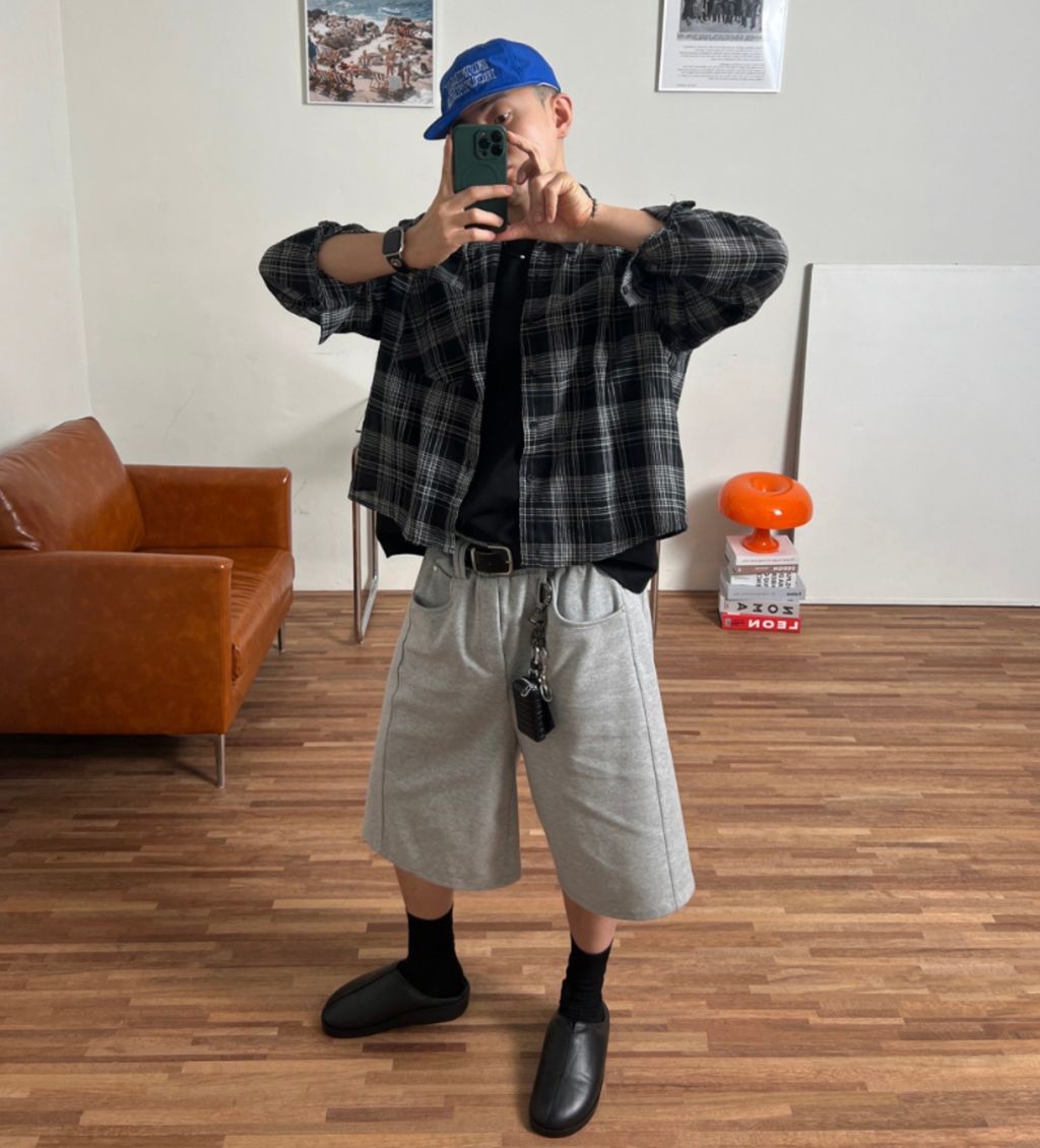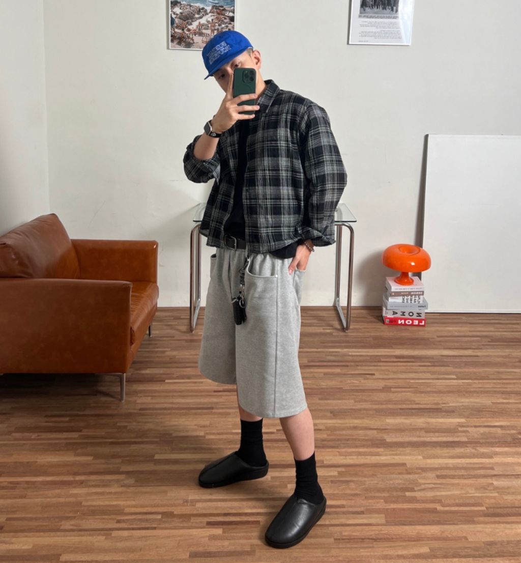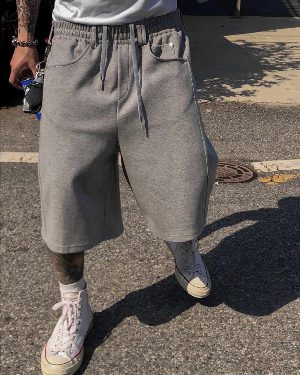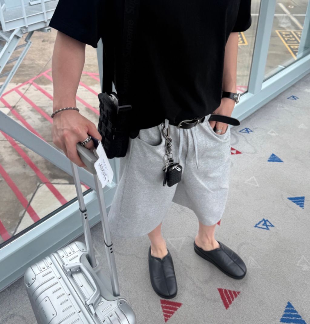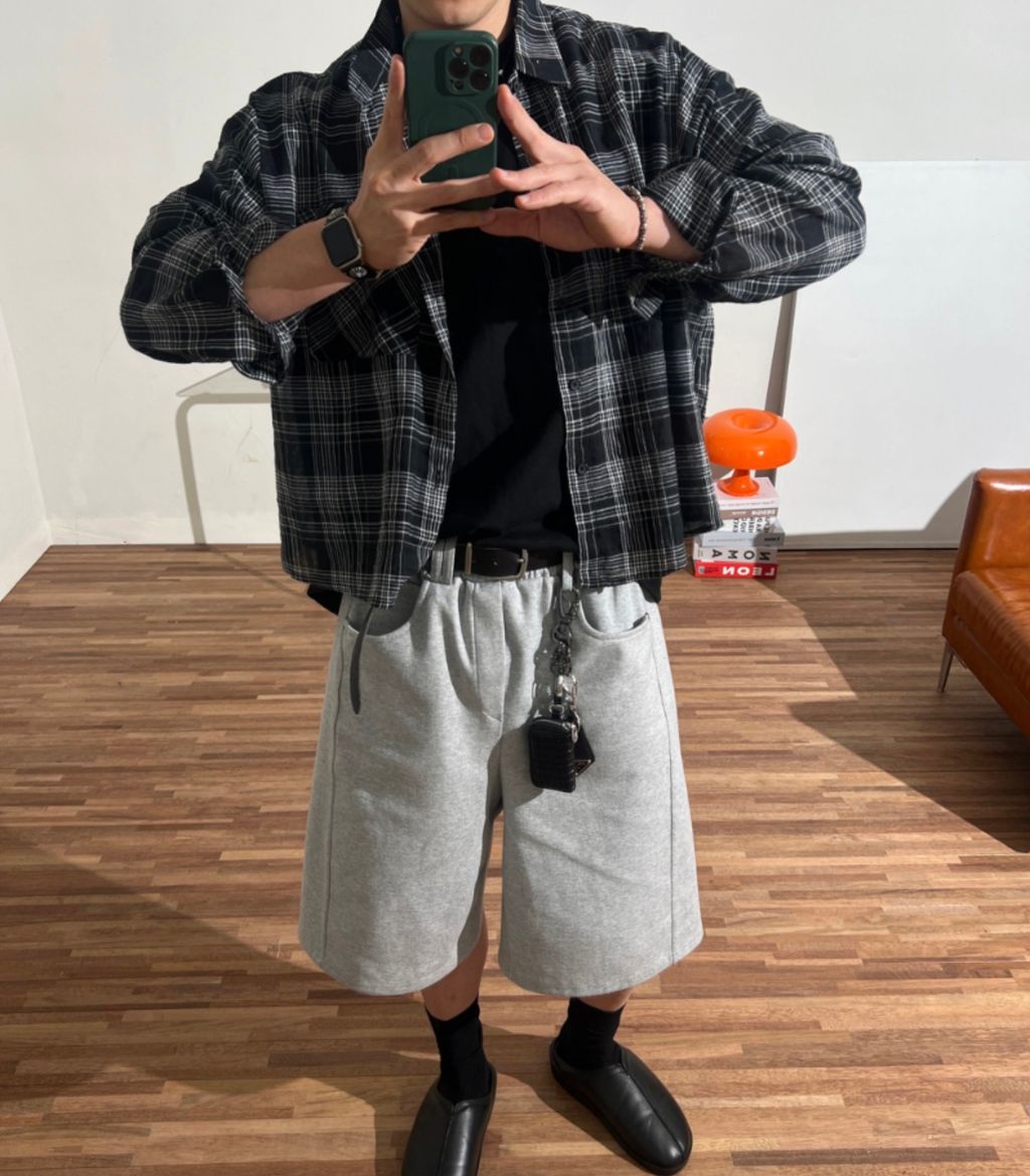 腰帶扣環裝飾 棉質 五分 寬管 棉褲 短褲 三色