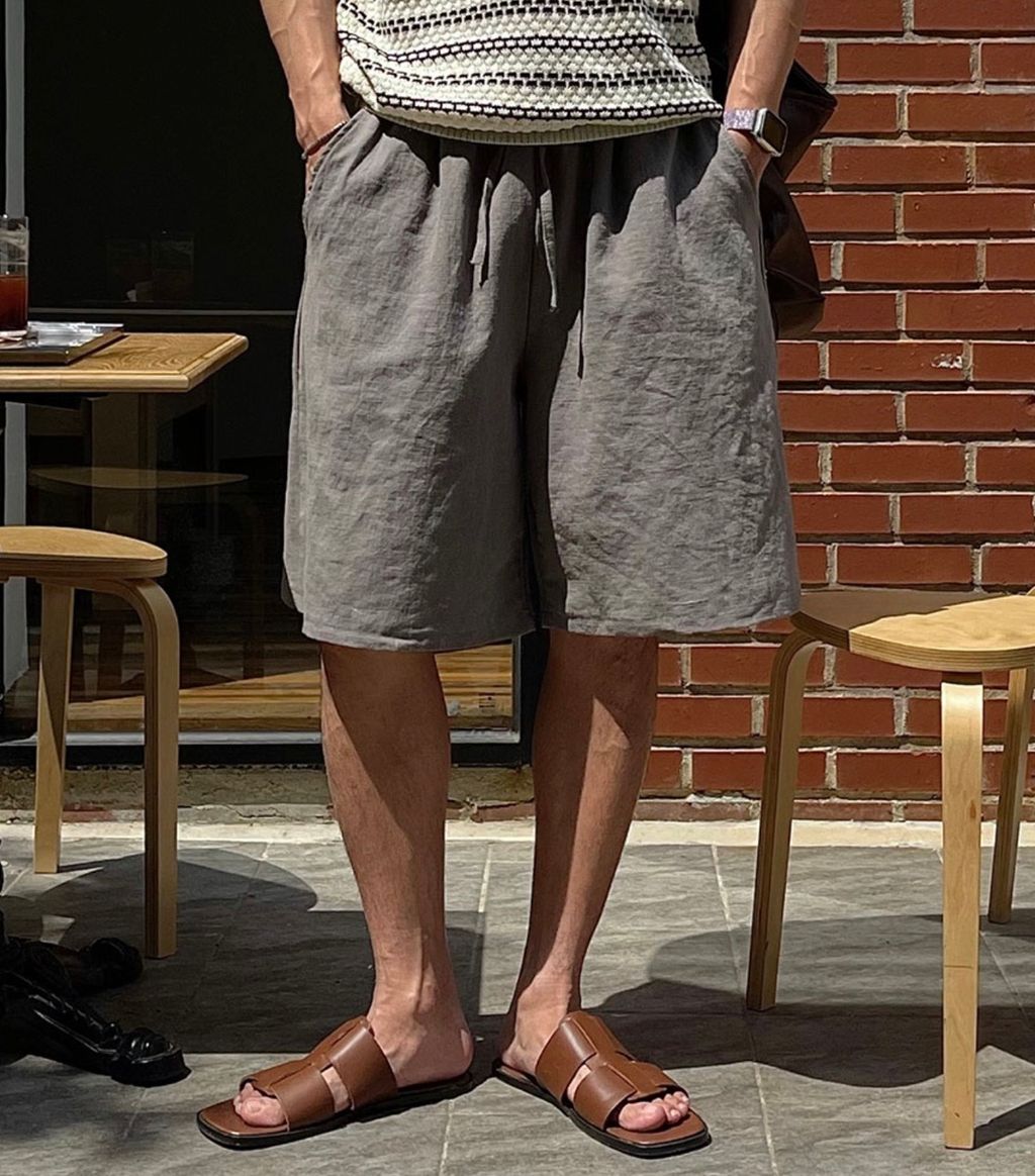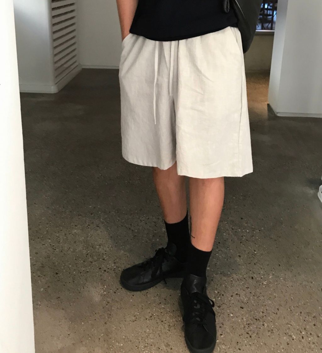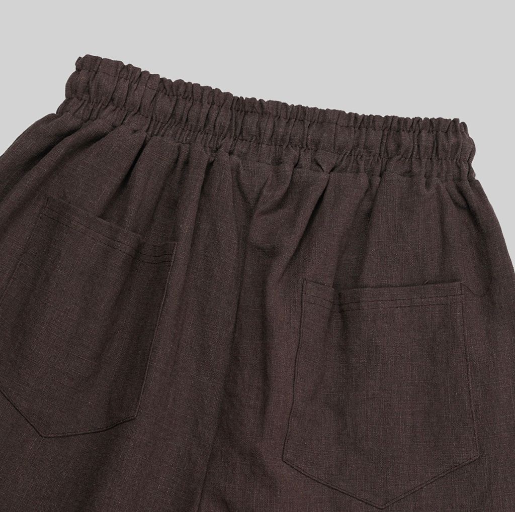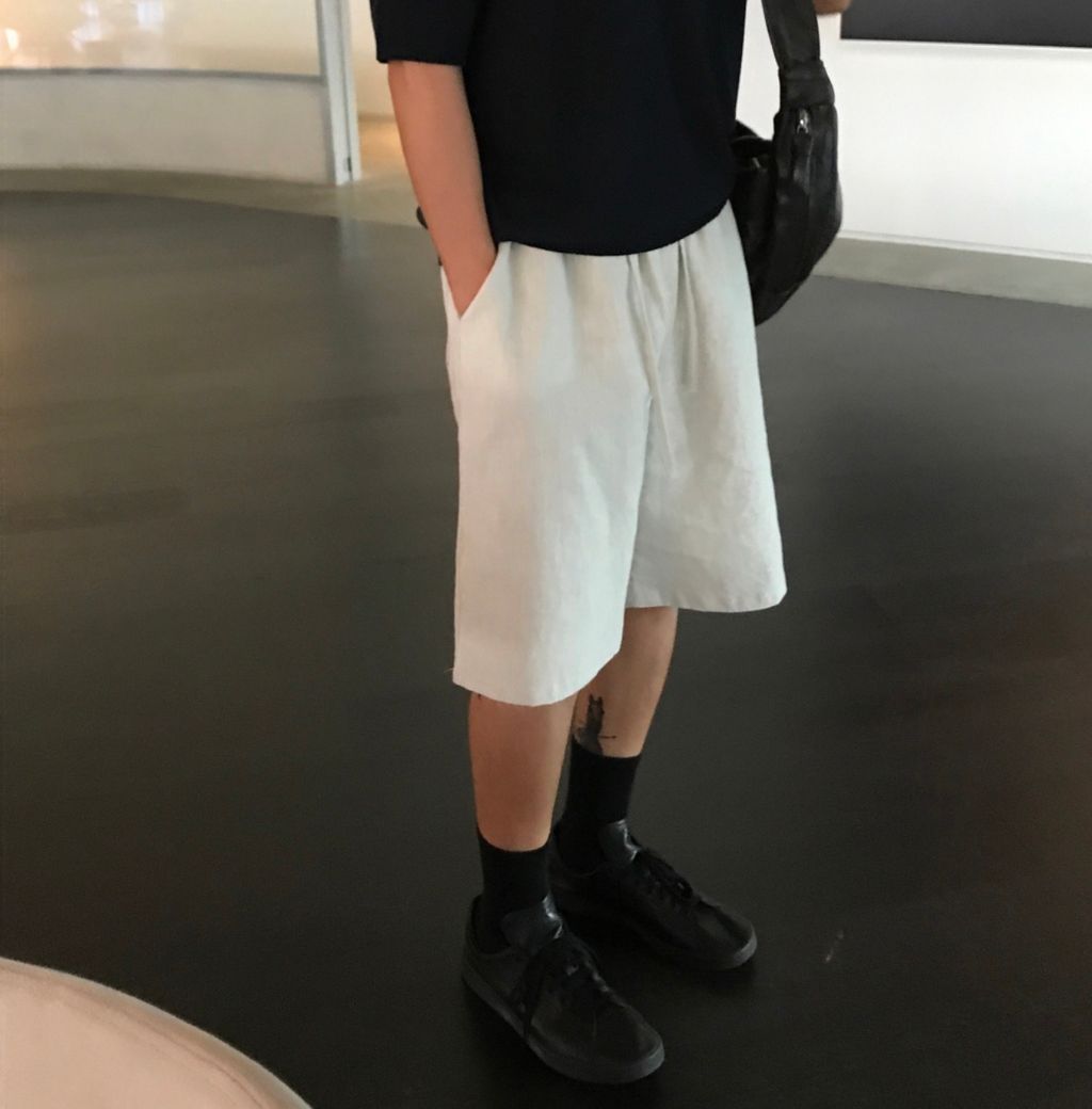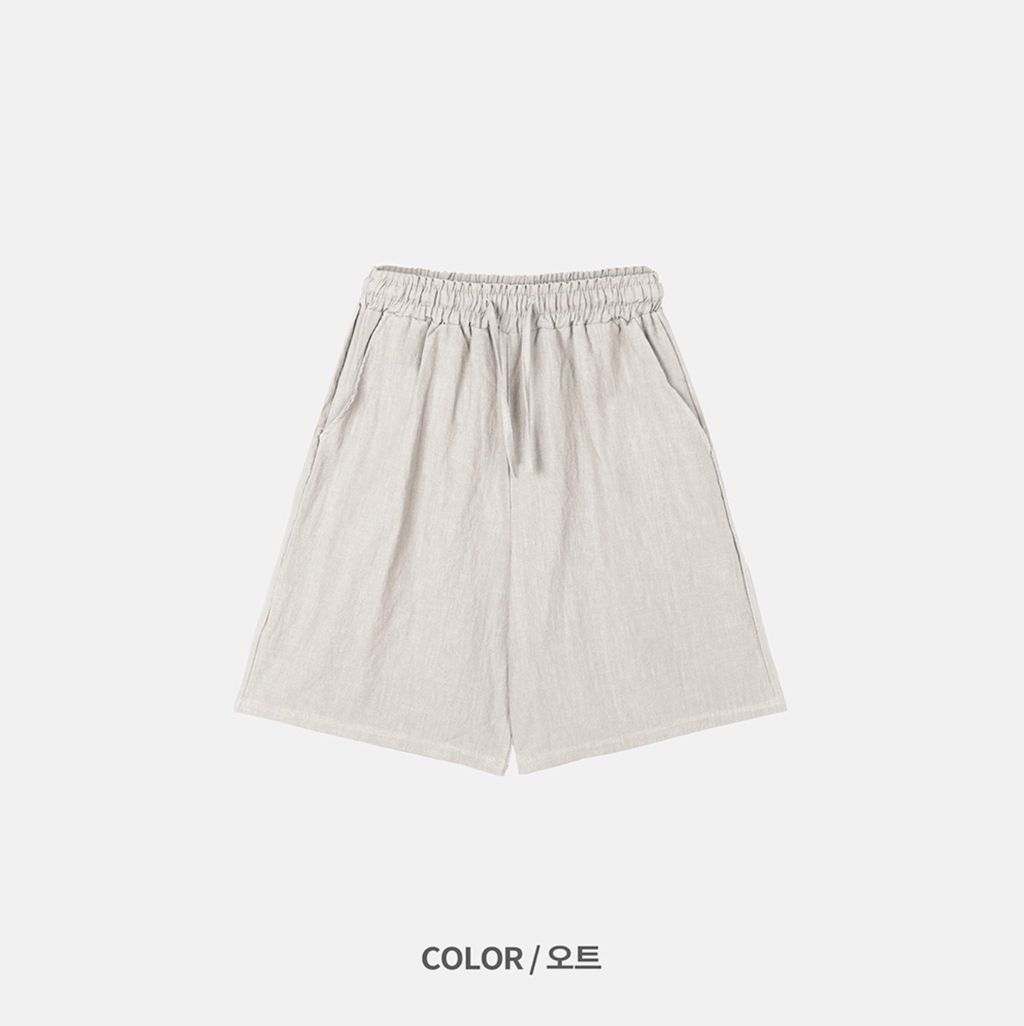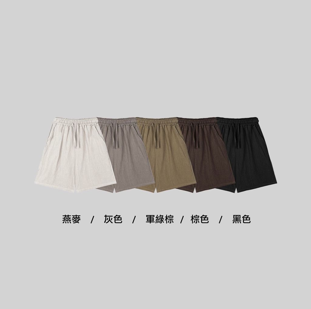 鬆緊抽繩 渡假風 亞麻料 微寬短褲 五色