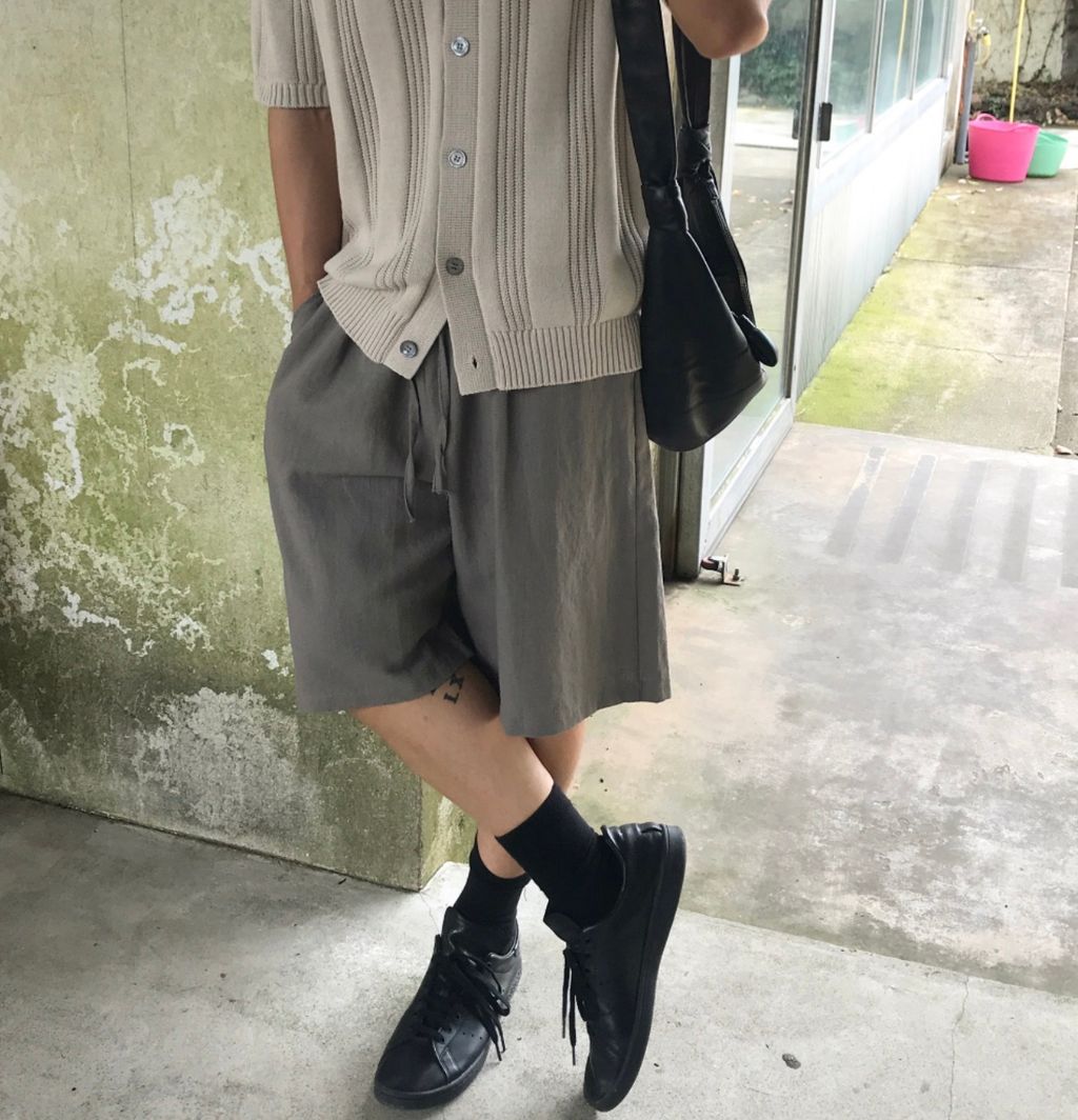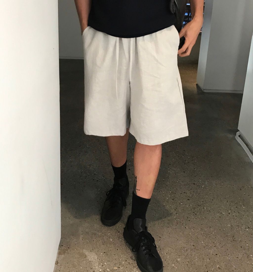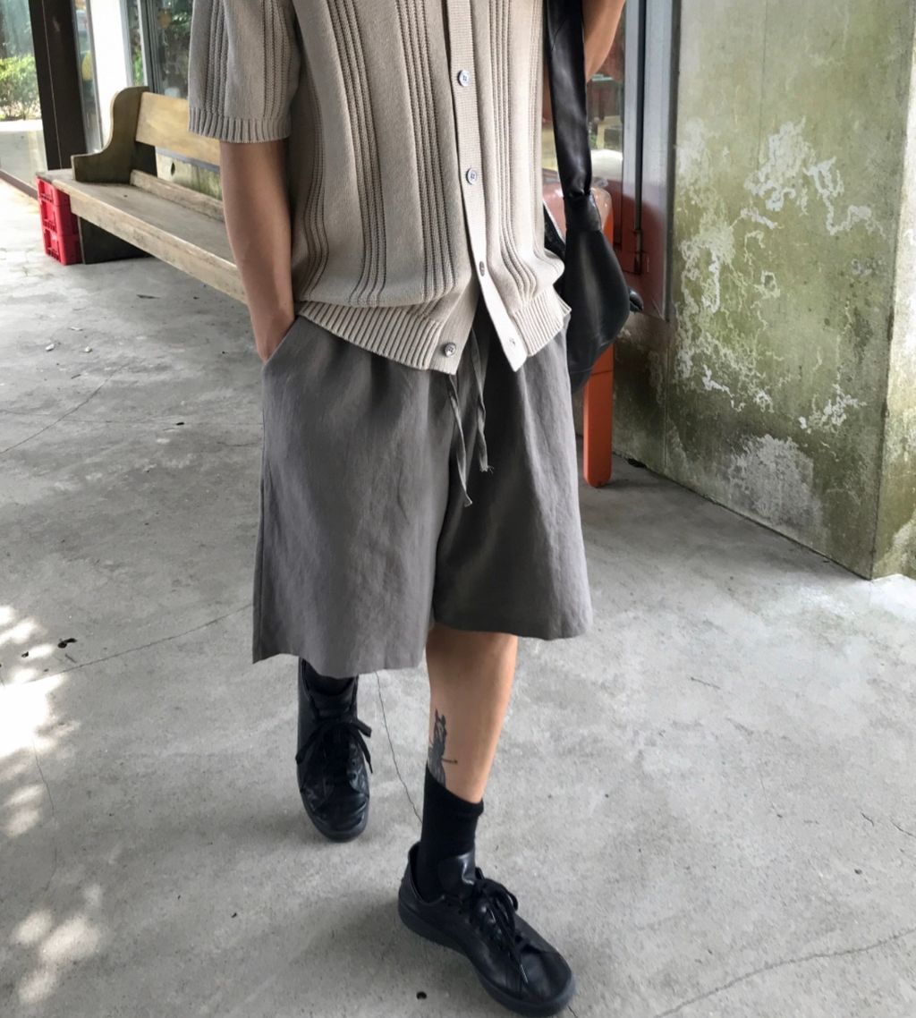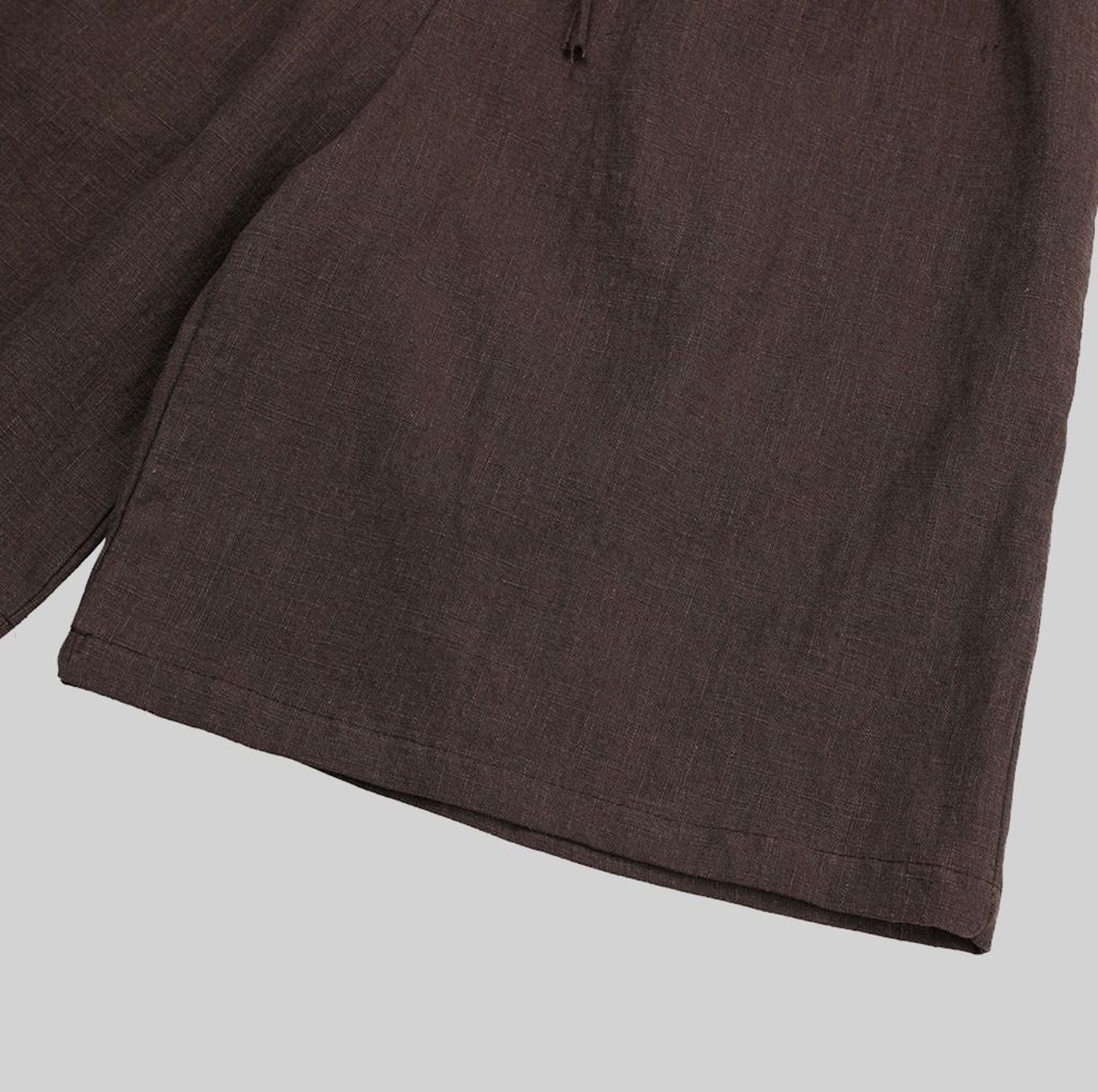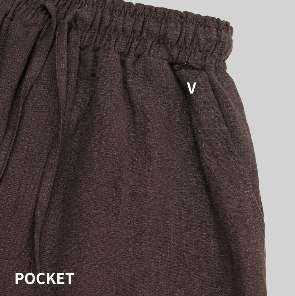 鬆緊抽繩 渡假風 亞麻料 微寬短褲 五色