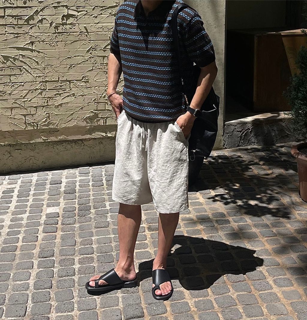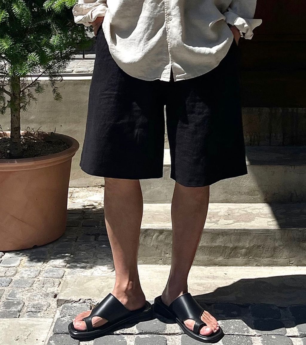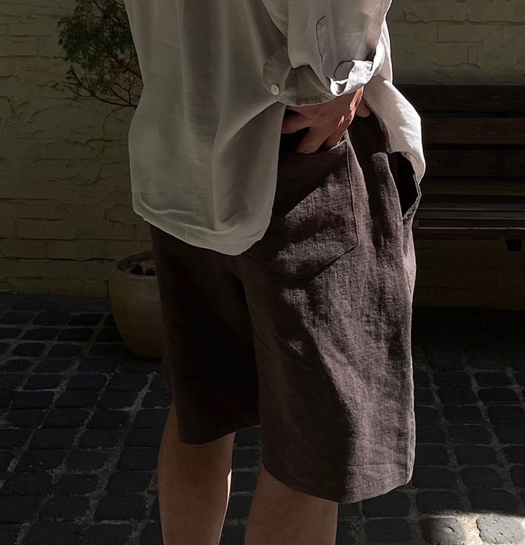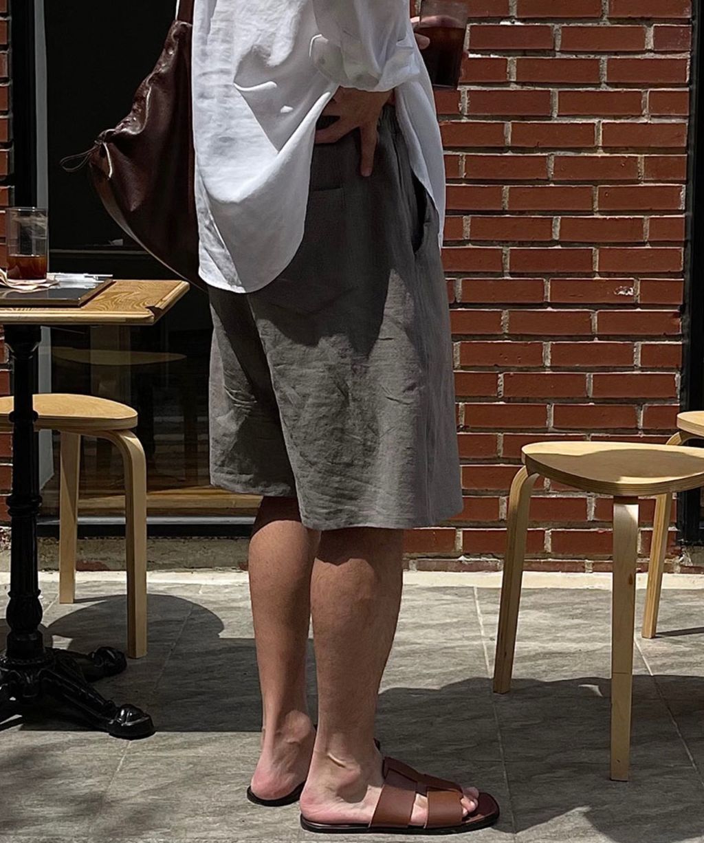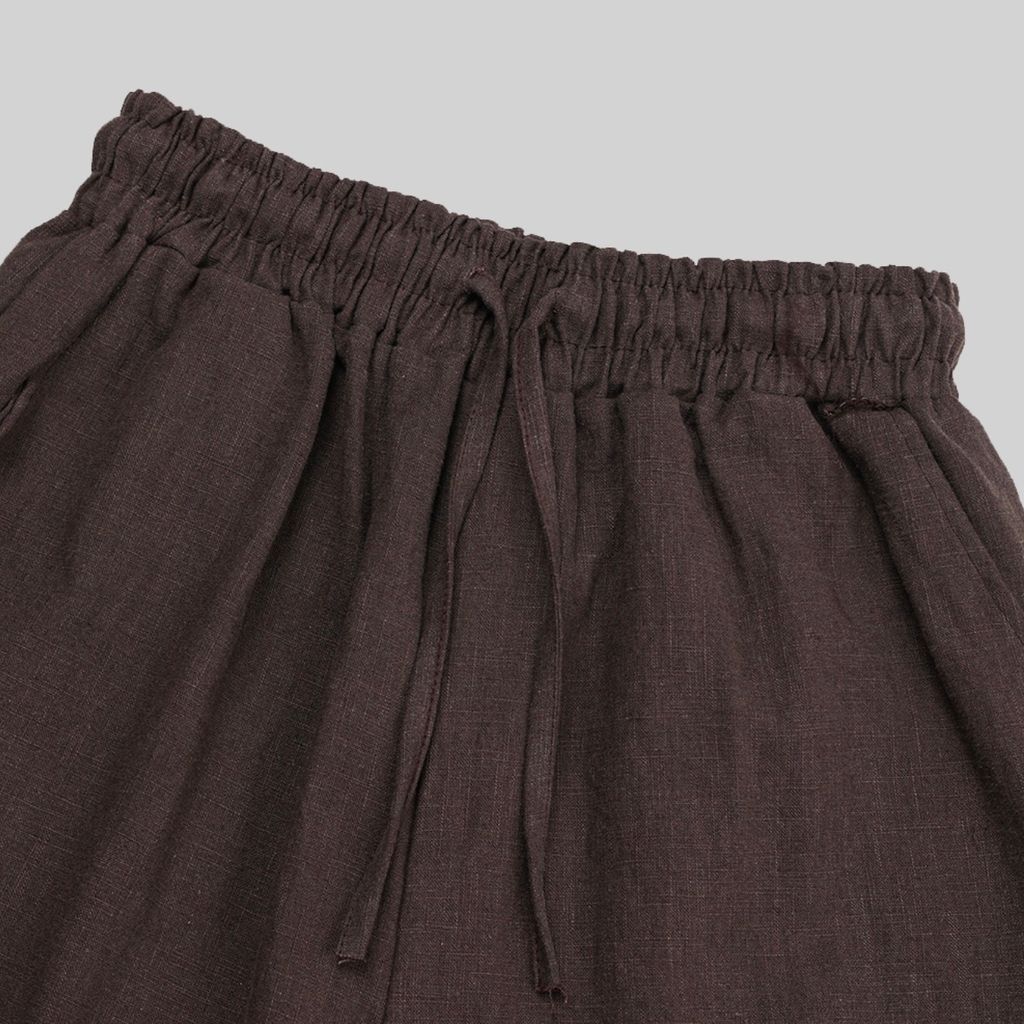 鬆緊抽繩 渡假風 亞麻料 微寬短褲 五色