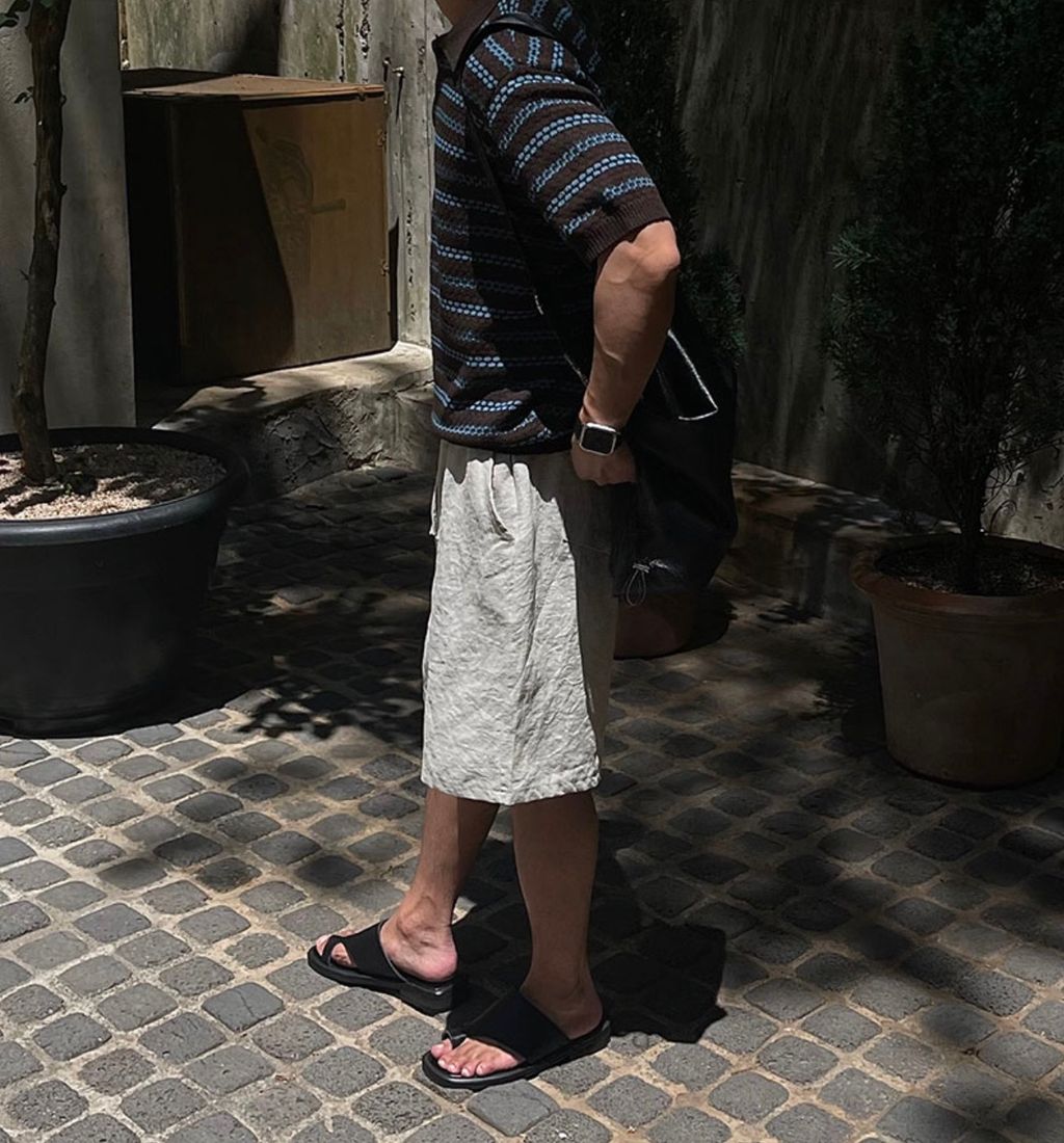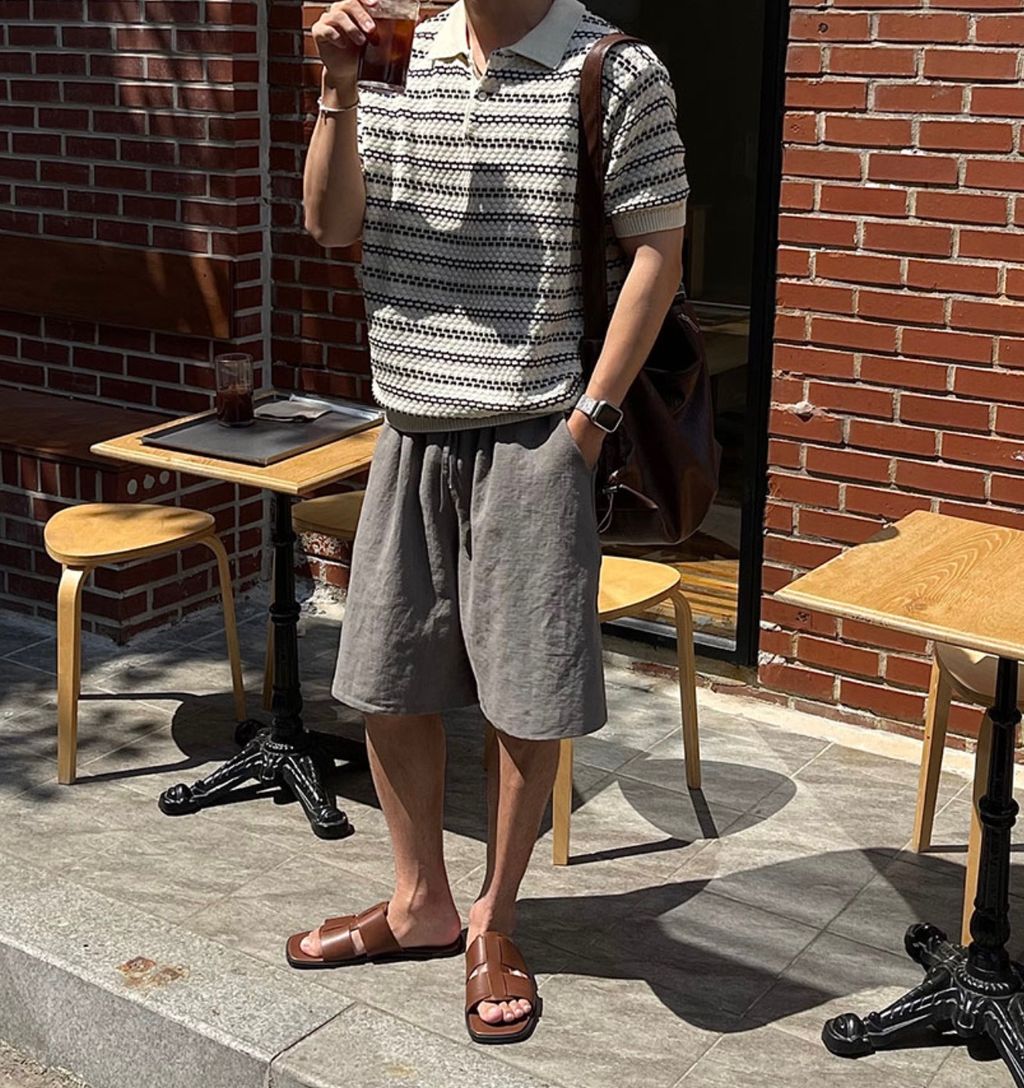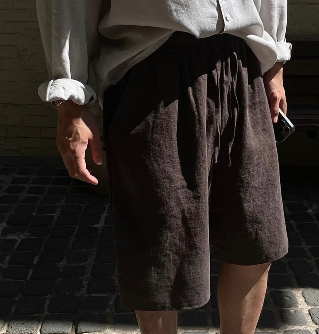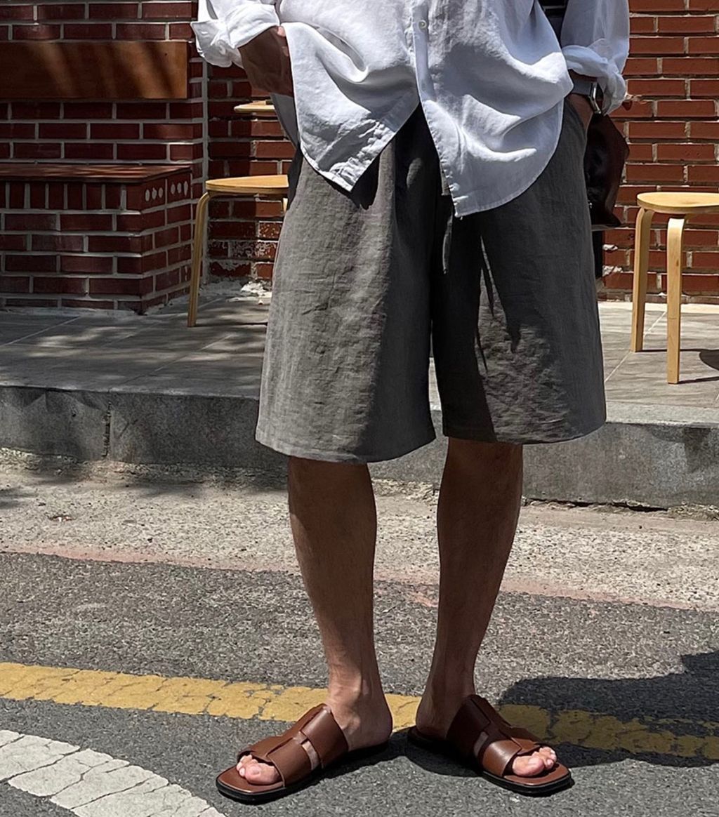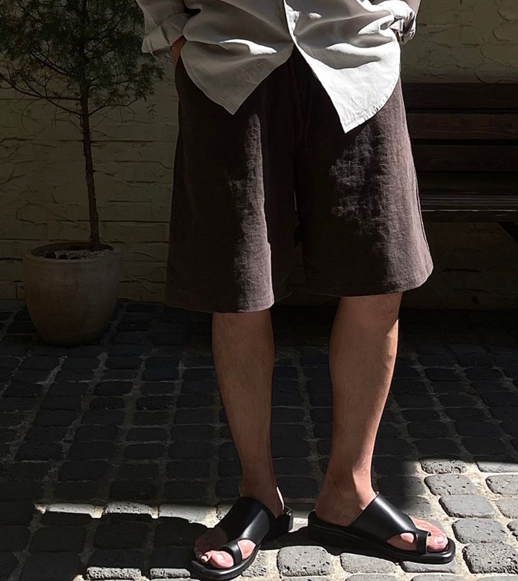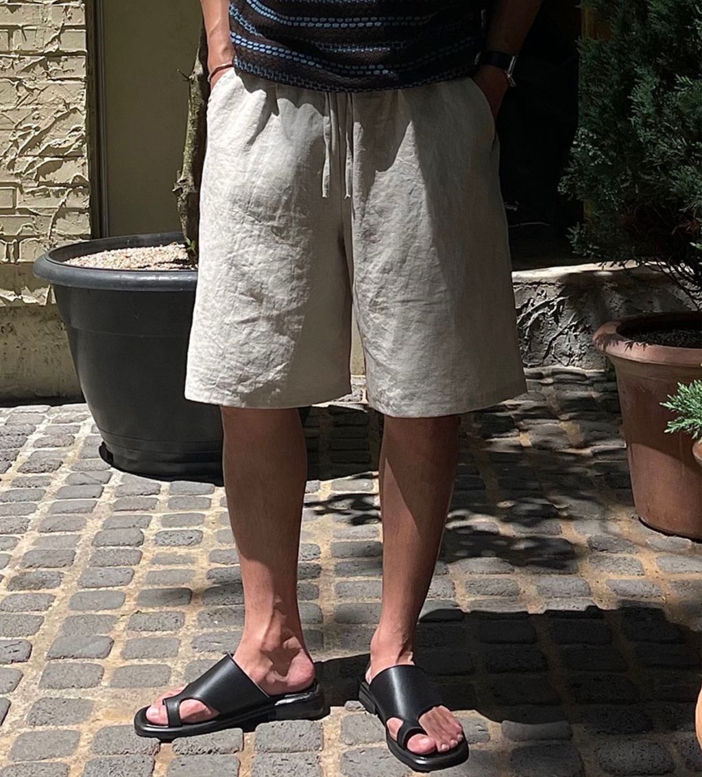 鬆緊抽繩 渡假風 亞麻料 微寬短褲 五色