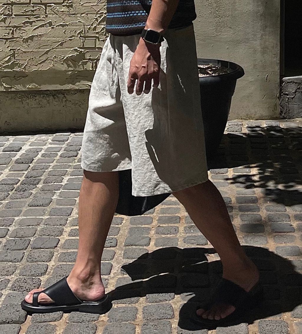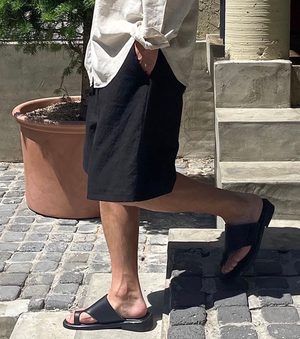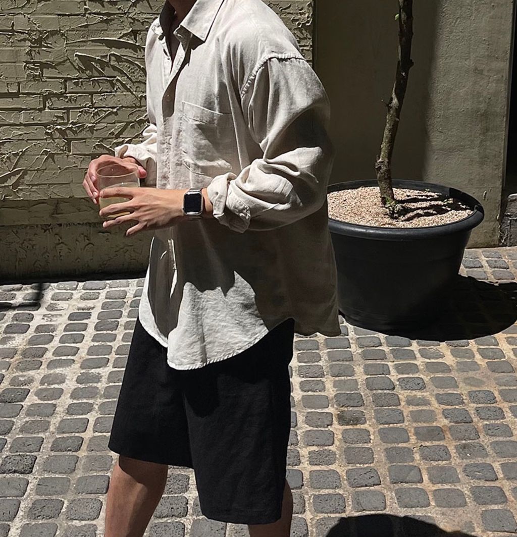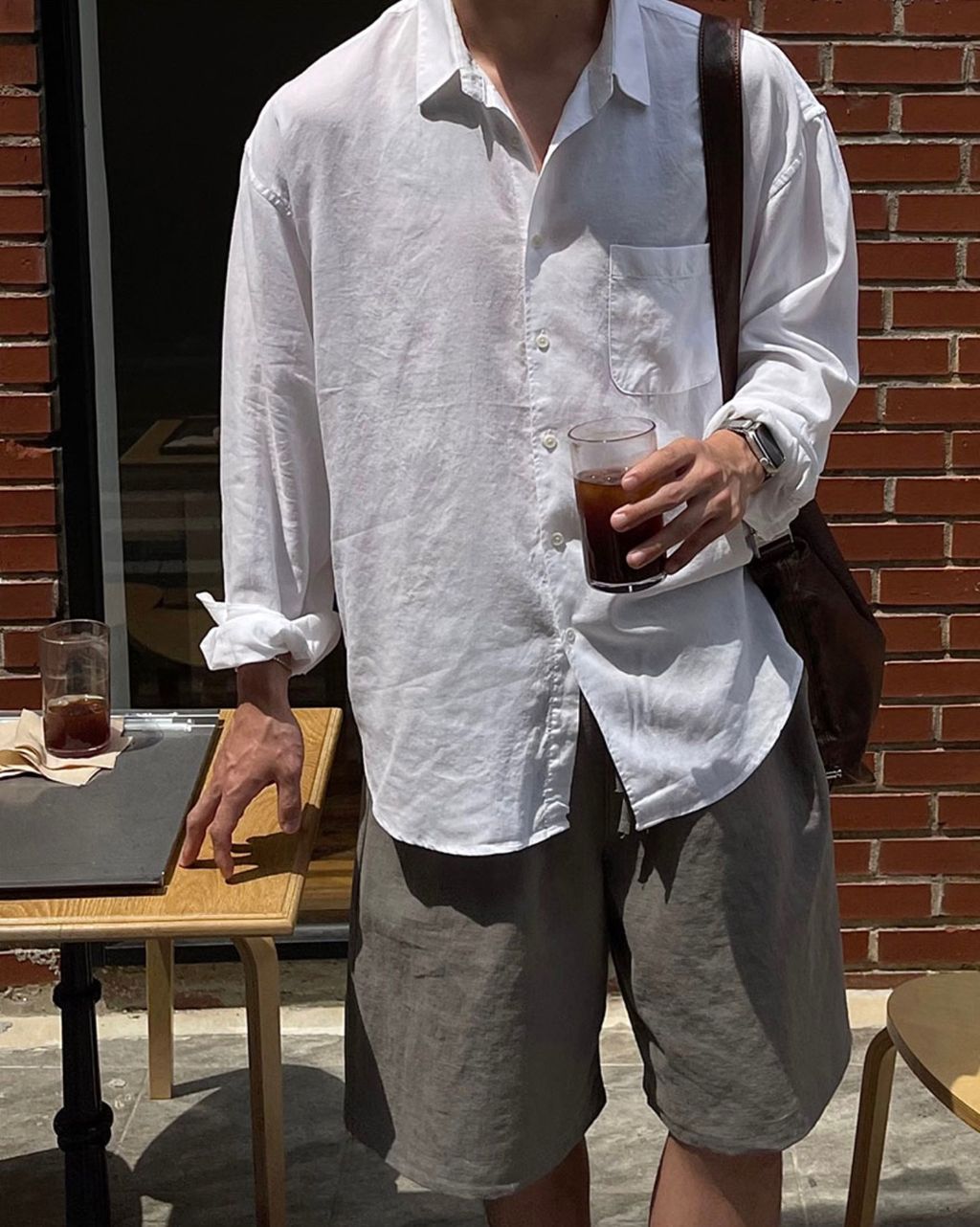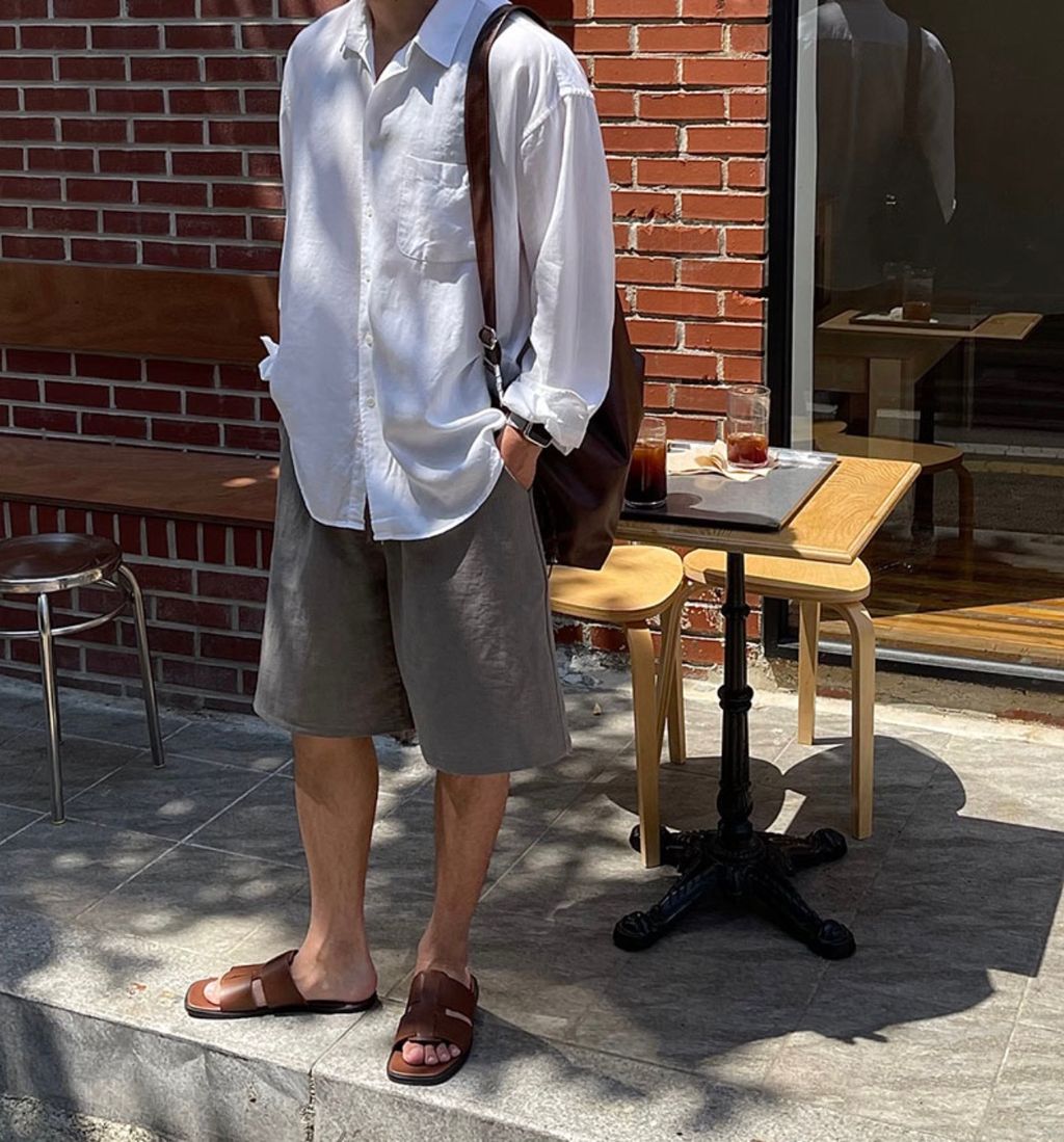 鬆緊抽繩 渡假風 亞麻料 微寬短褲 五色
