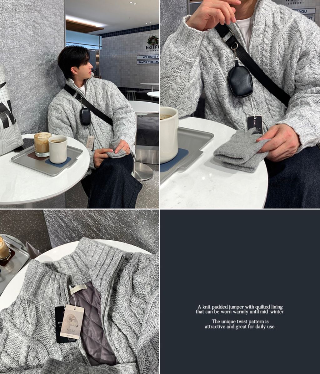 北歐麻花辮針織 內鋪棉 羊毛10趴 針織外套 五色