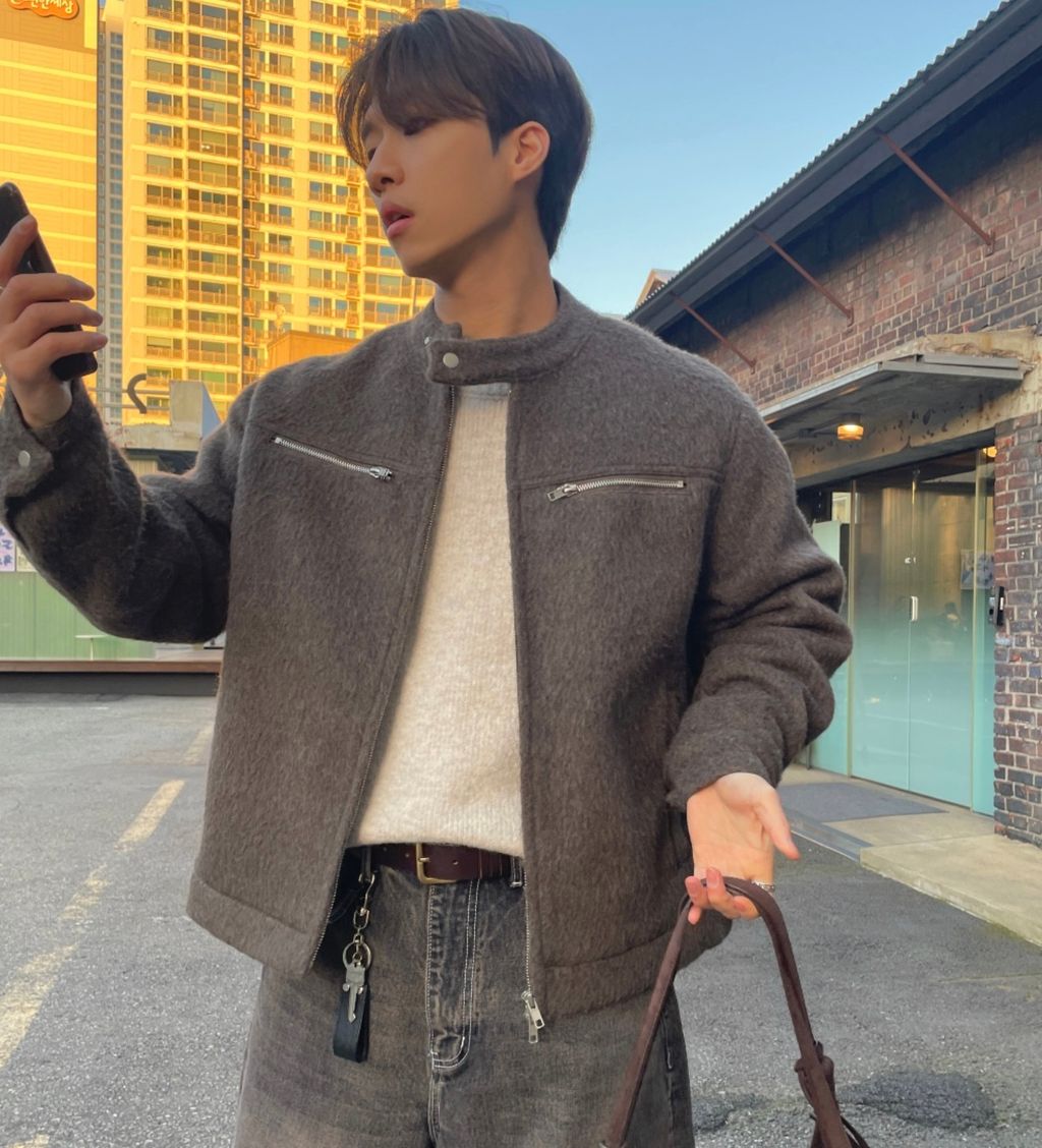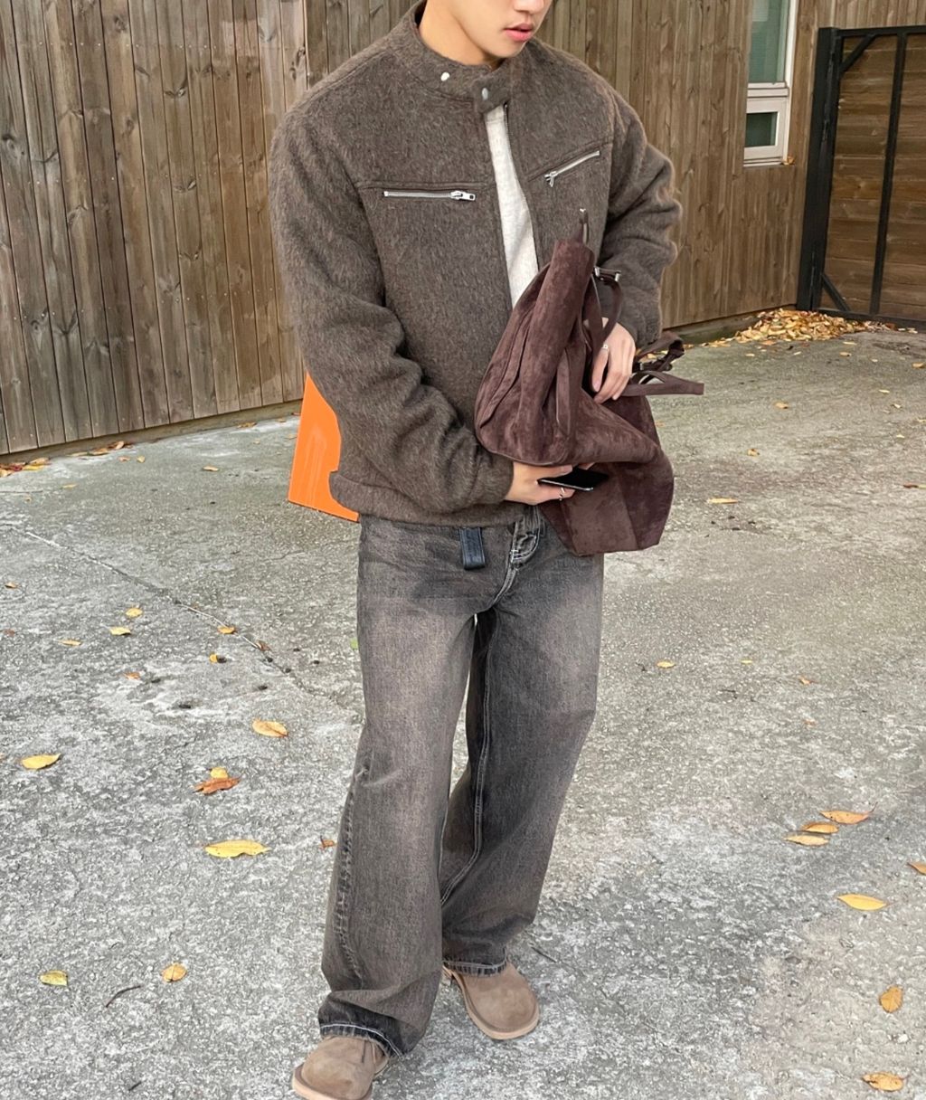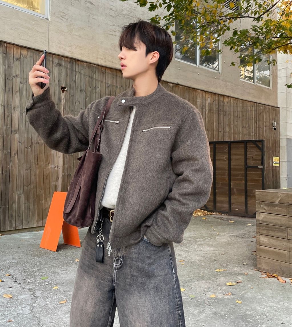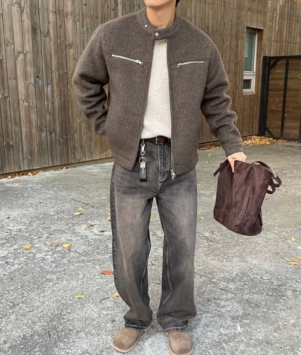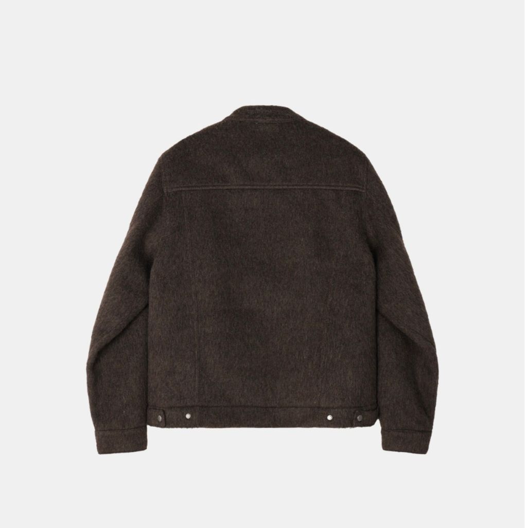 海馬毛 混羊毛 無領 騎士夾克短版 兩色