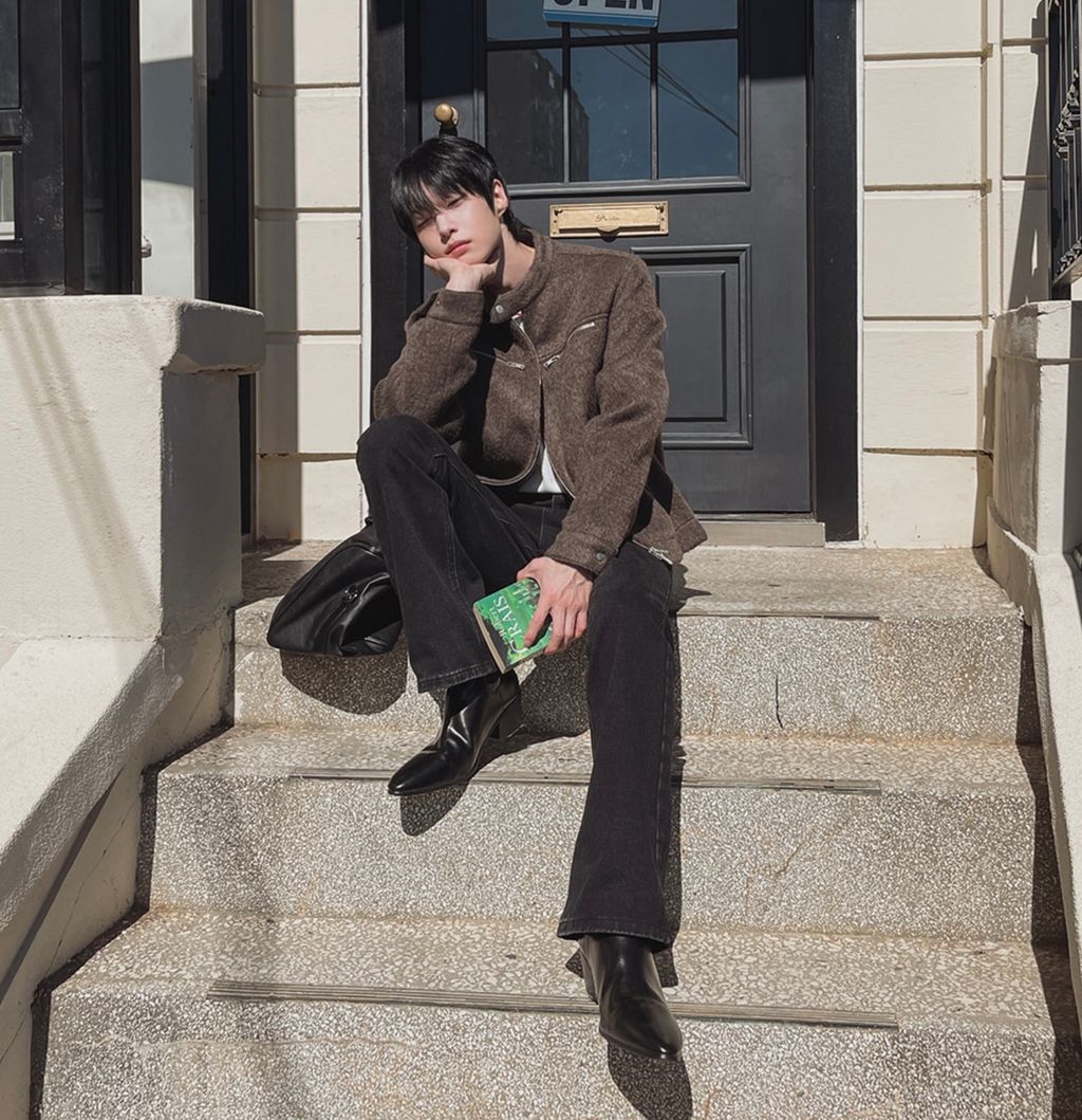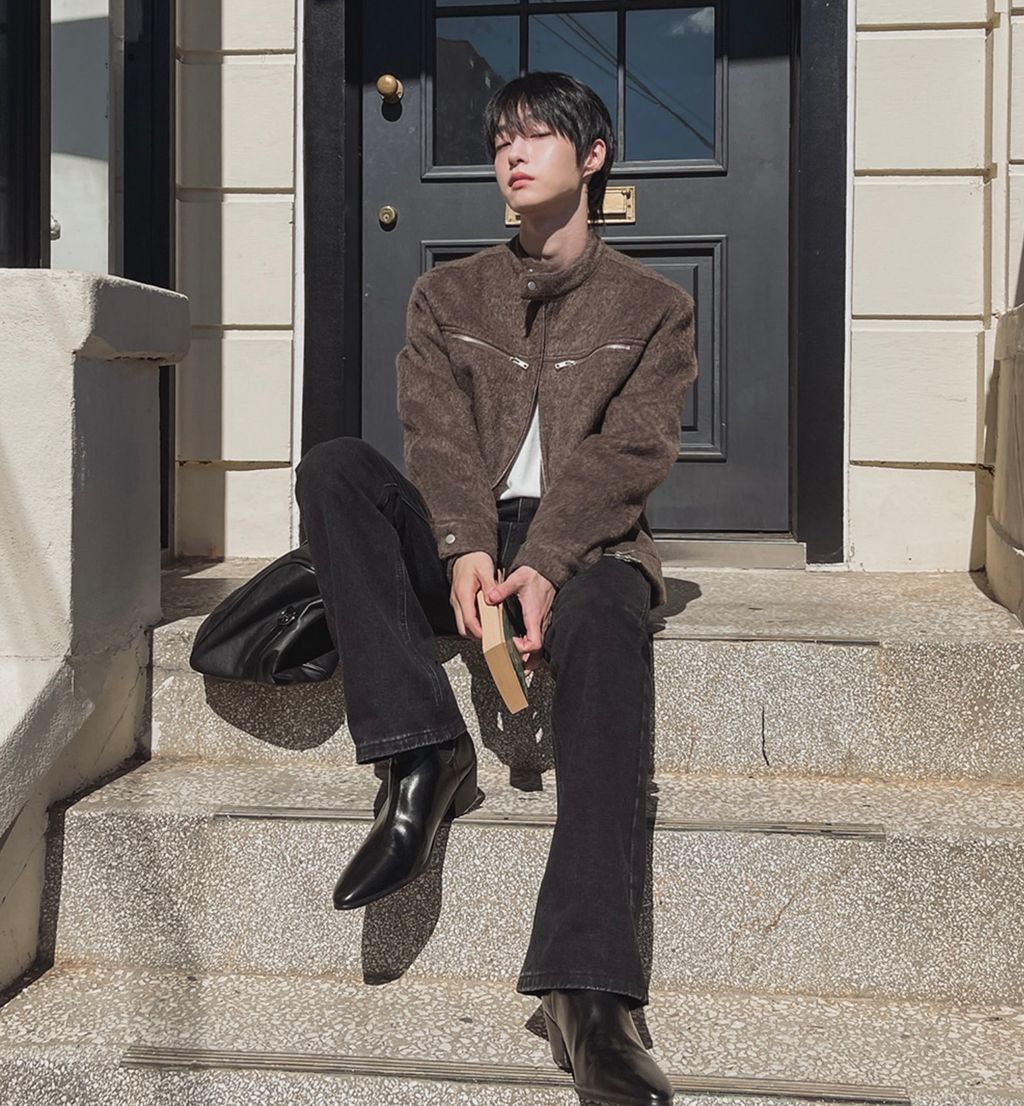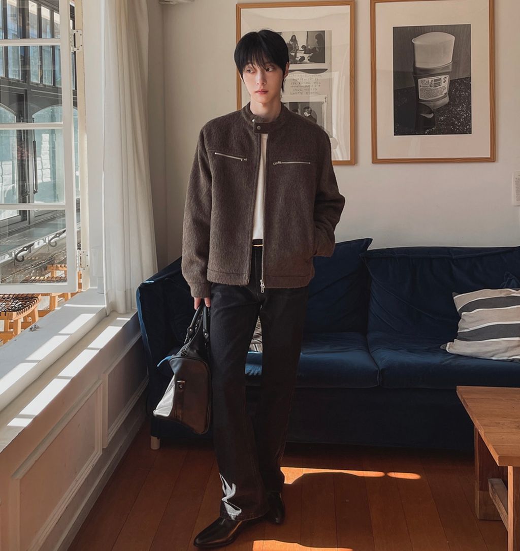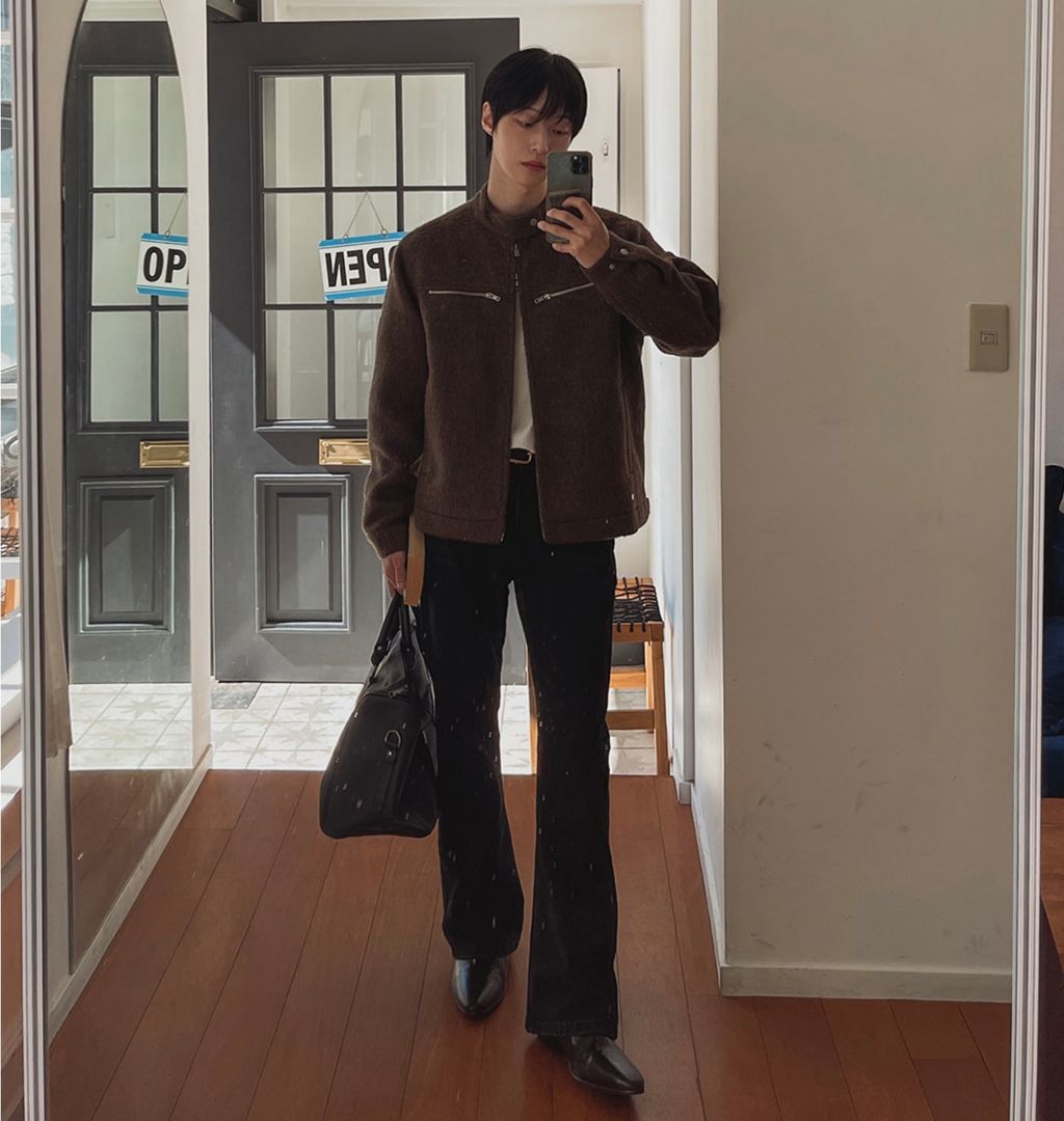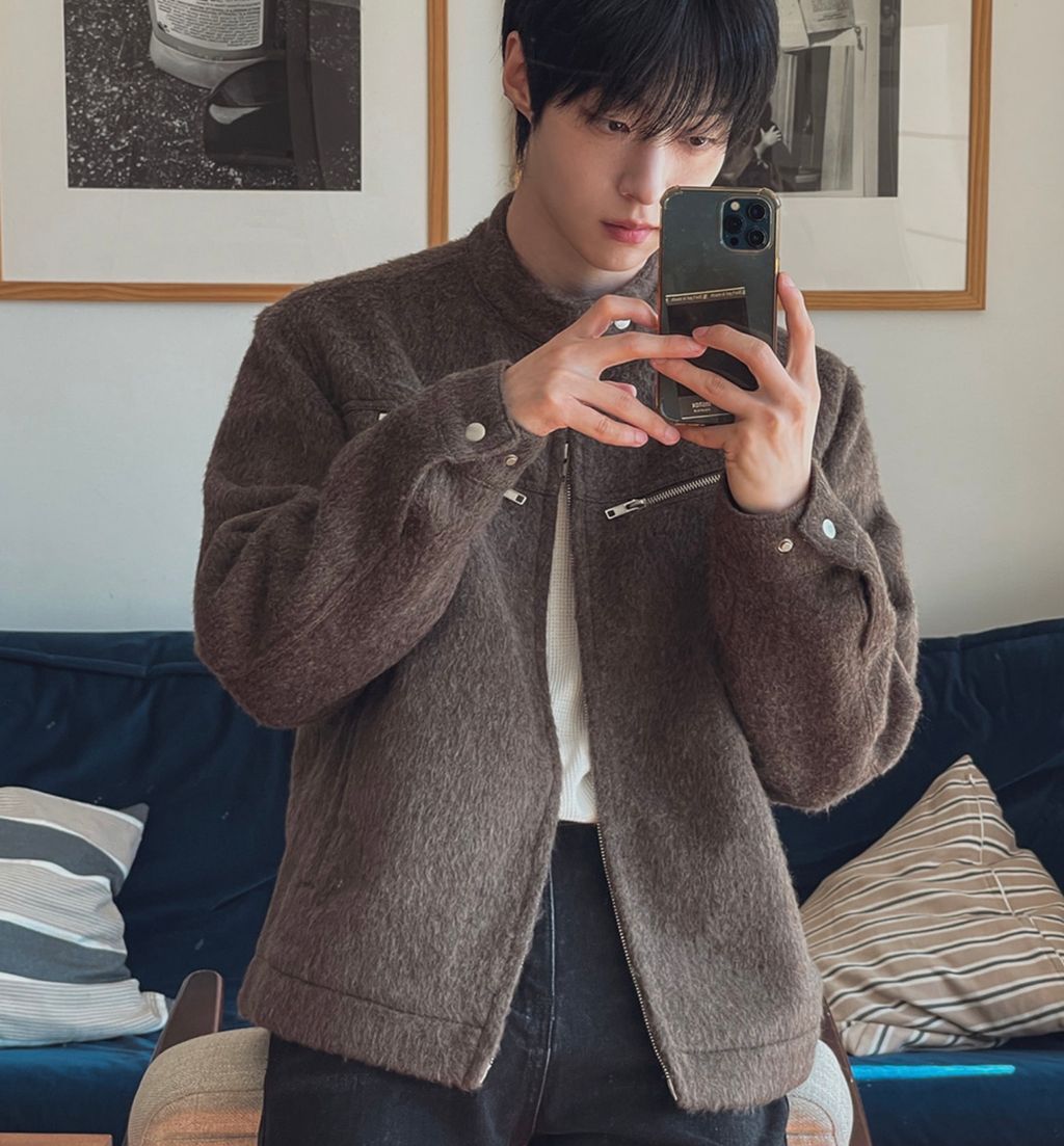 海馬毛 混羊毛 無領 騎士夾克短版 兩色