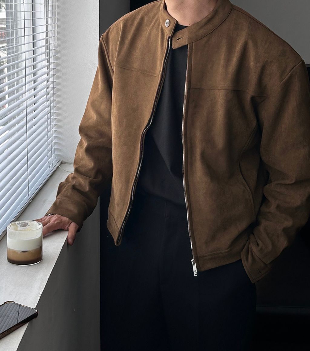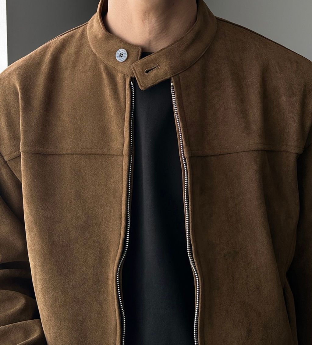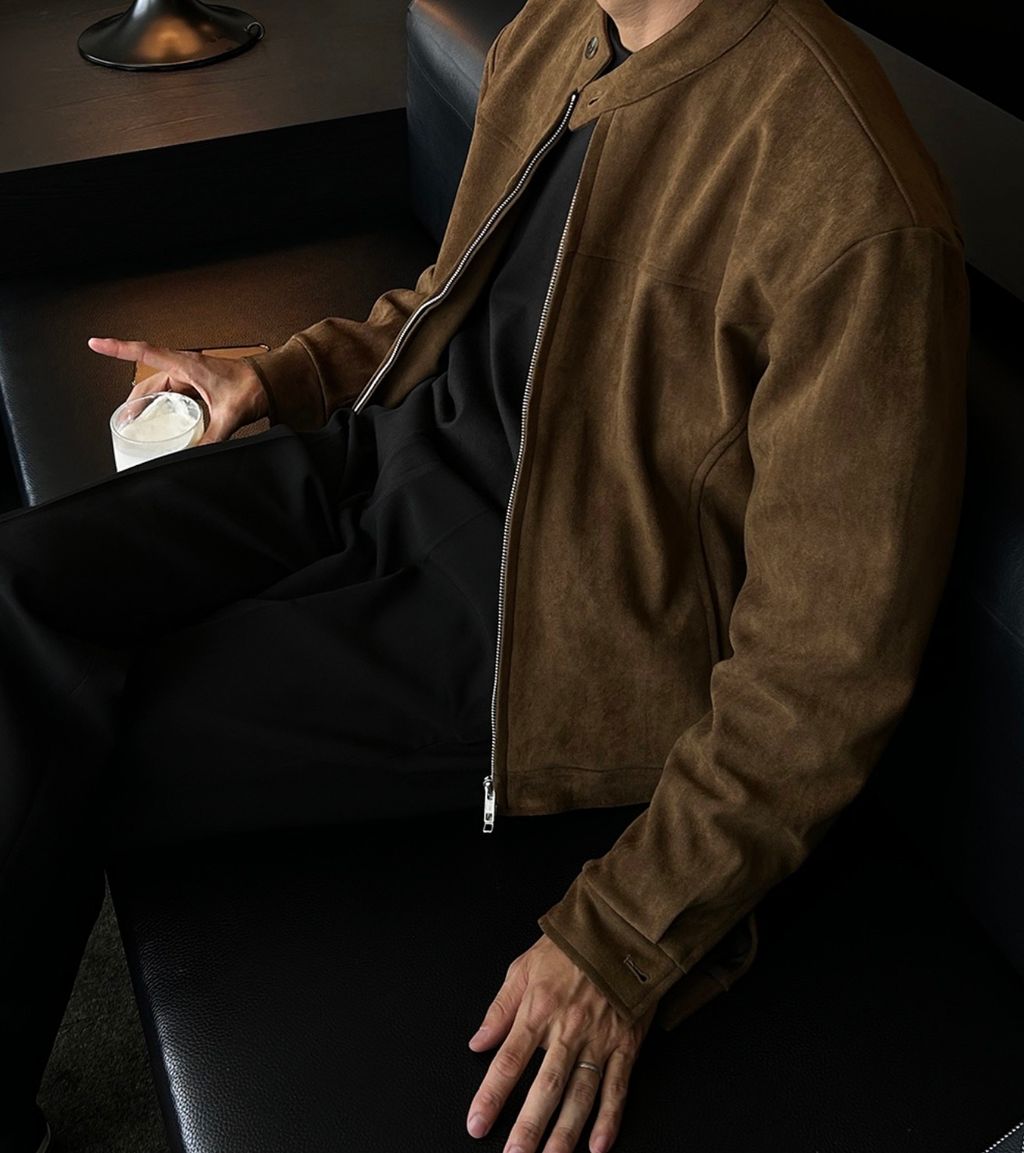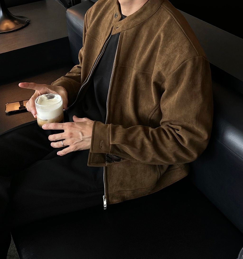 無領亨利領 復古絨面質感 短版外套夾克 三色