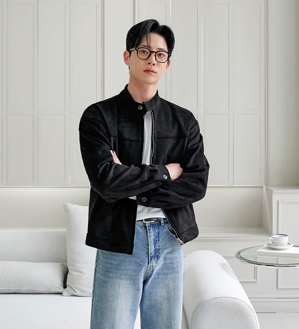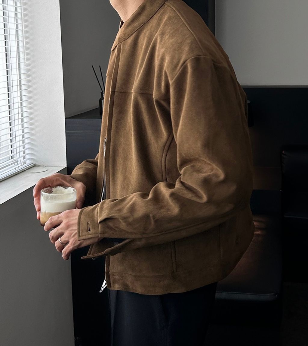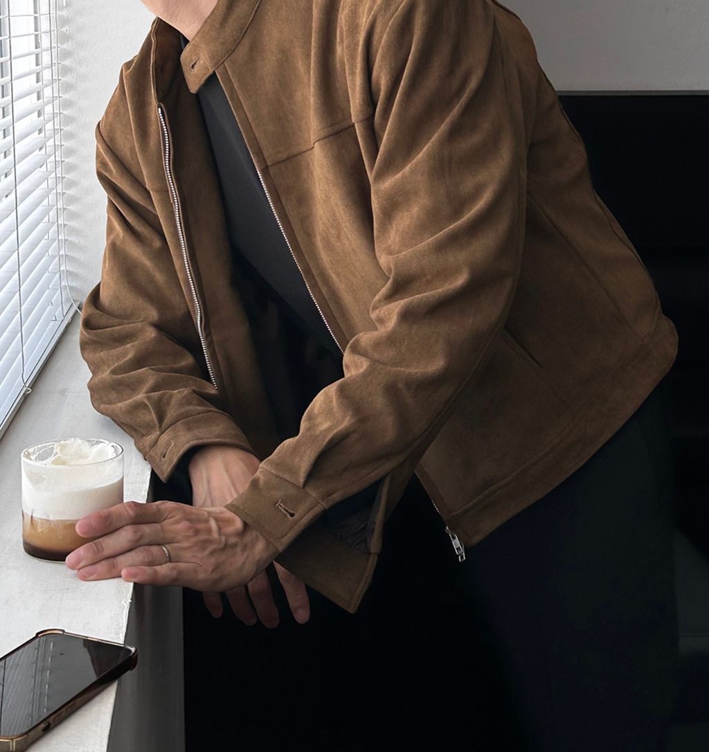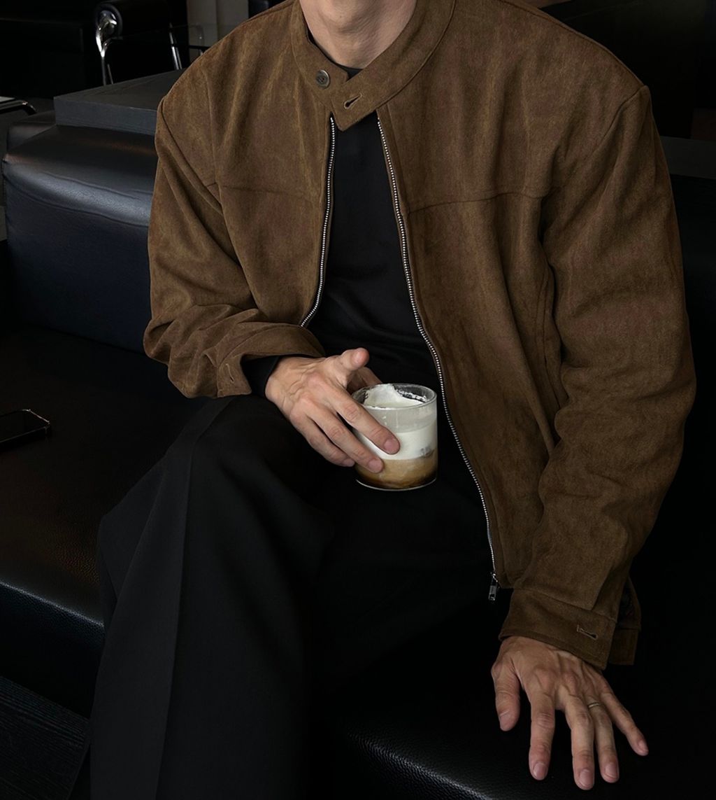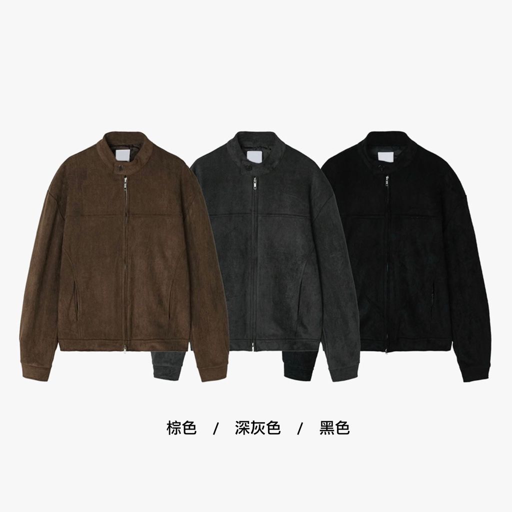 無領亨利領 復古絨面質感 短版外套夾克 三色
