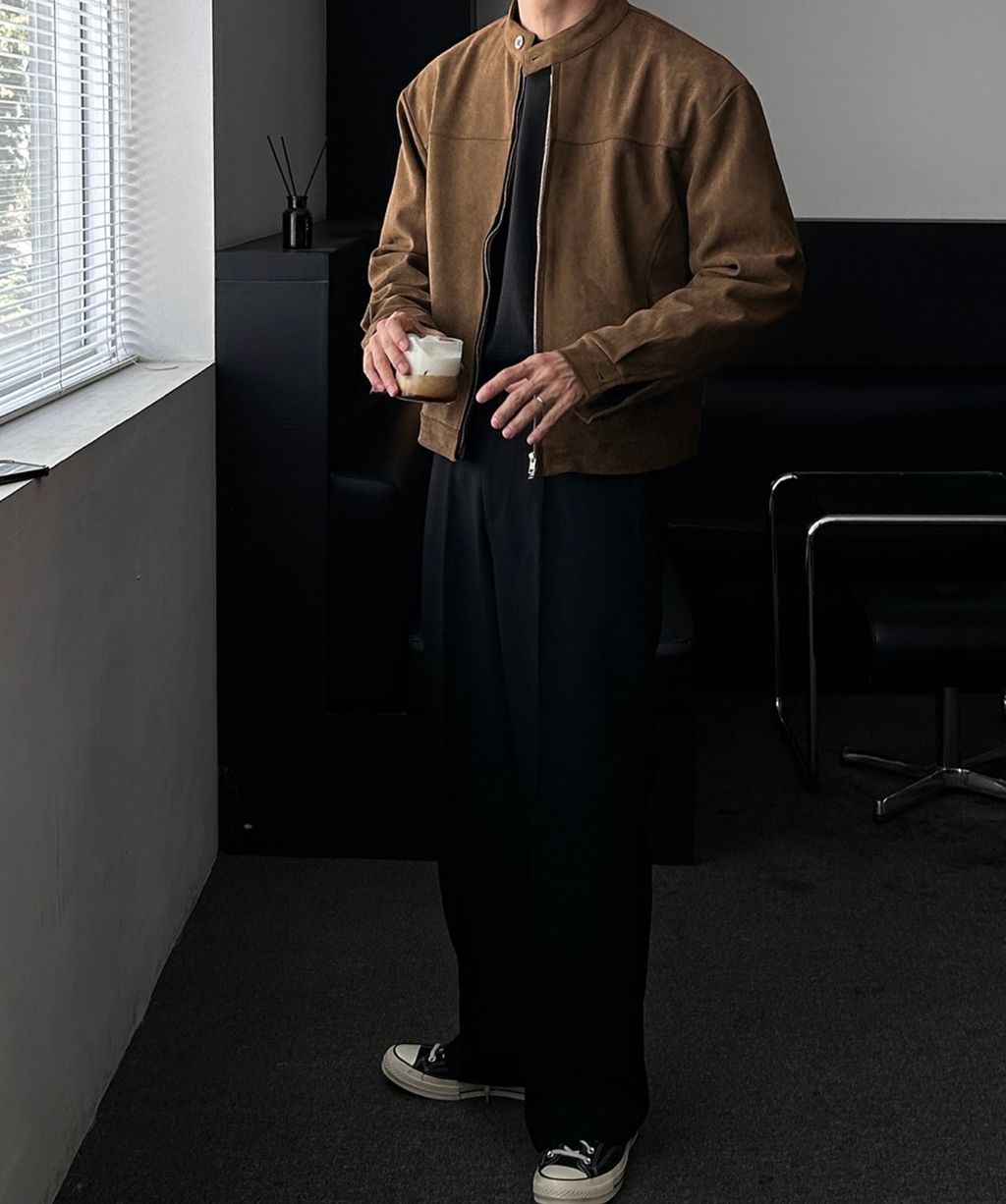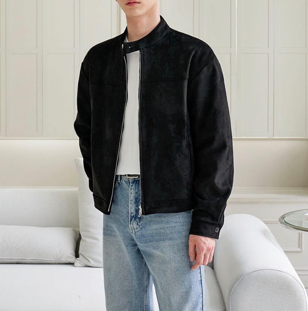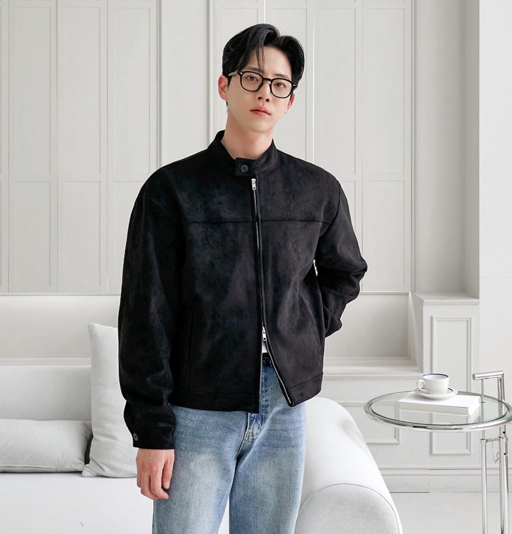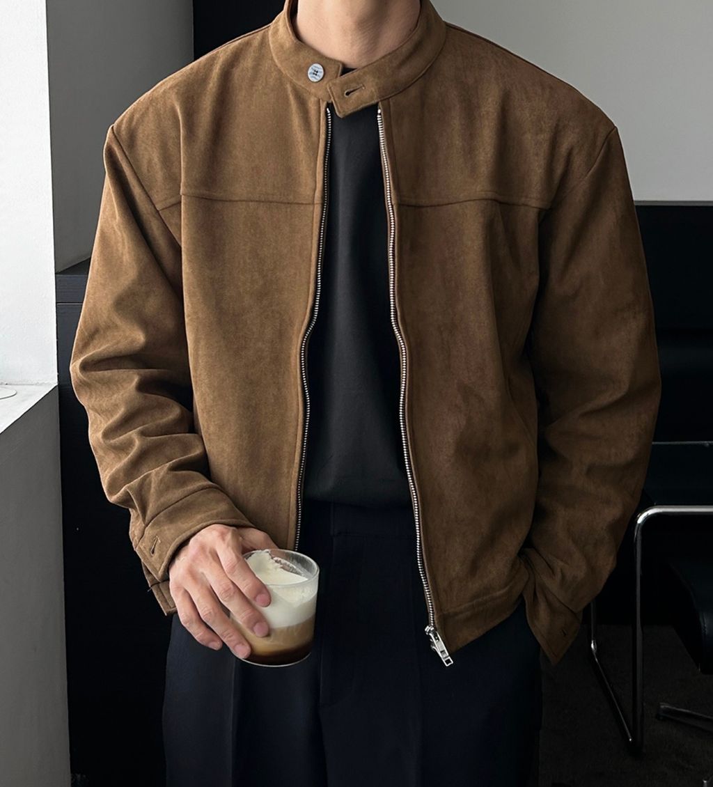 無領亨利領 復古絨面質感 短版外套夾克 三色