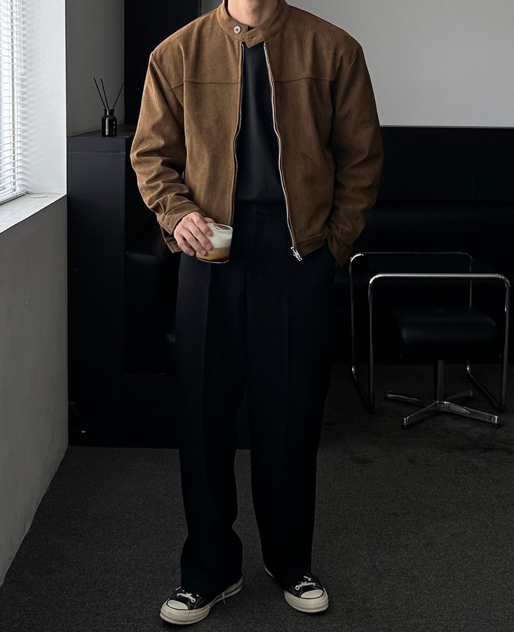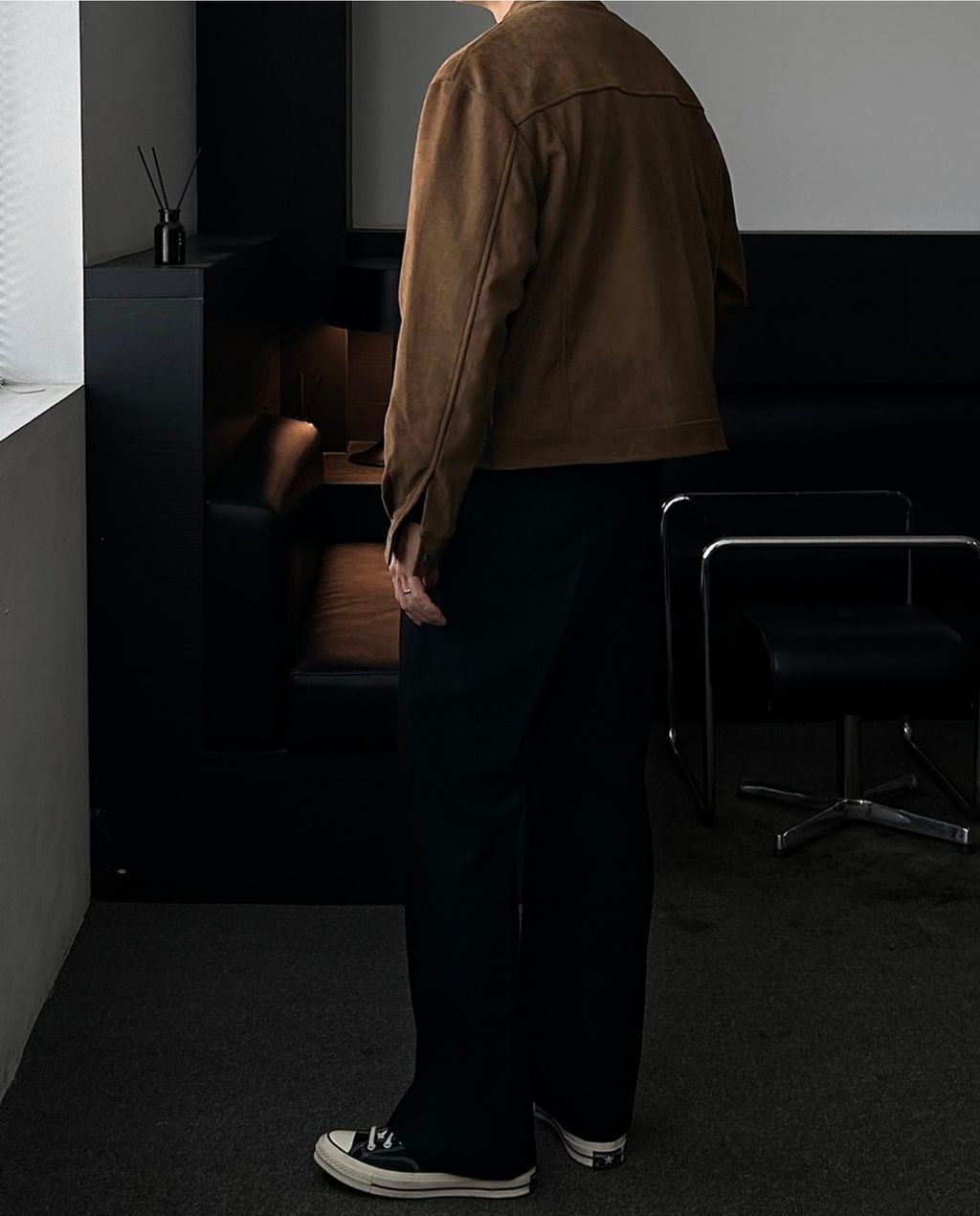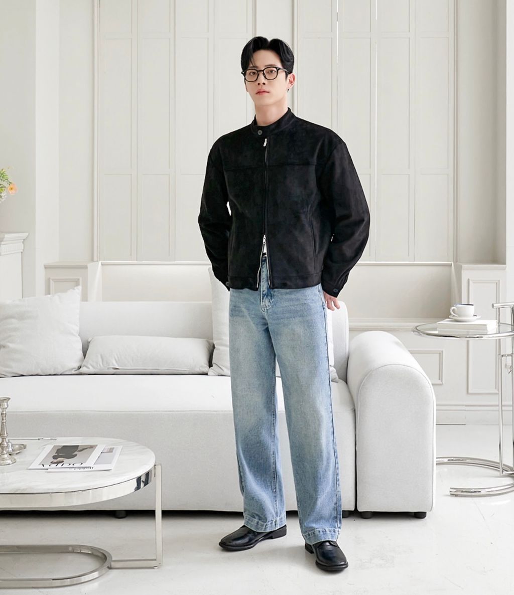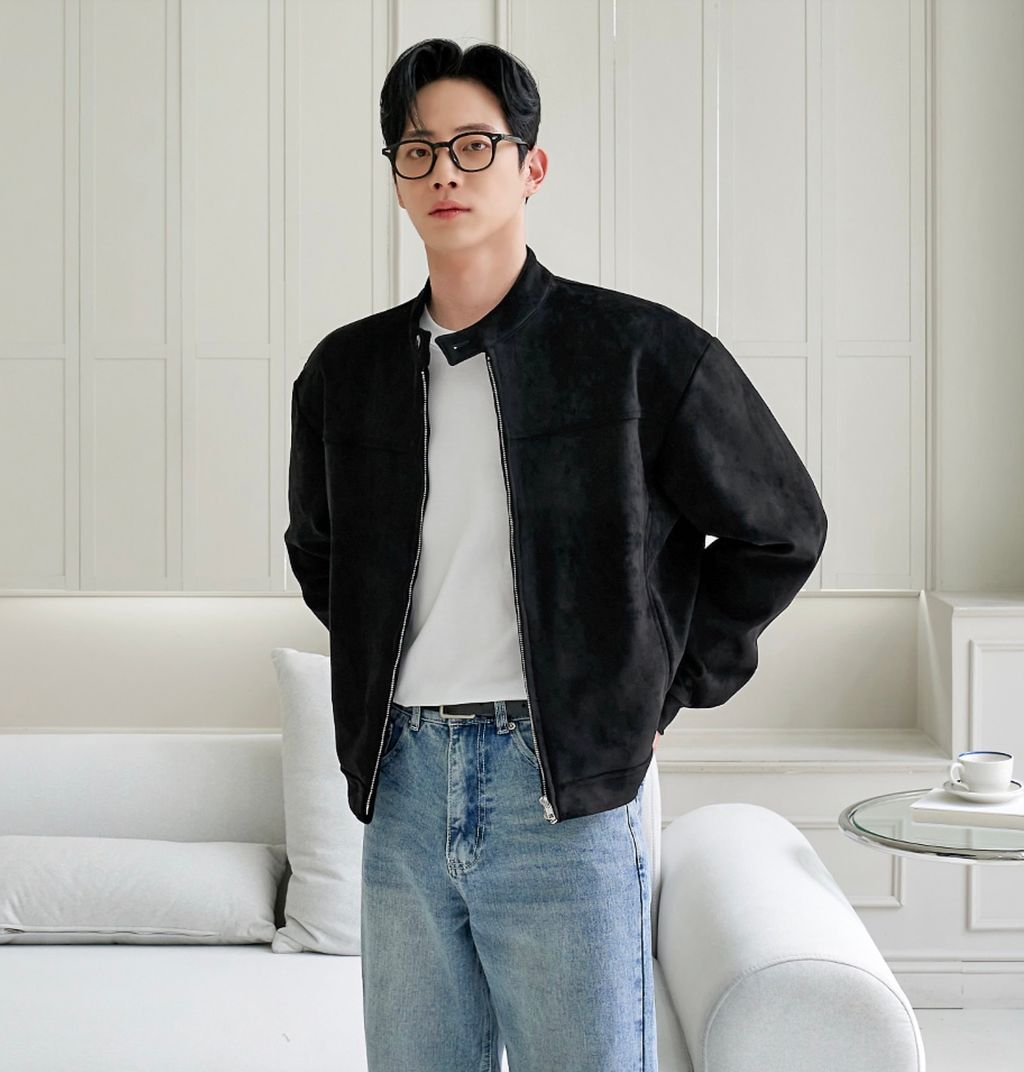 無領亨利領 復古絨面質感 短版外套夾克 三色