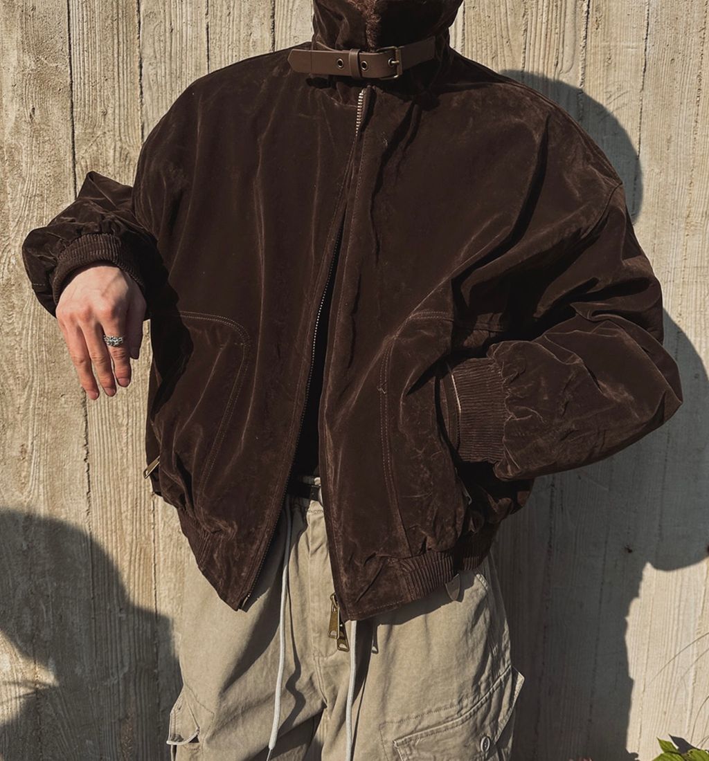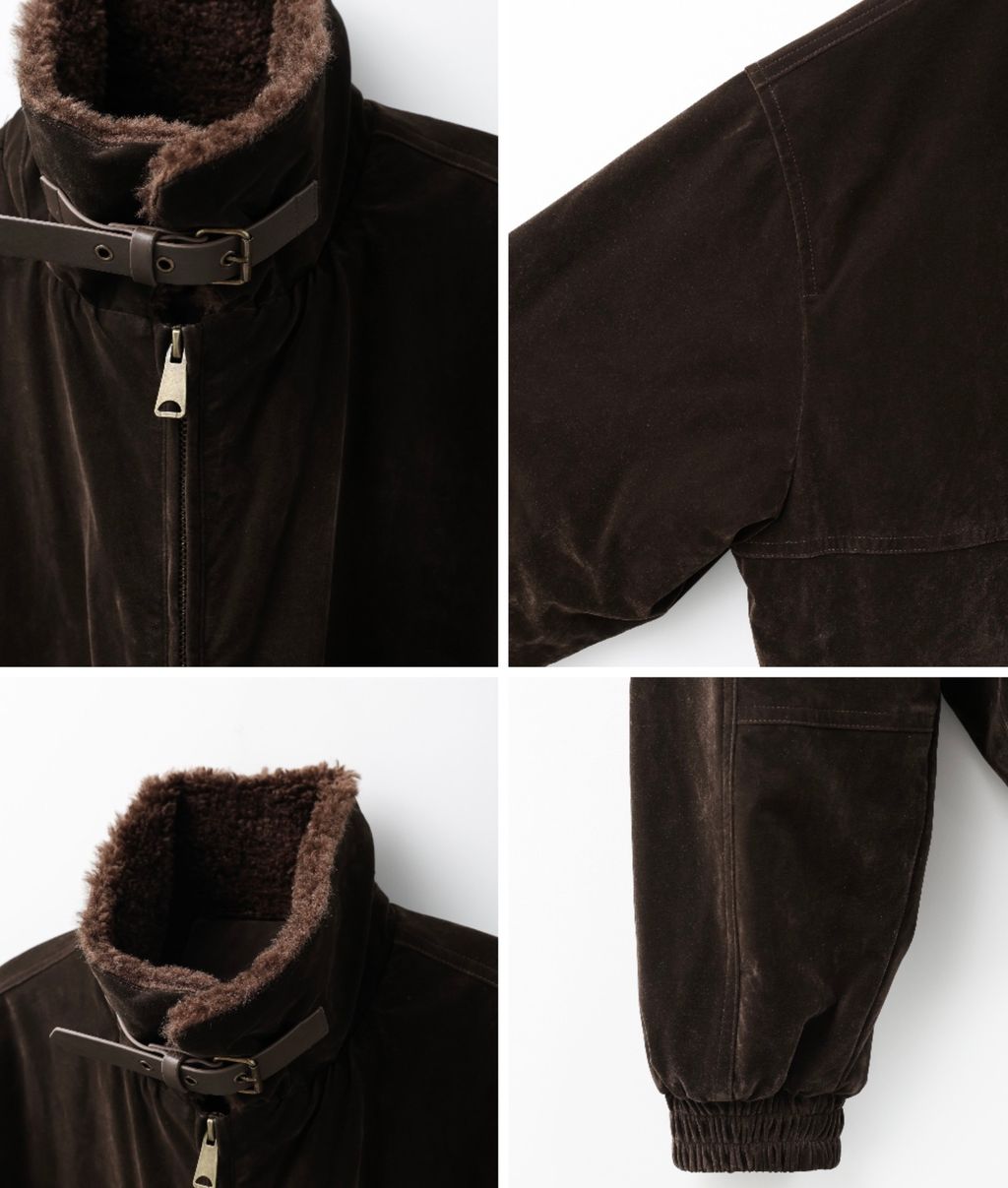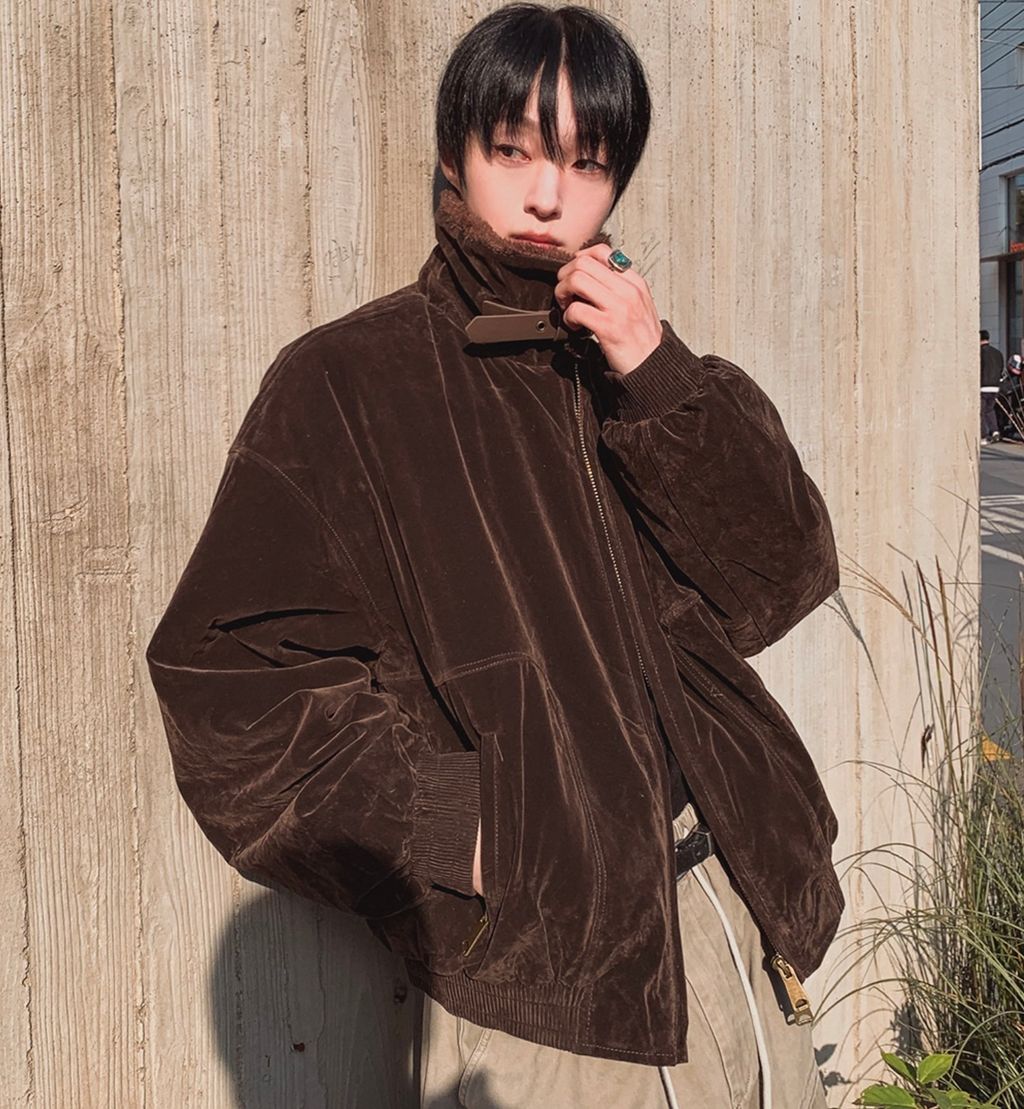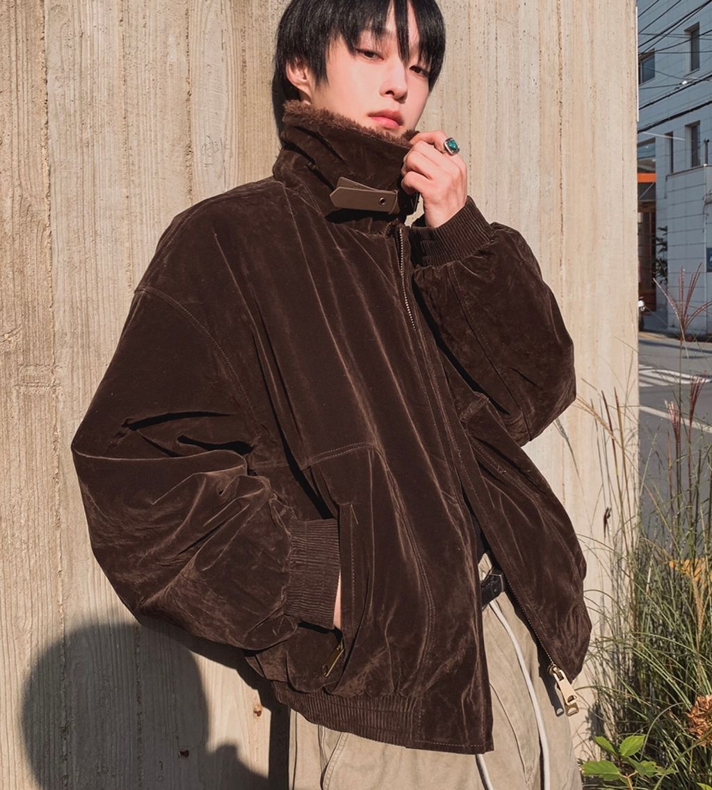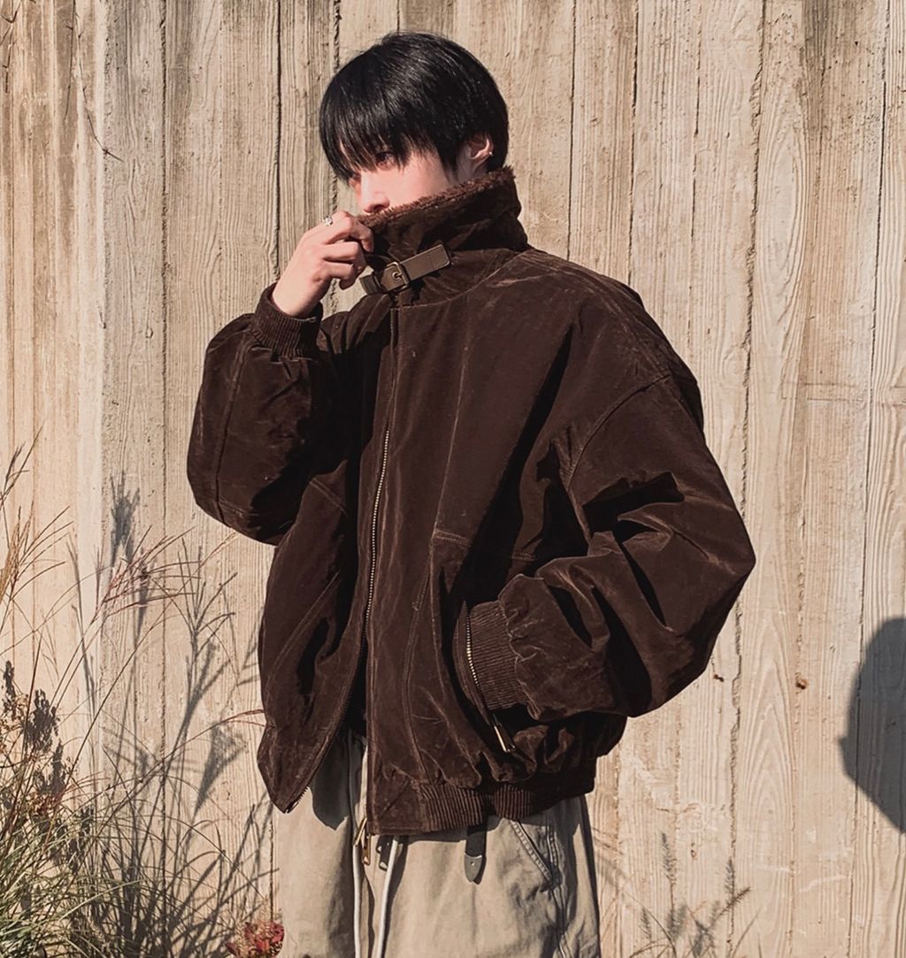 絨面布料 微反光 絨毛領口翻領 小高領 獵裝夾克外套 兩色