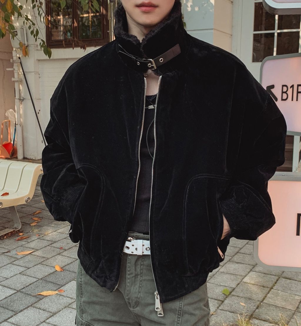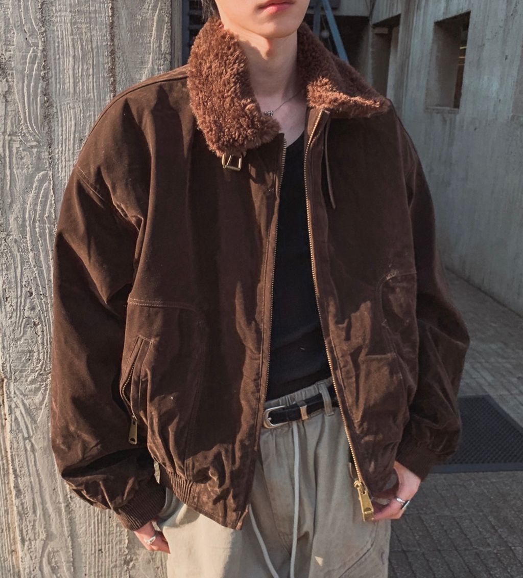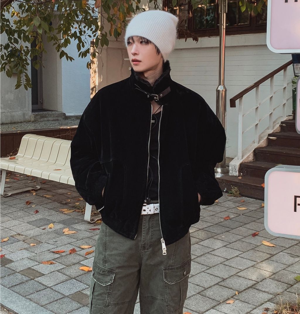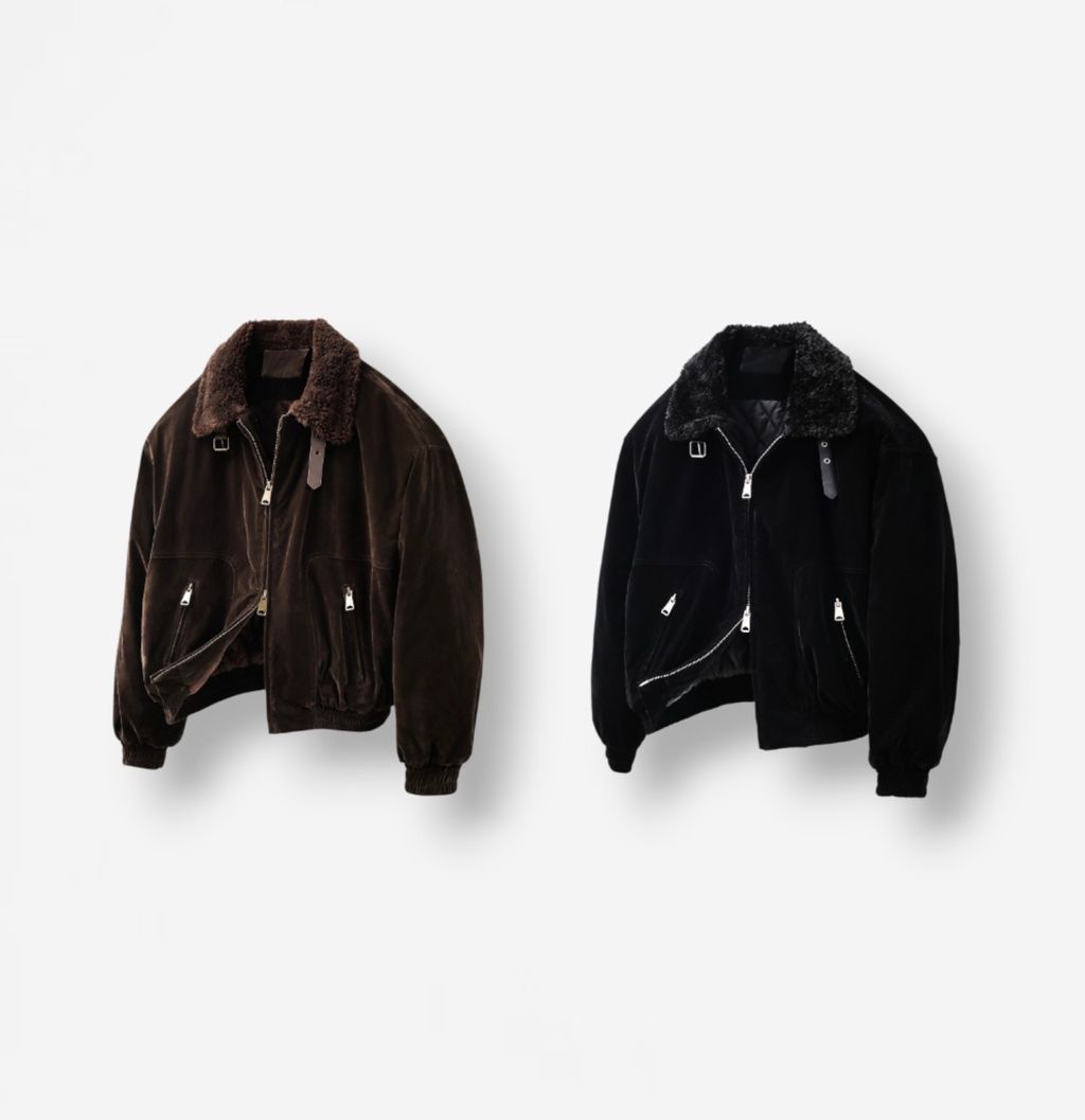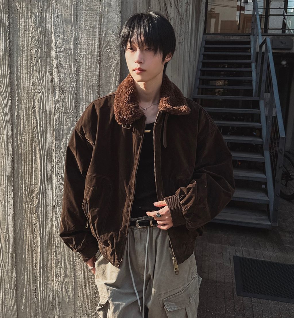 絨面布料 微反光 絨毛領口翻領 小高領 獵裝夾克外套 兩色
