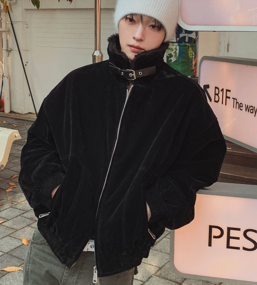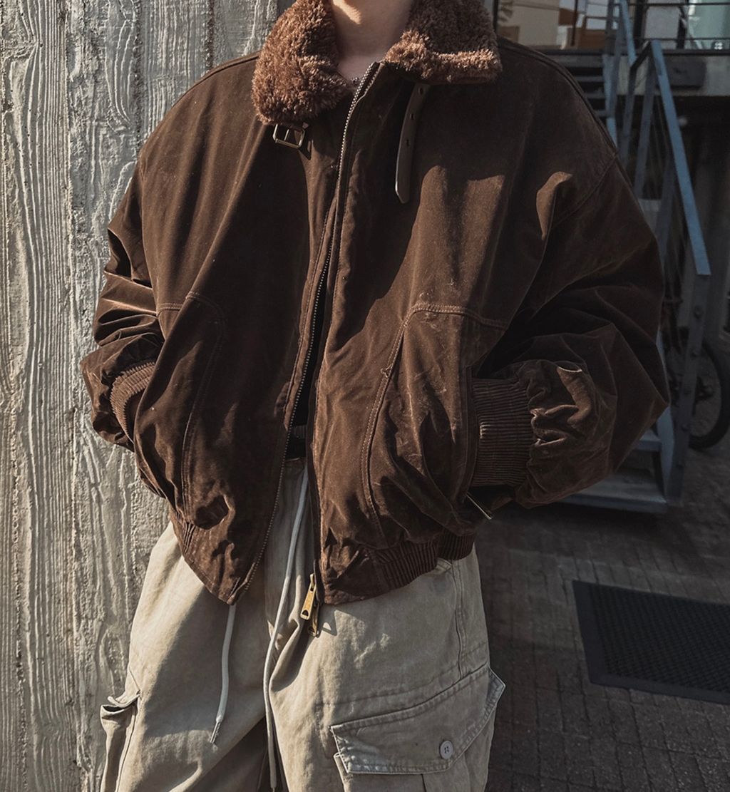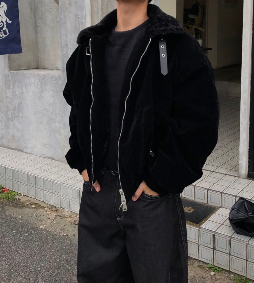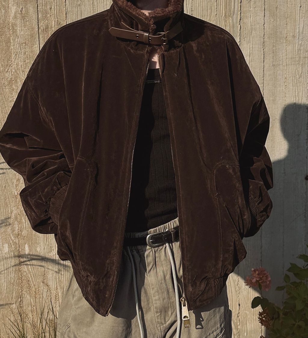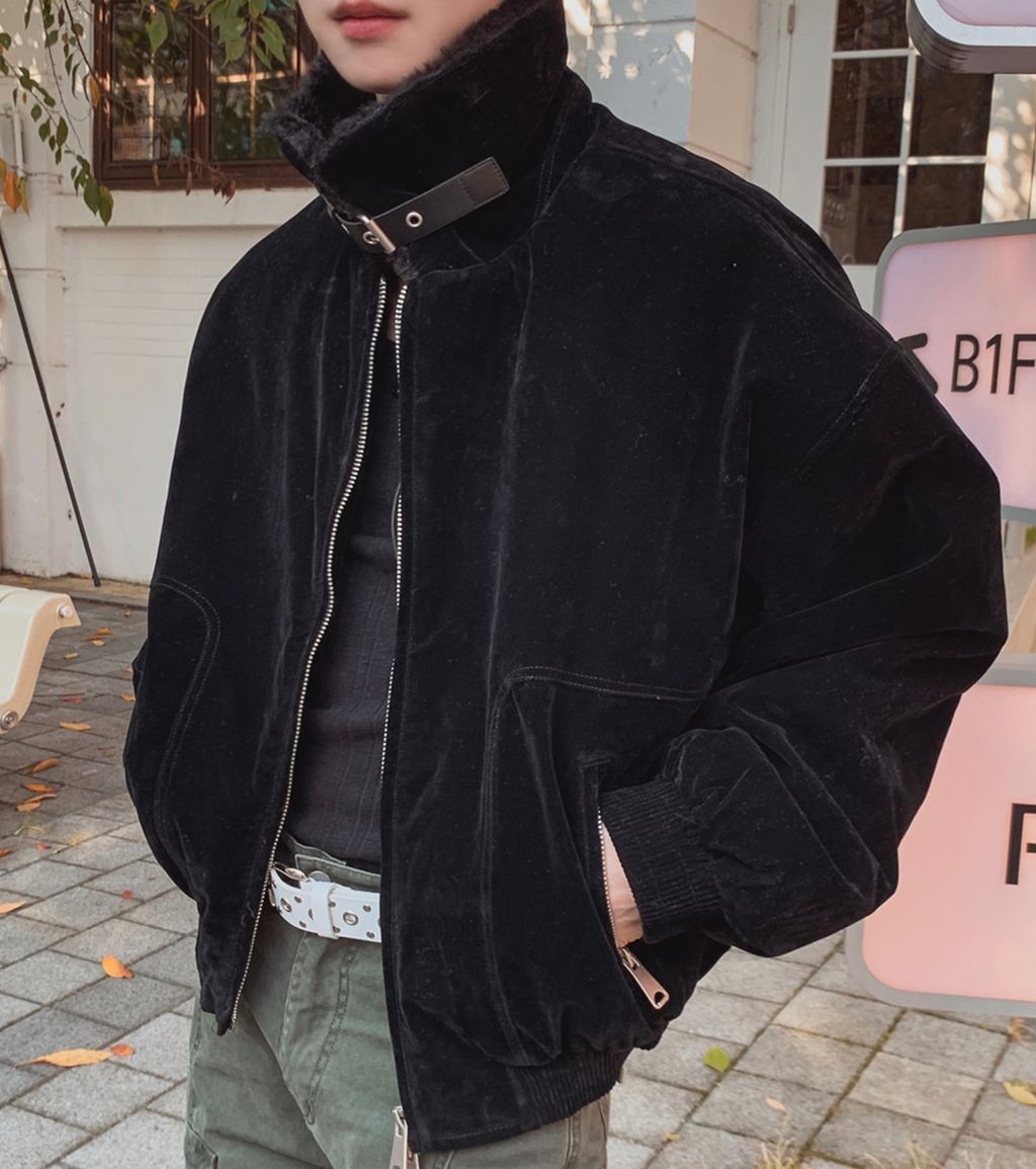 絨面布料 微反光 絨毛領口翻領 小高領 獵裝夾克外套 兩色