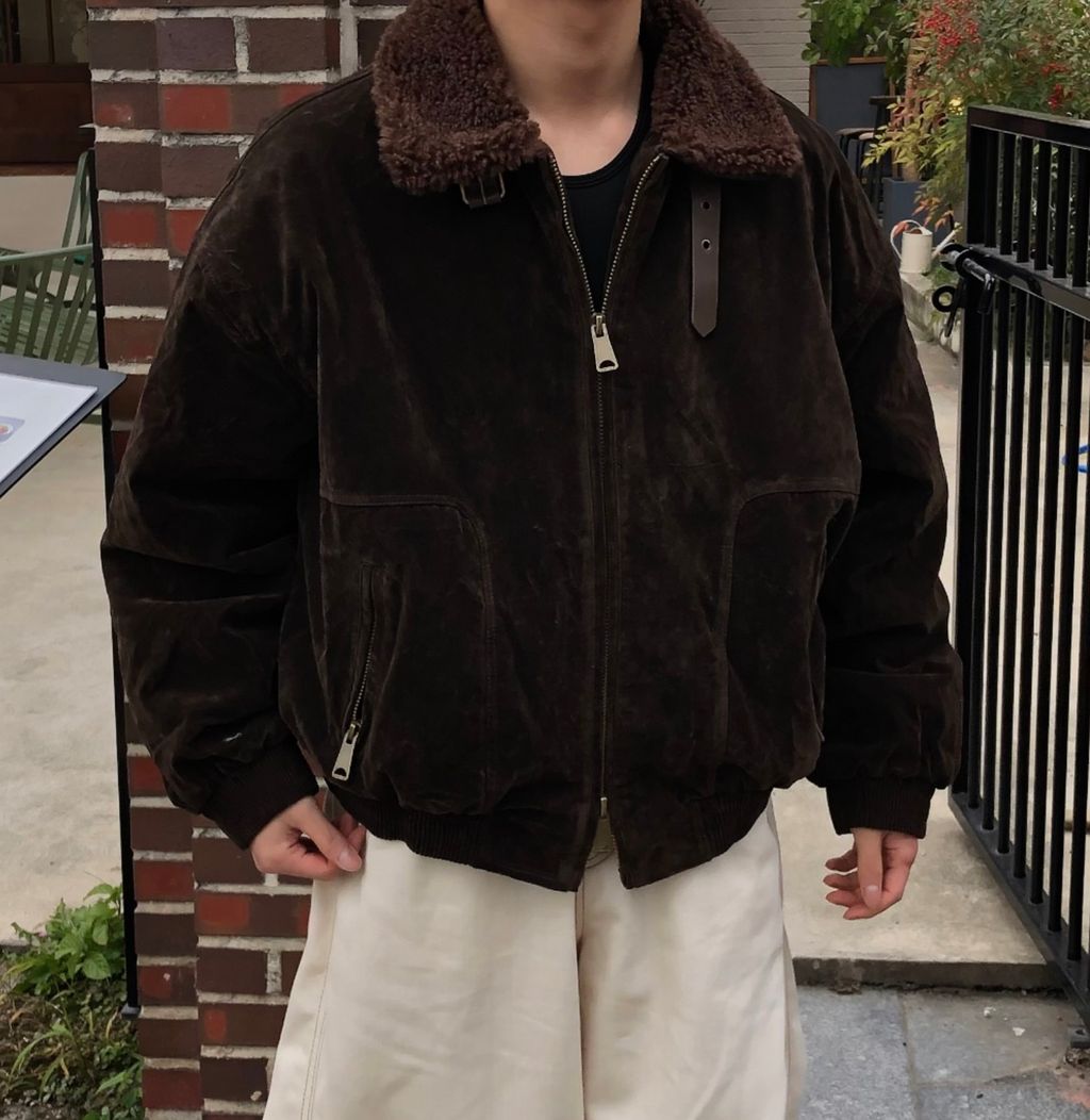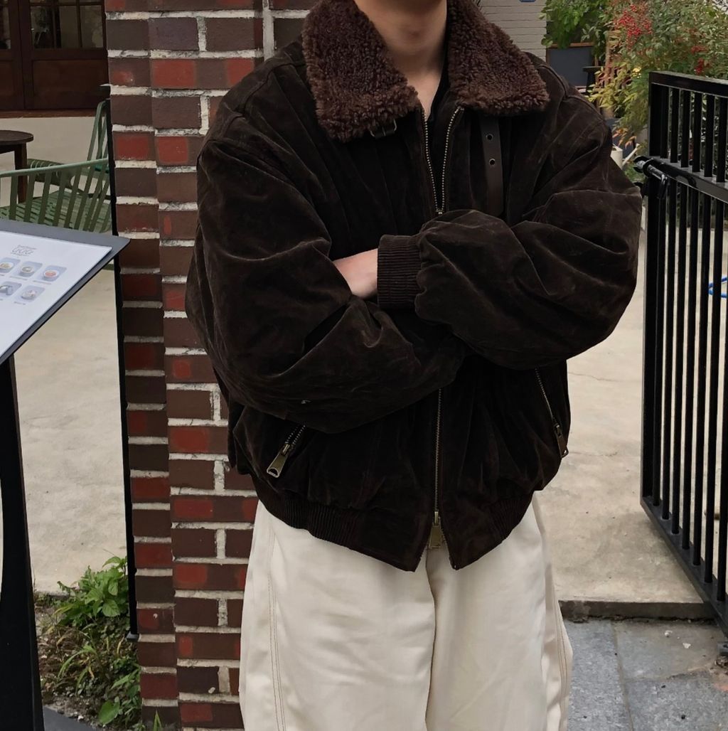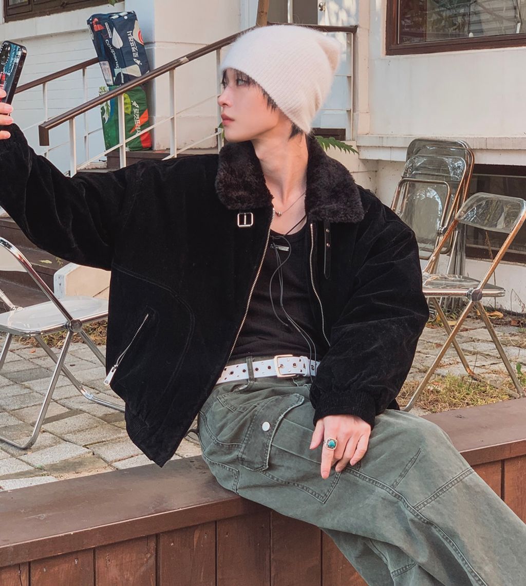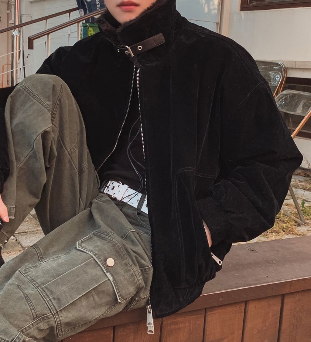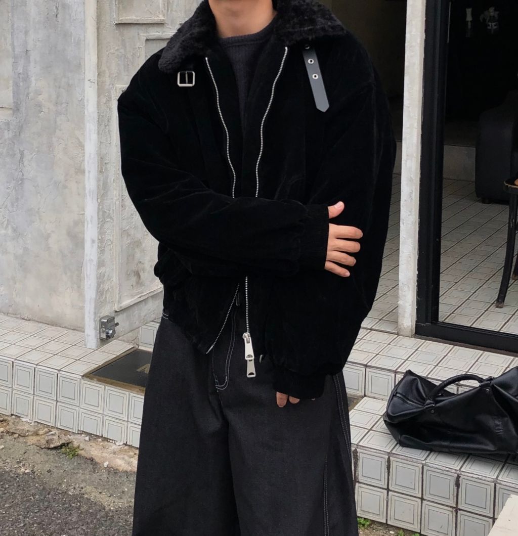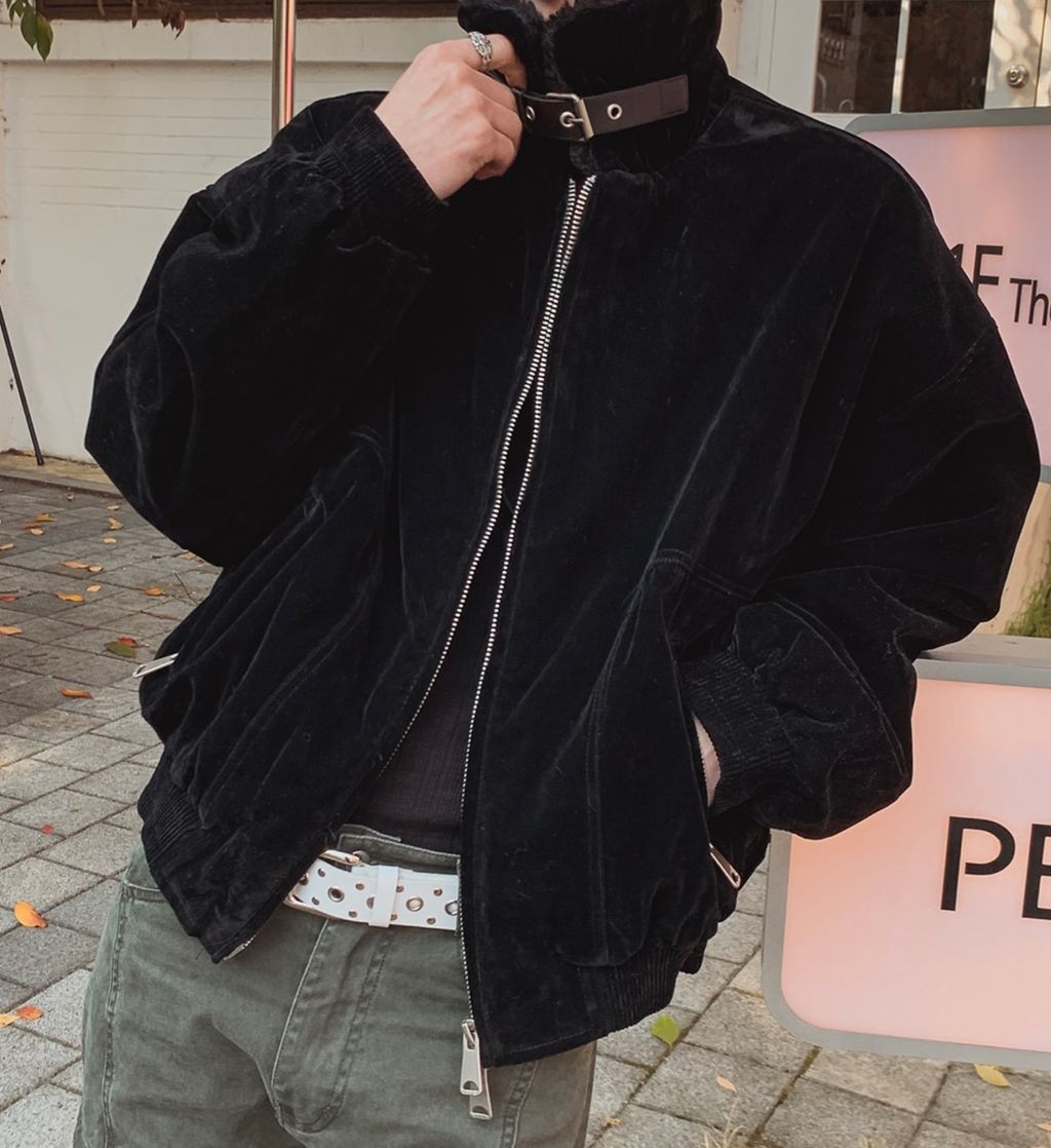 絨面布料 微反光 絨毛領口翻領 小高領 獵裝夾克外套 兩色