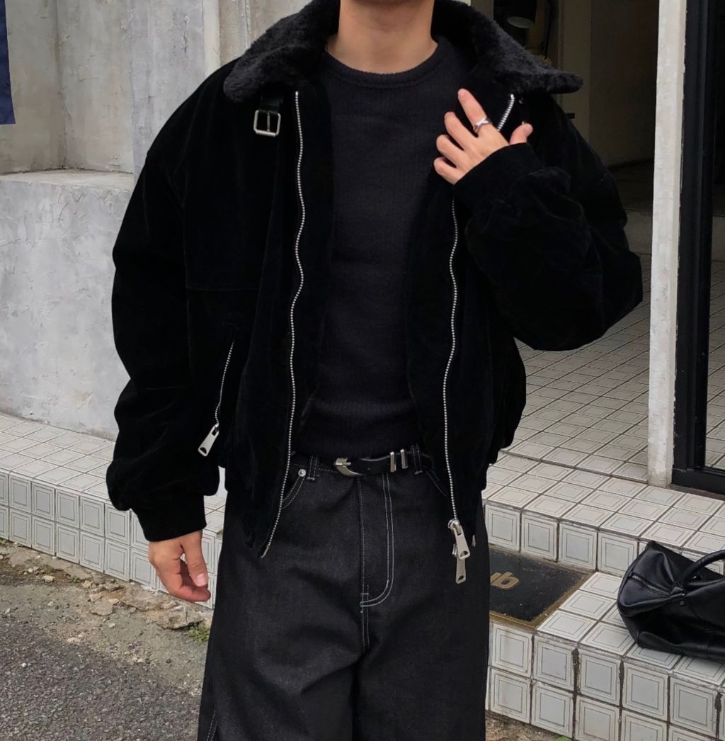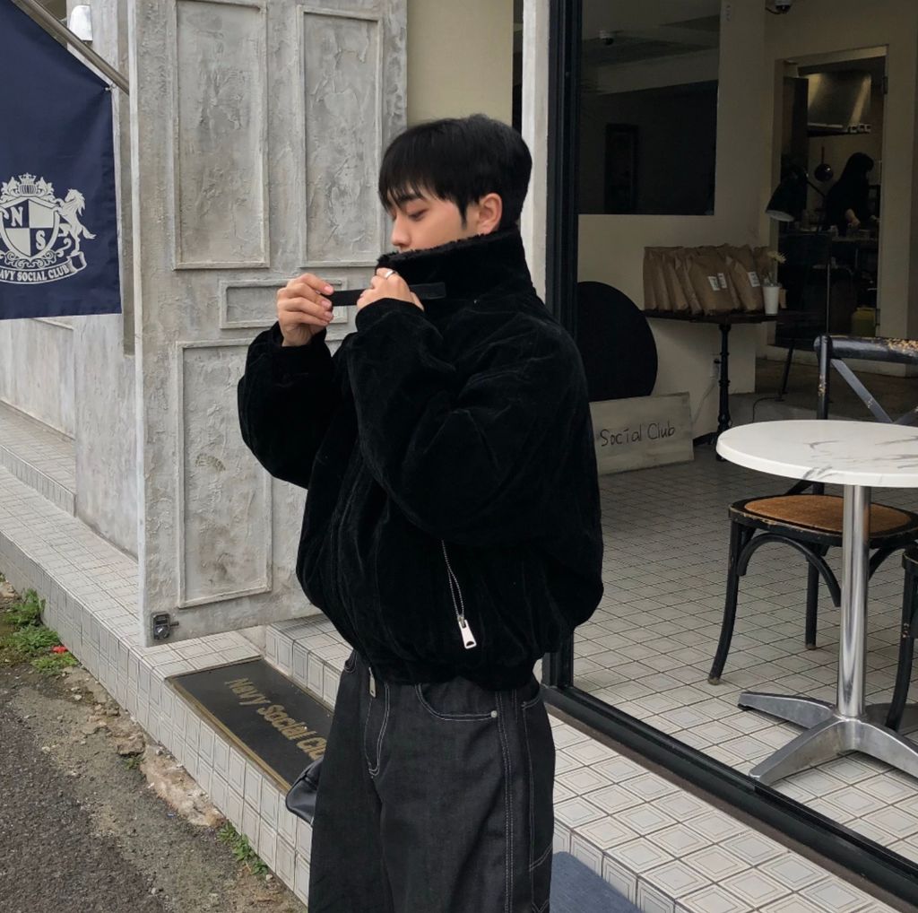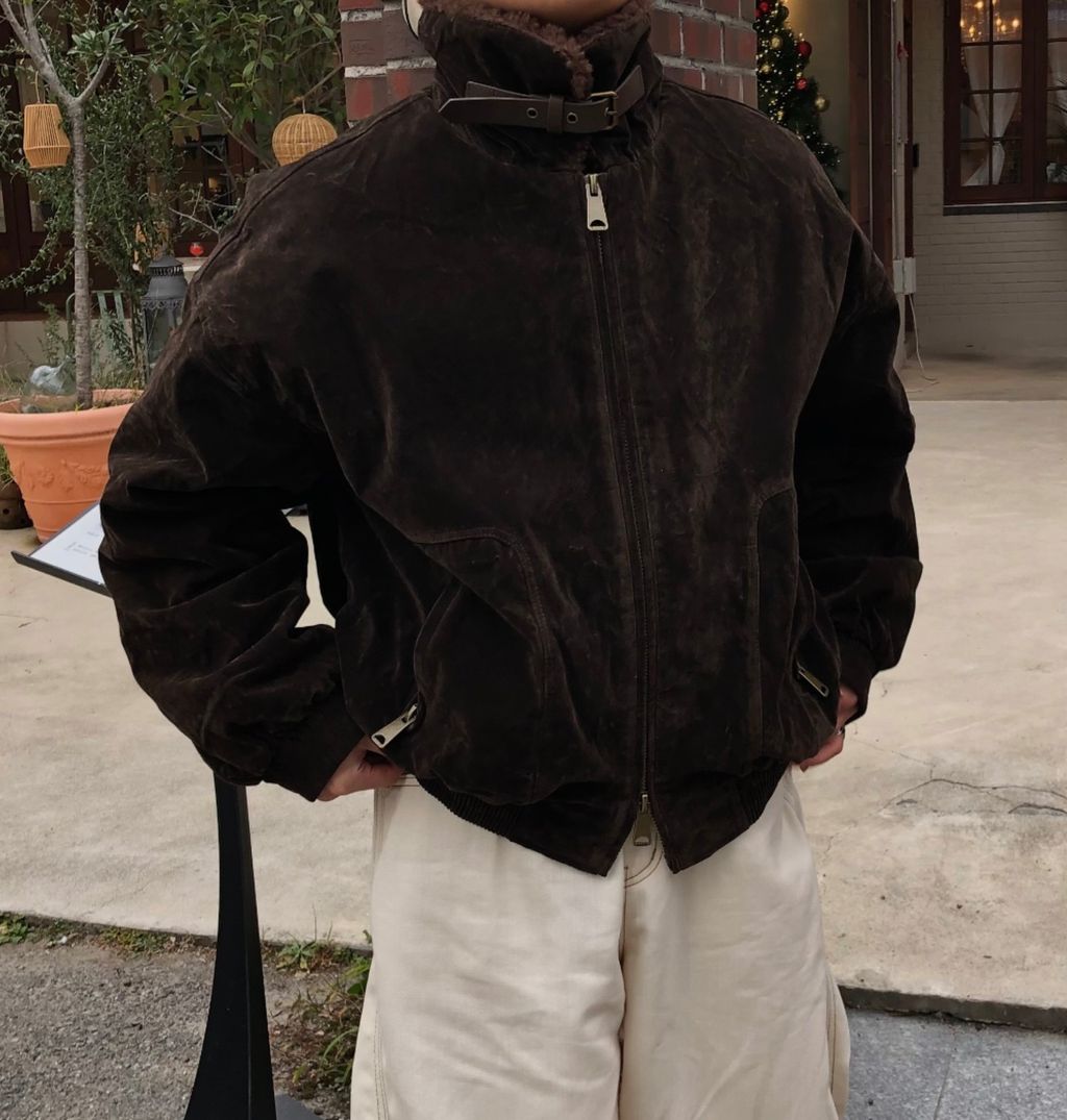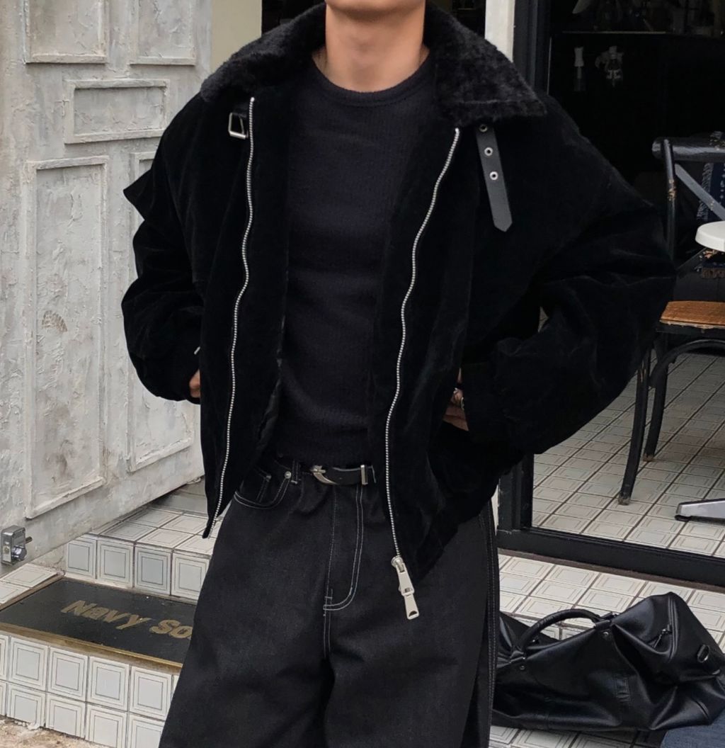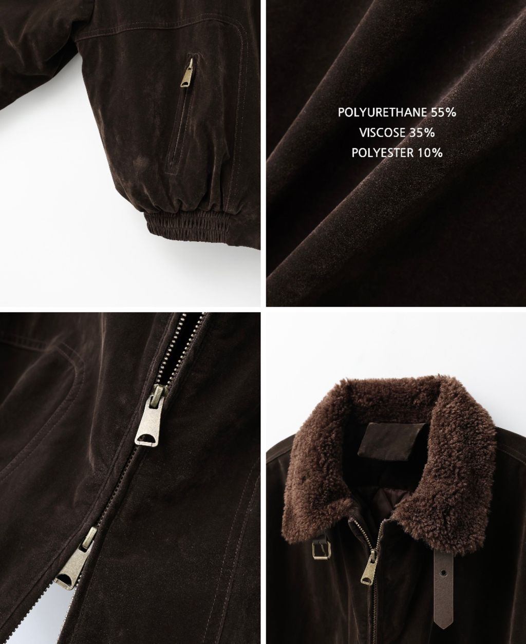 絨面布料 微反光 絨毛領口翻領 小高領 獵裝夾克外套 兩色