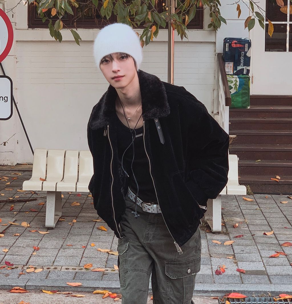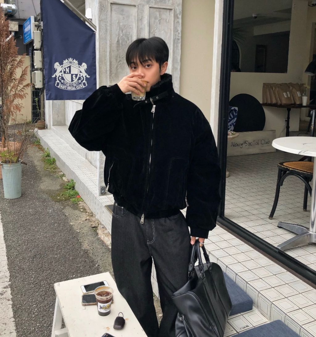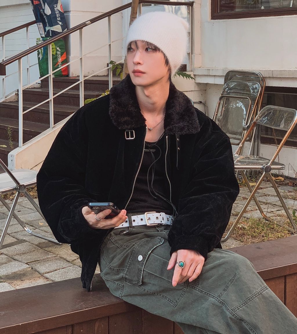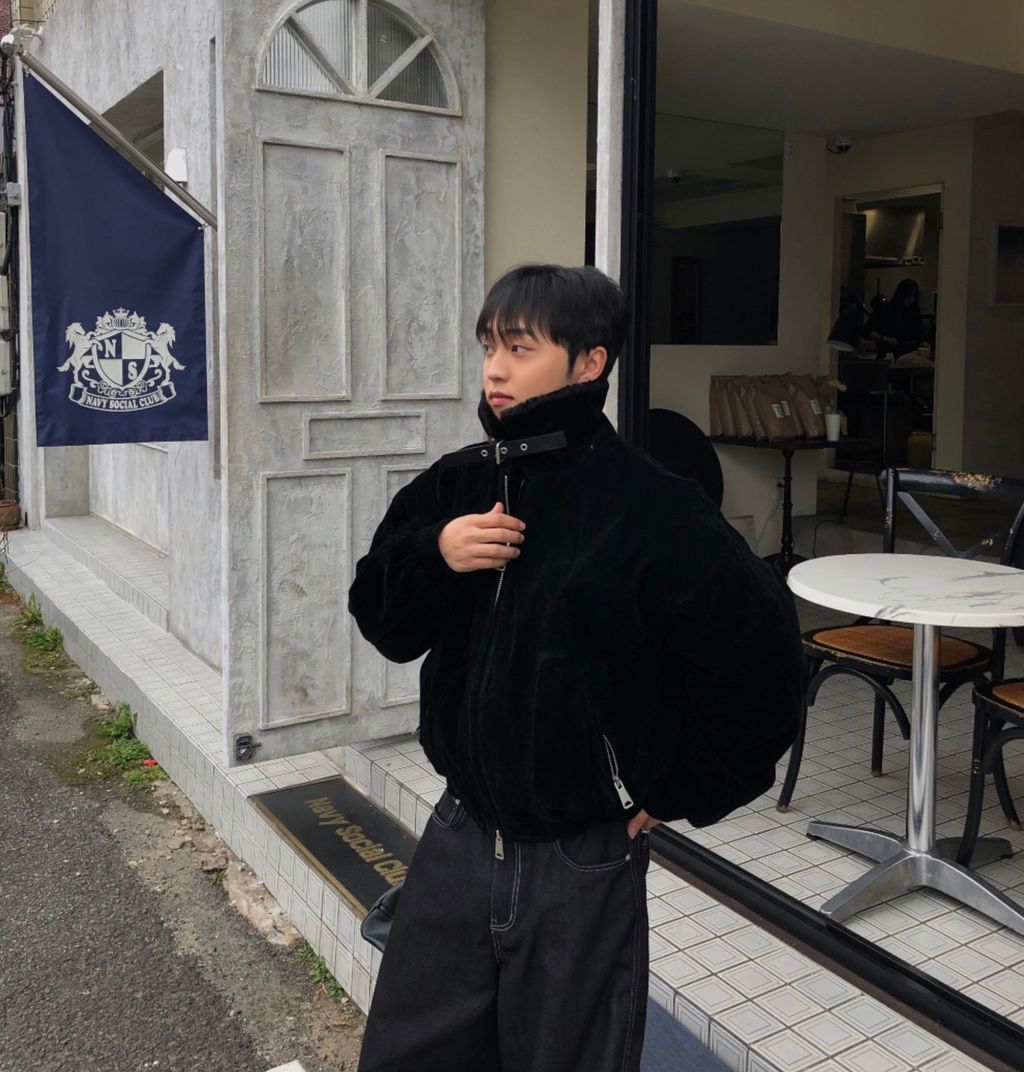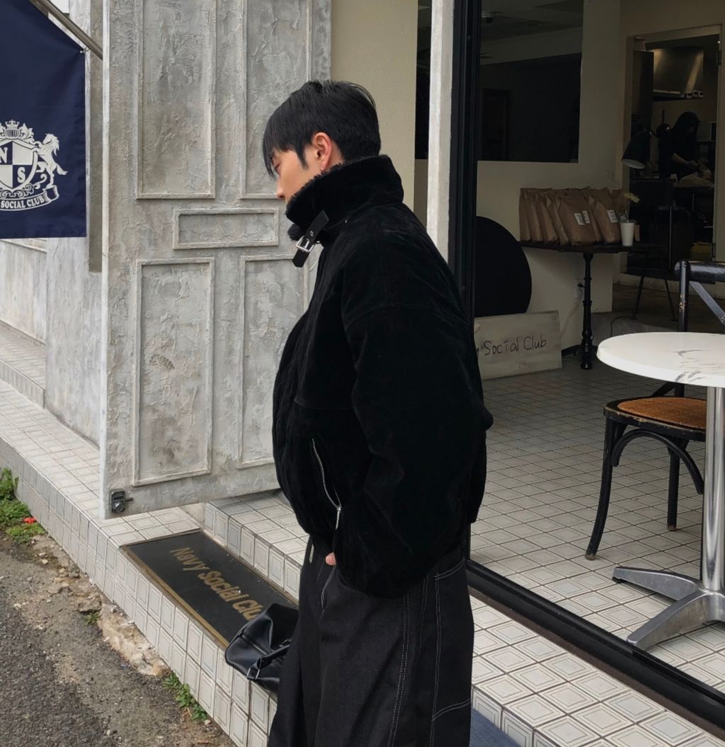 絨面布料 微反光 絨毛領口翻領 小高領 獵裝夾克外套 兩色