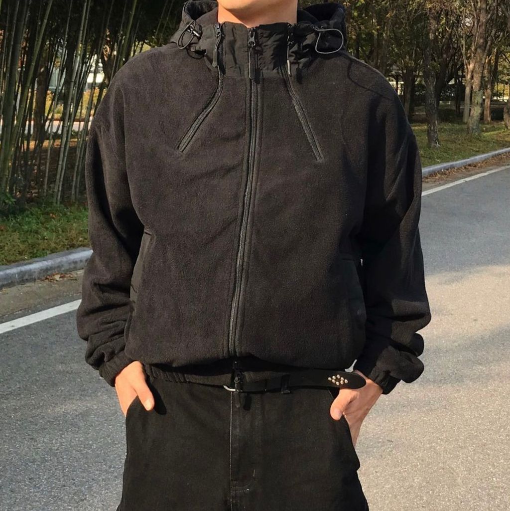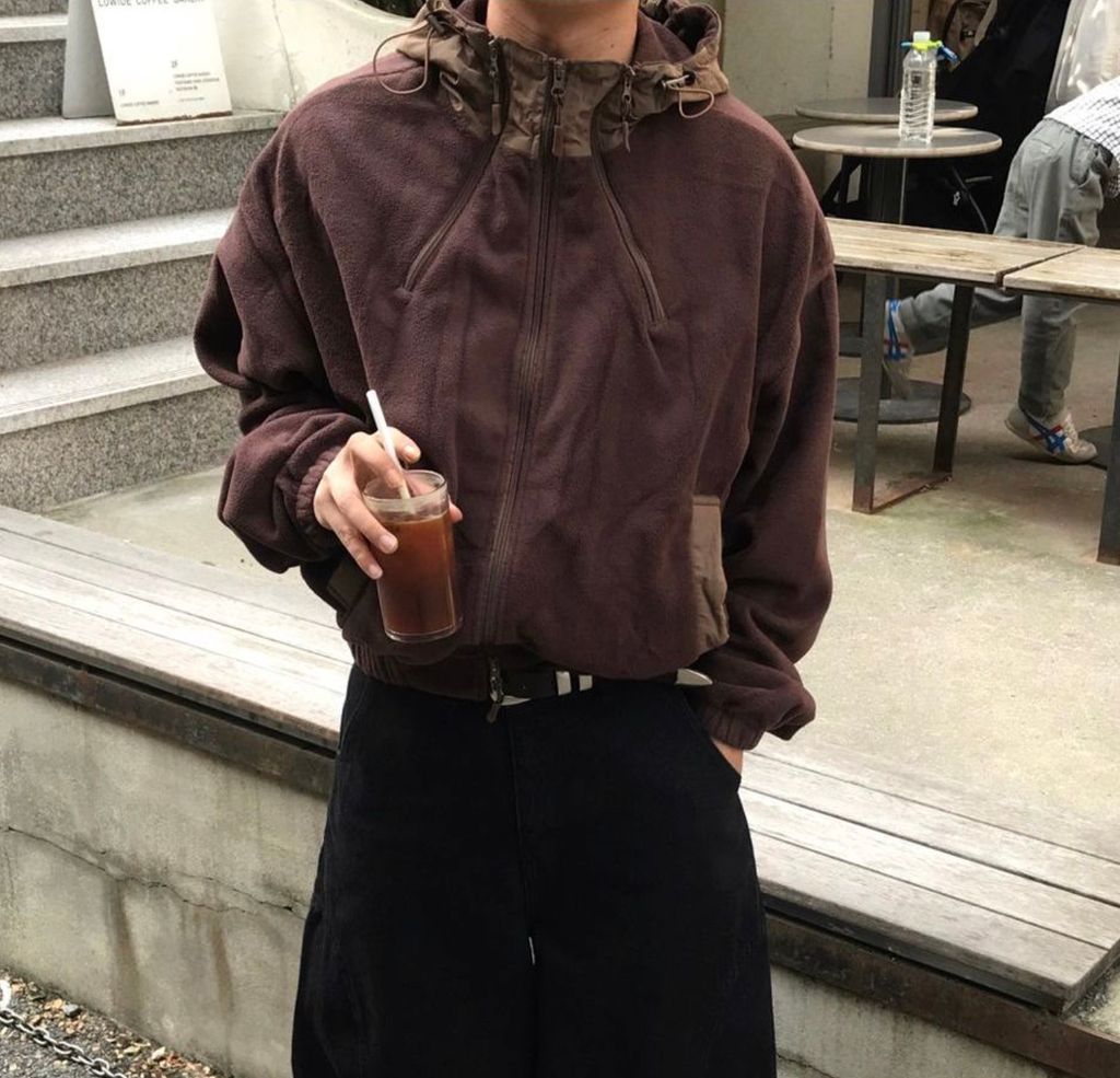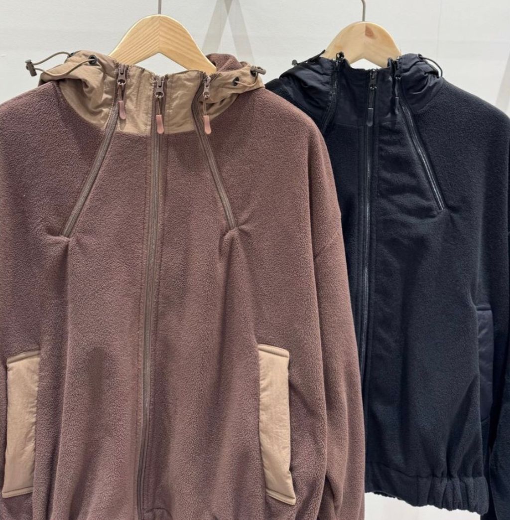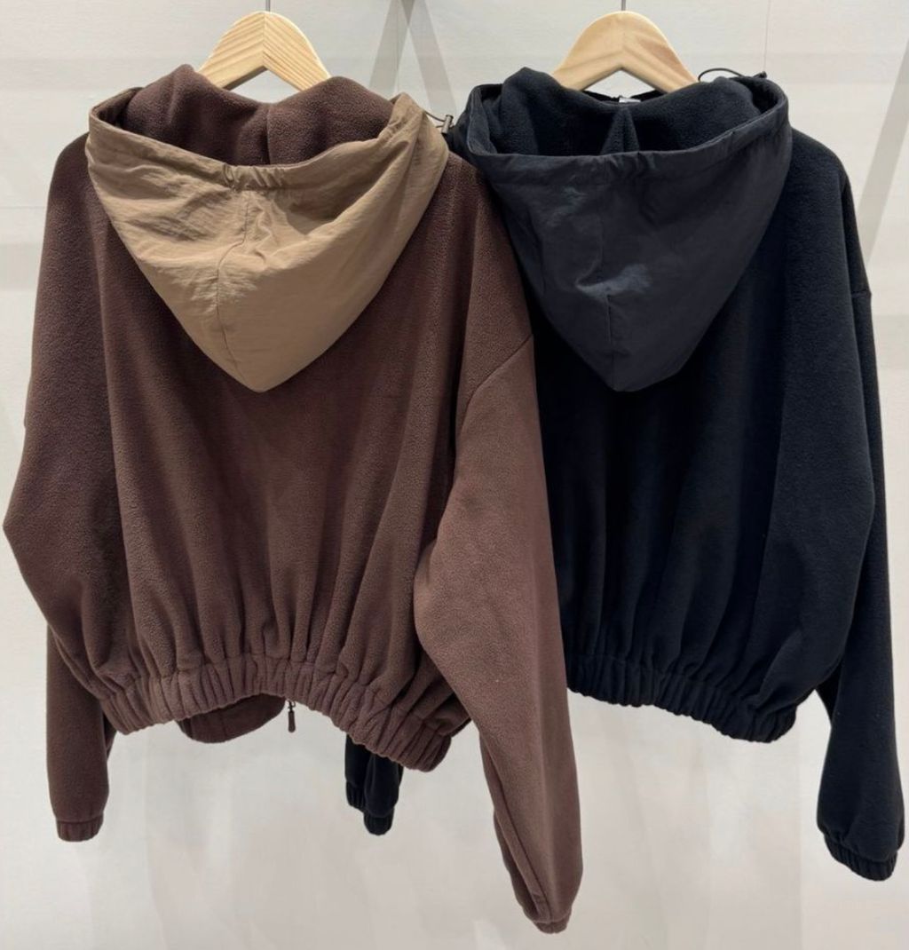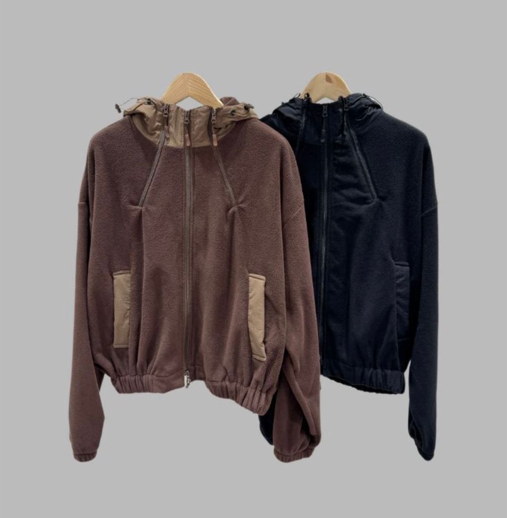 絨面 拼接布料 小高領 拉鍊裝飾拼接 連帽外套 兩色