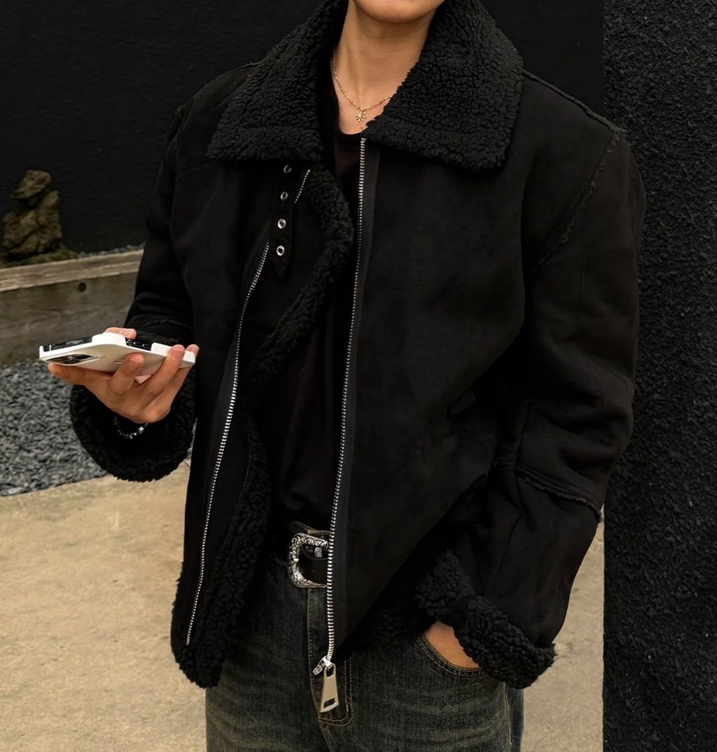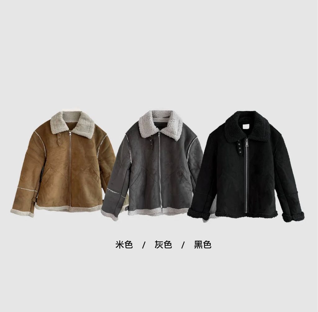 麂皮質感 刷毛領 秋冬野馬夾克外套 三色