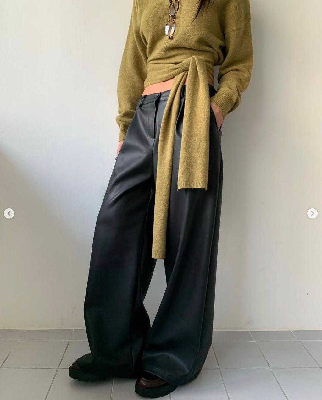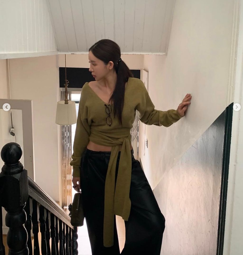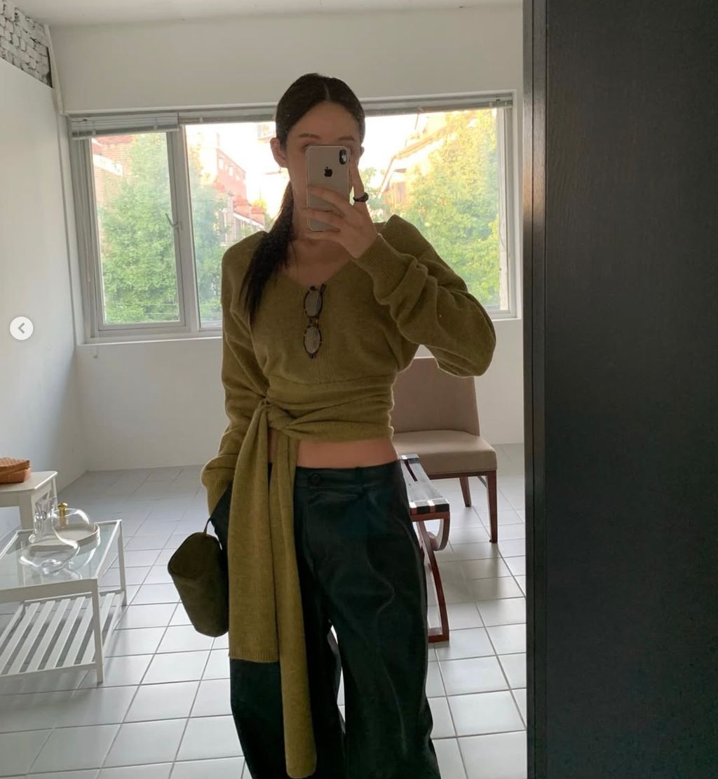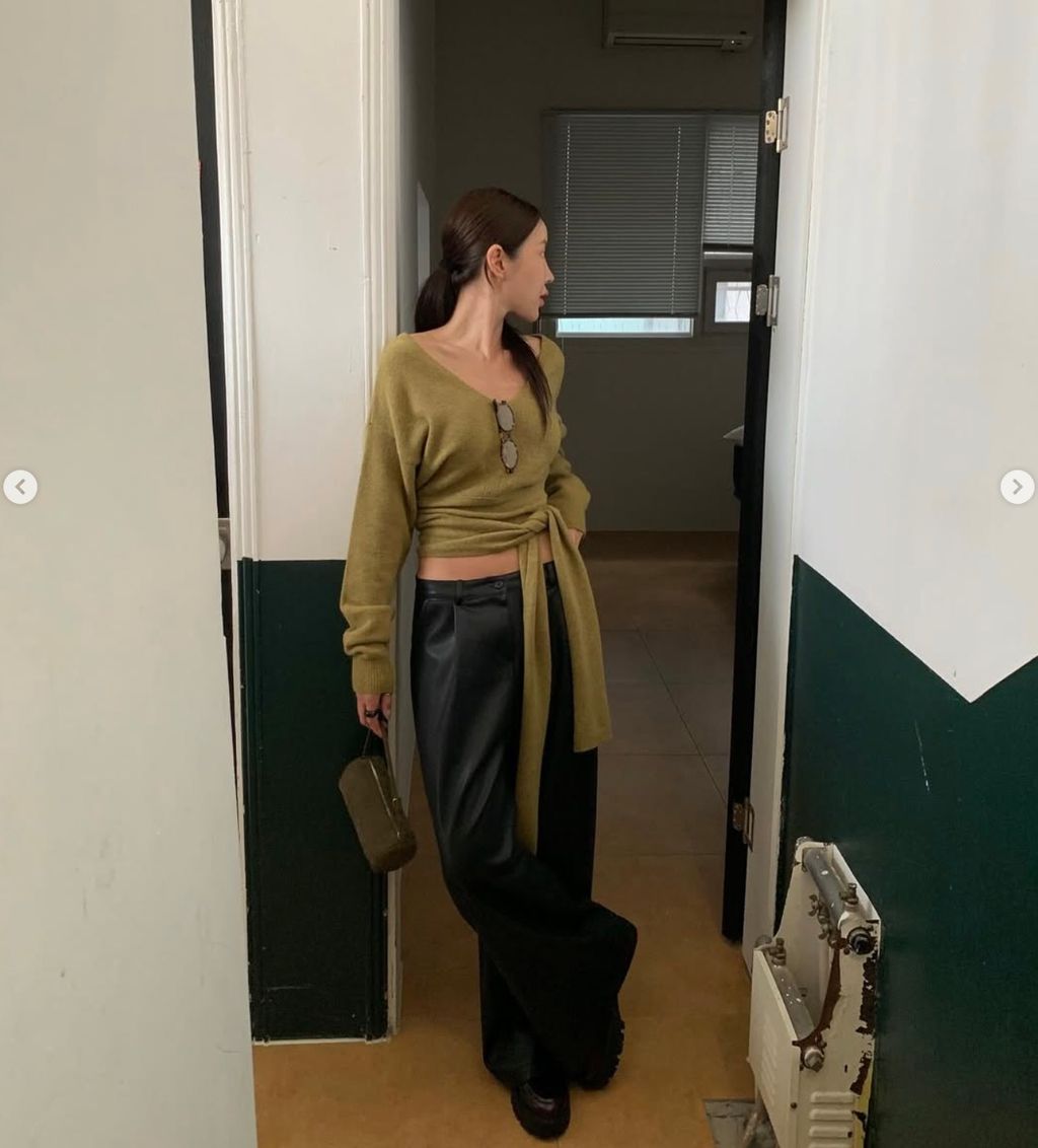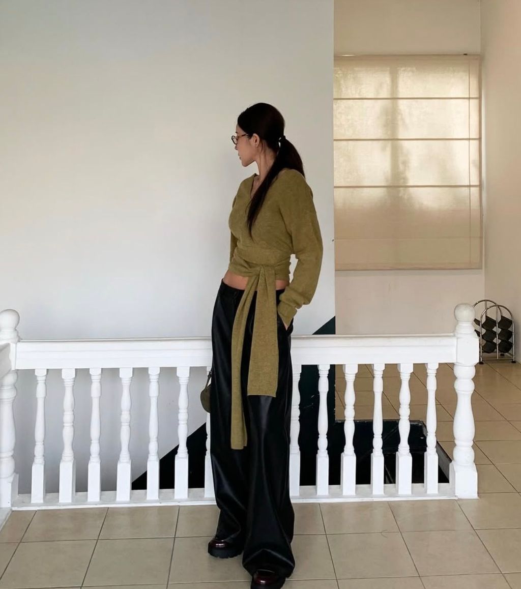江南風格 下擺綁帶 深V領 針織衫 三色