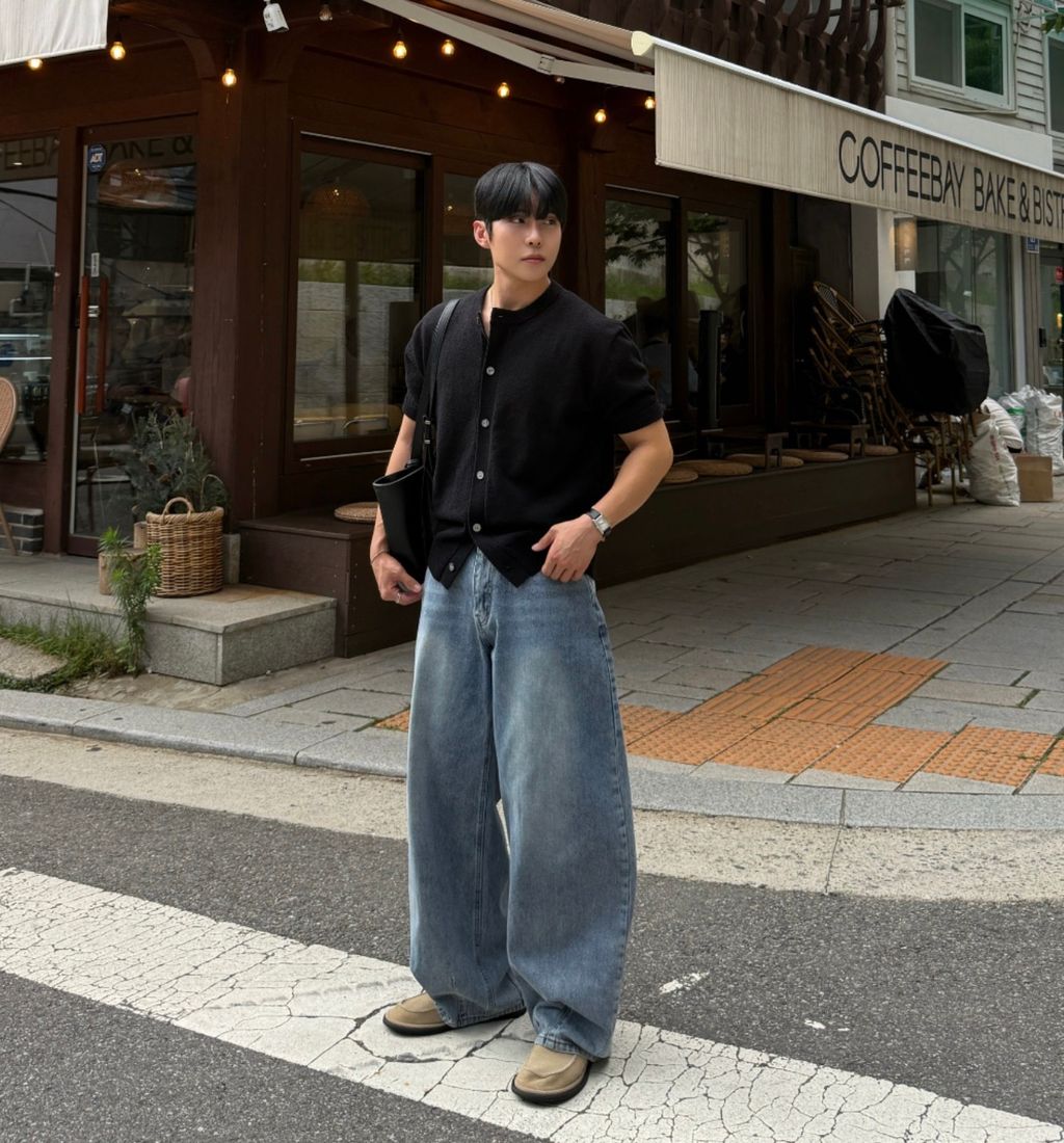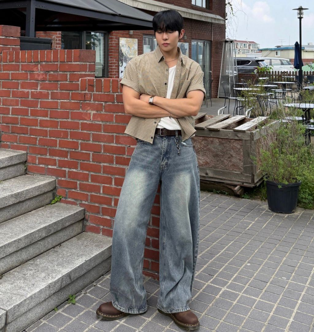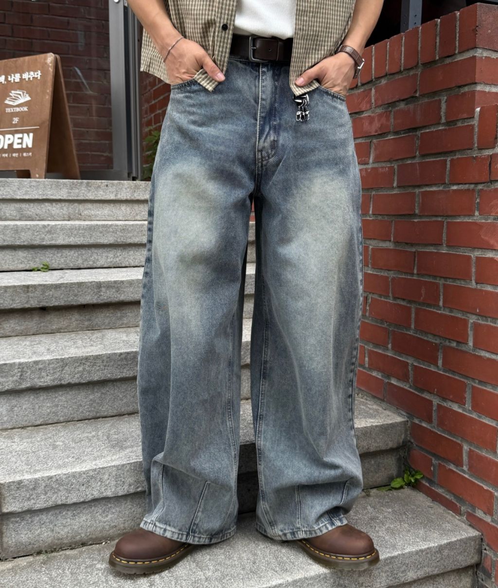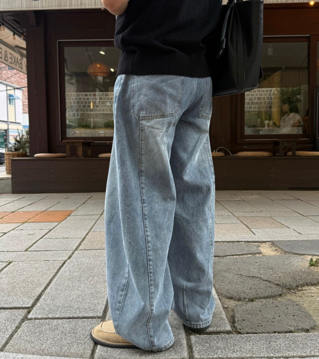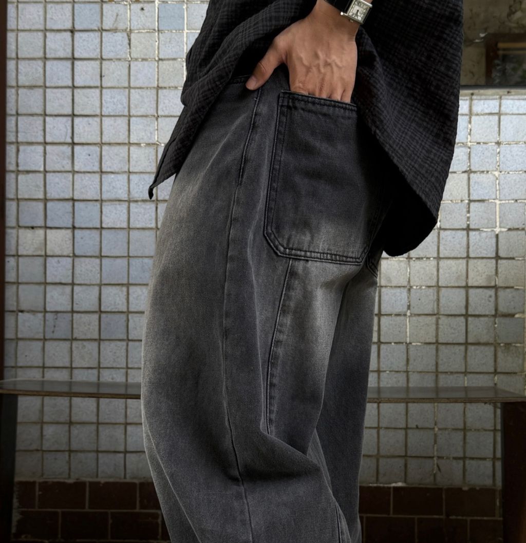寬管 褲管縮口 彎刀褲 做舊刷色 單寧牛仔褲 三色