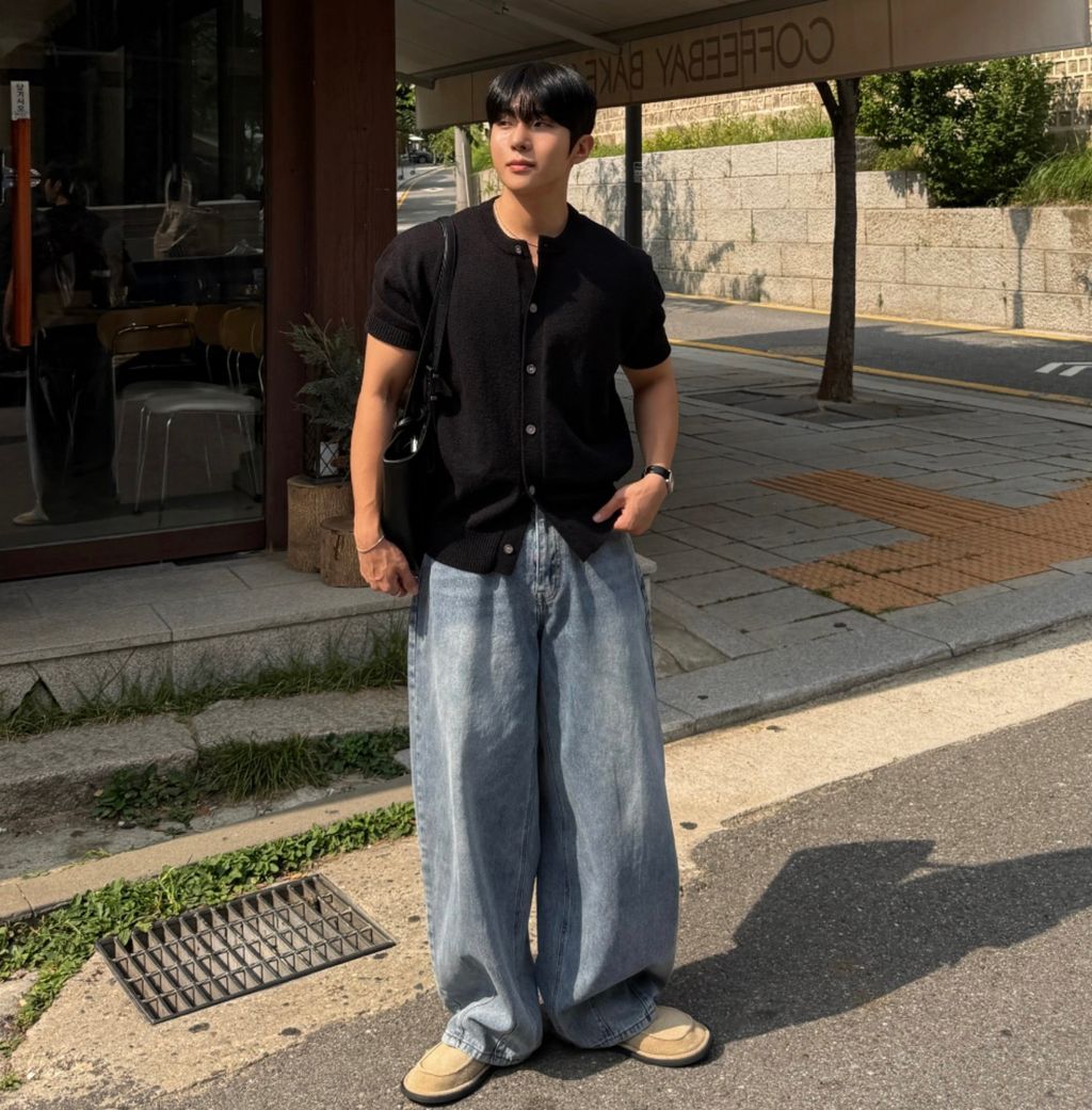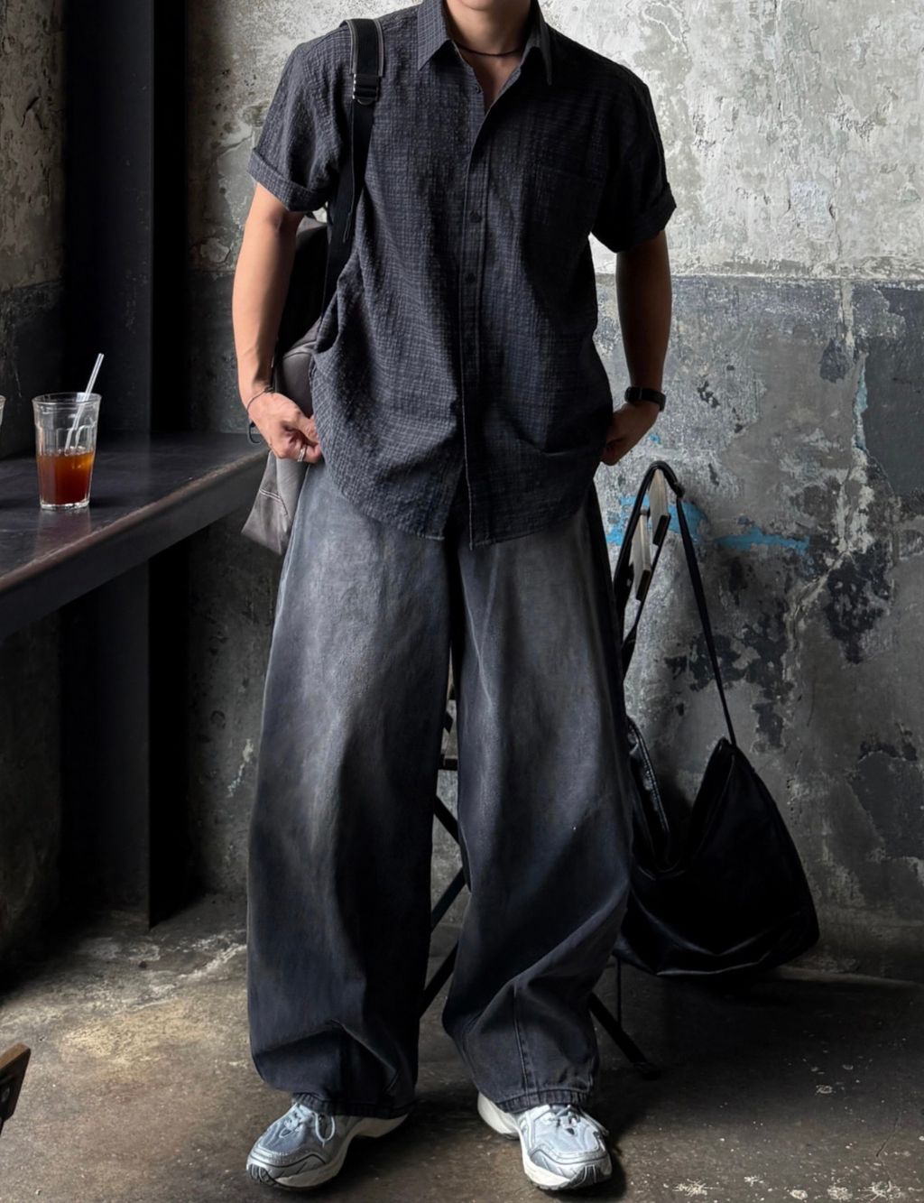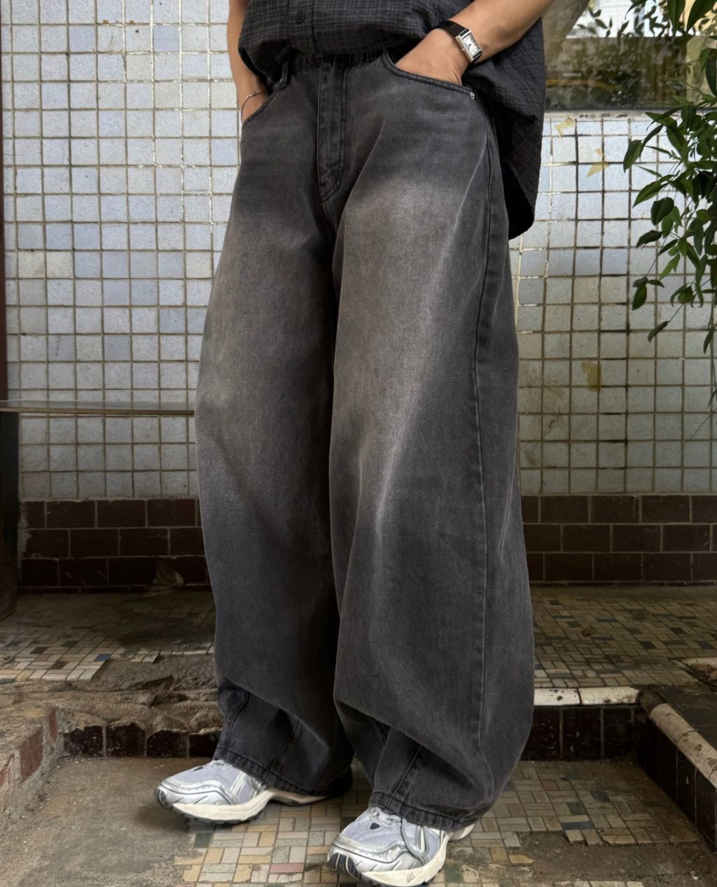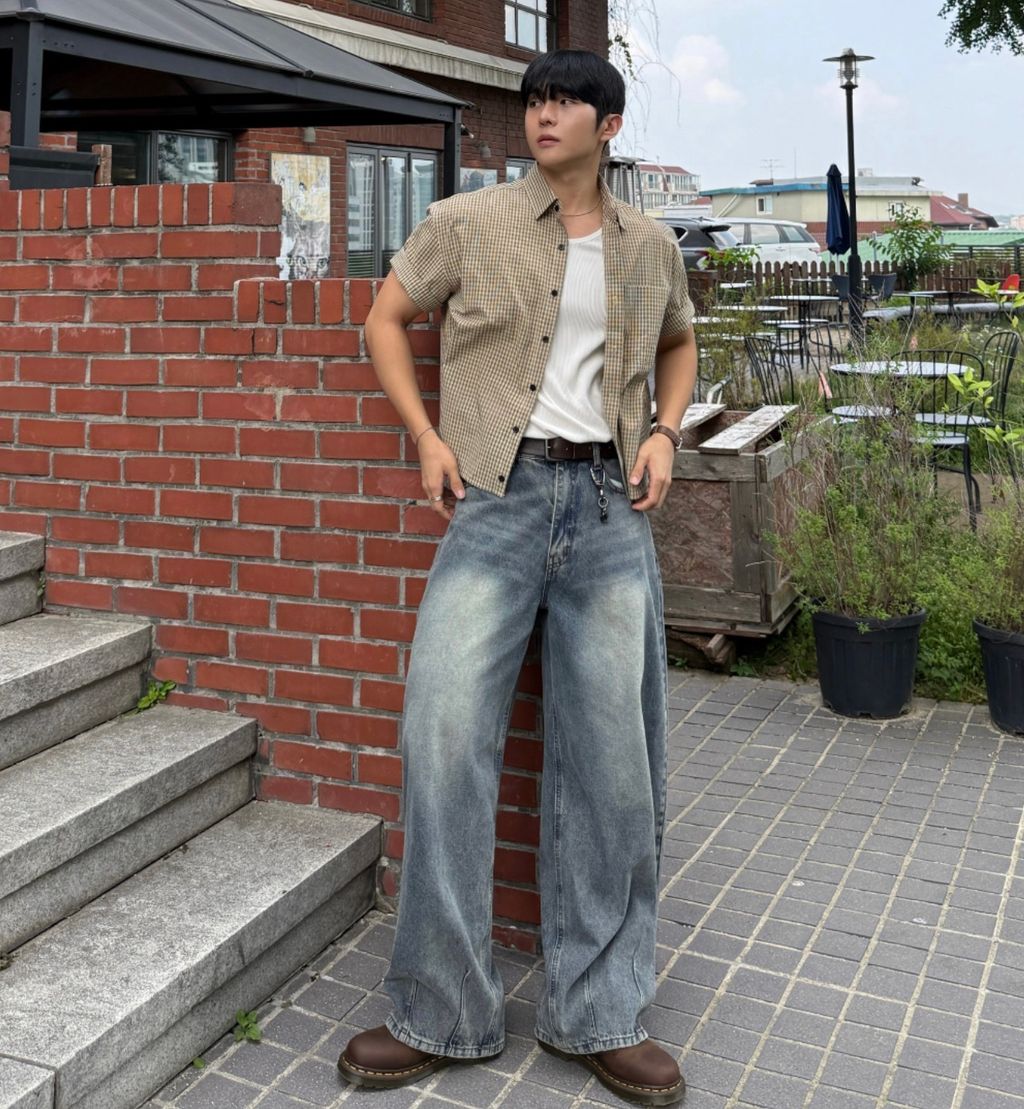 寬管 褲管縮口 彎刀褲 做舊刷色 單寧牛仔褲 三色