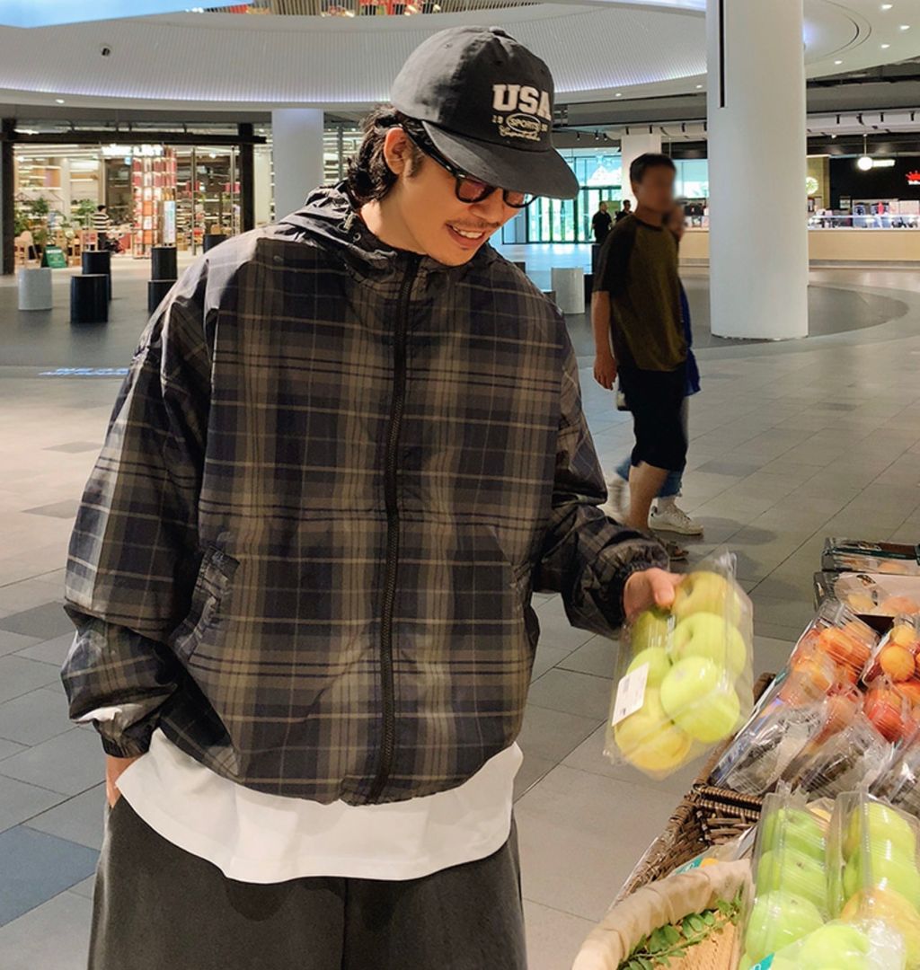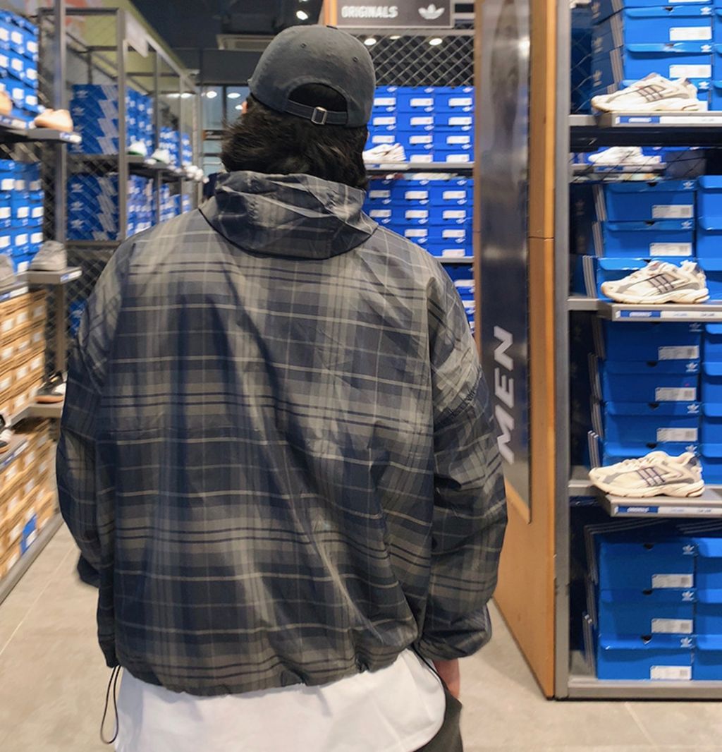 山系 露營風 格紋 男女可穿 連帽 防風外套夾克 兩色