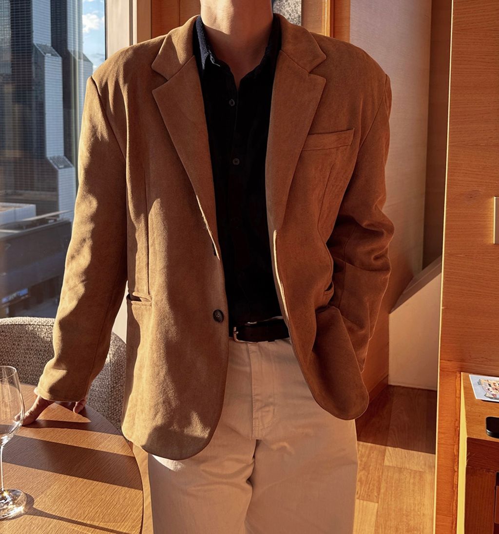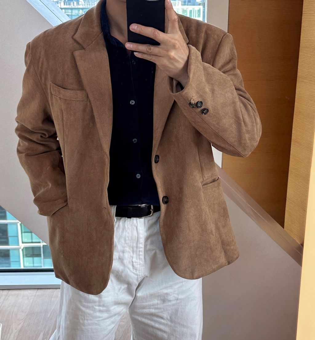 清潭洞 豪奢質感 長版 麂皮質感西裝外套 三色