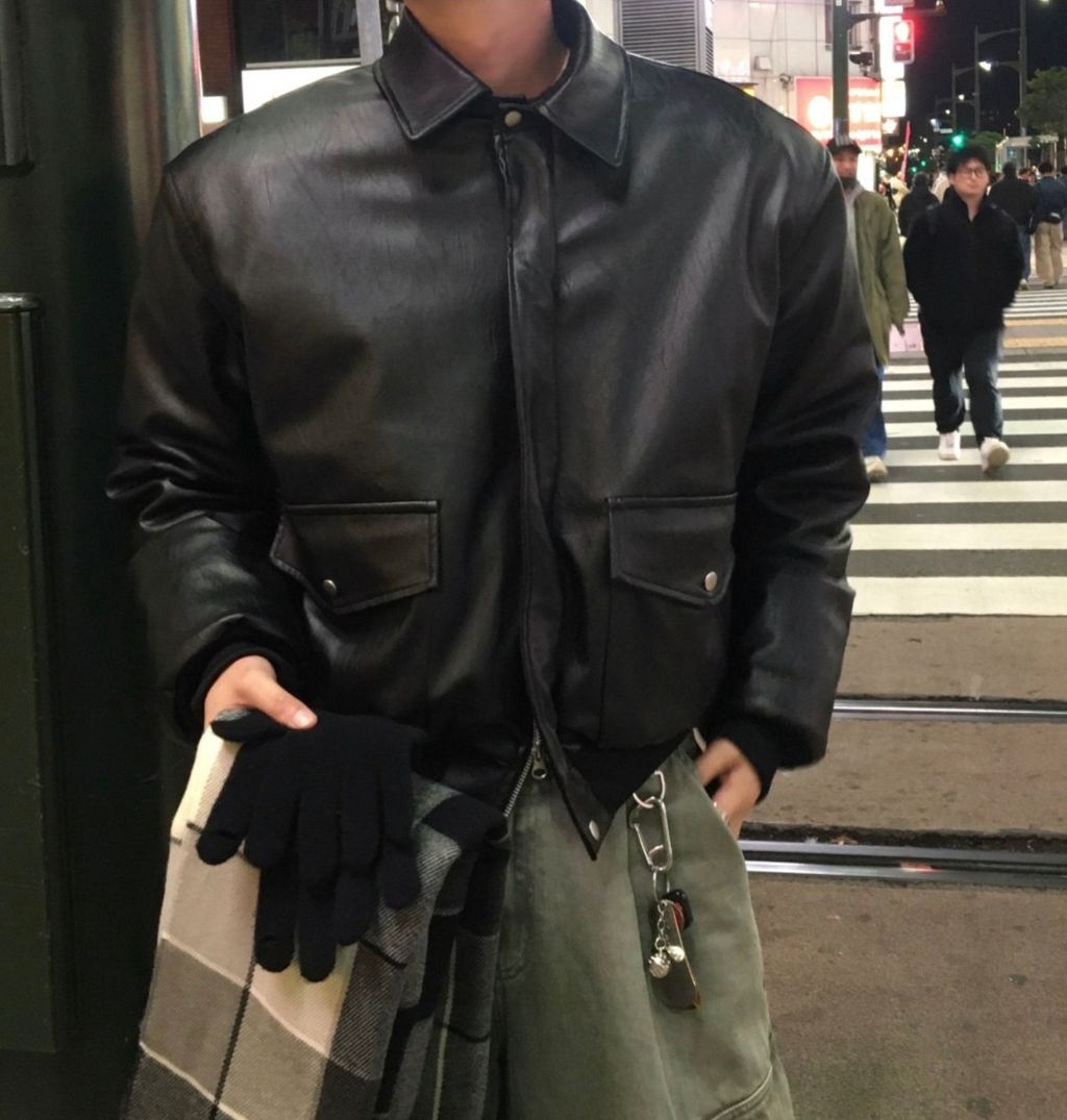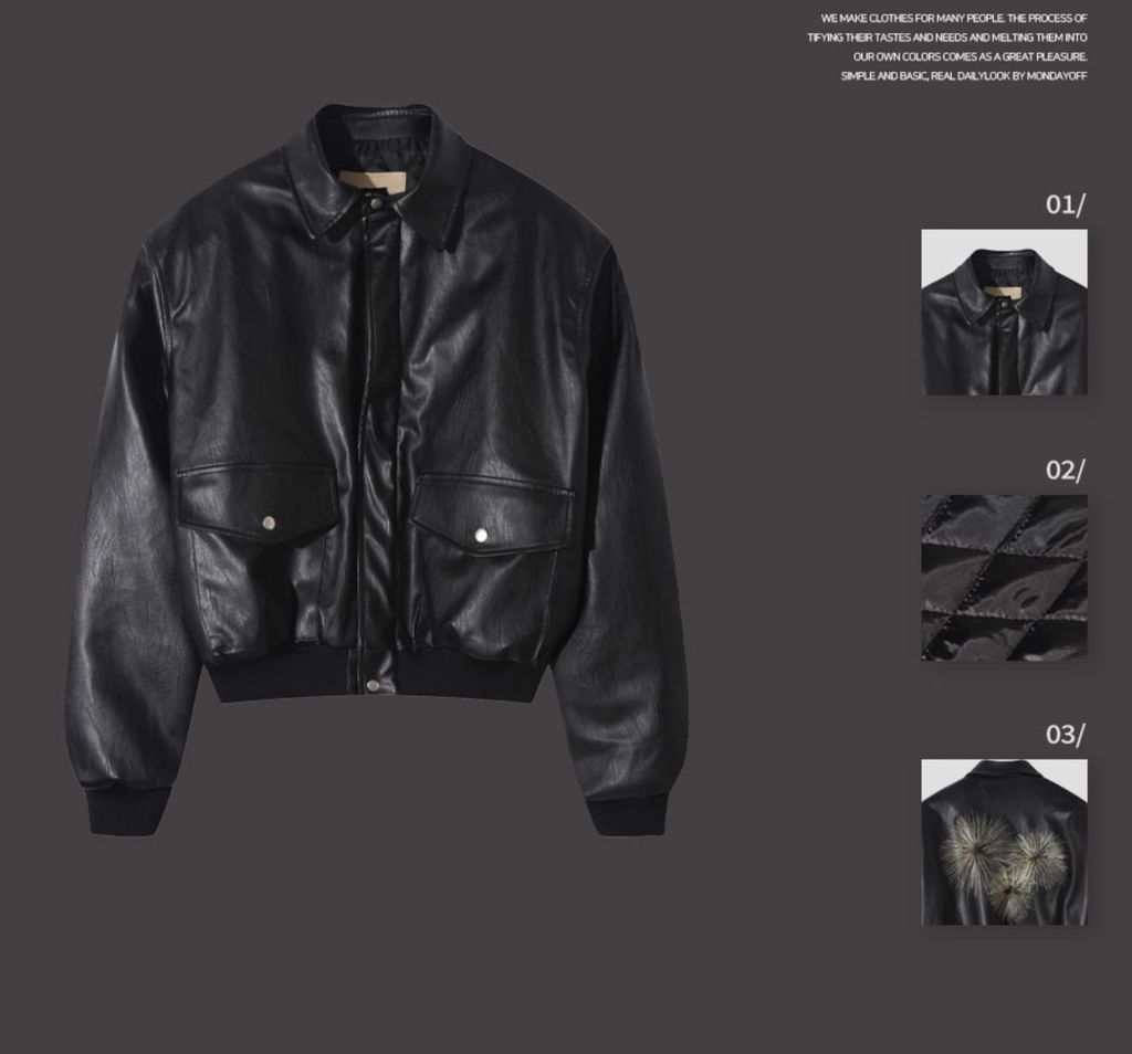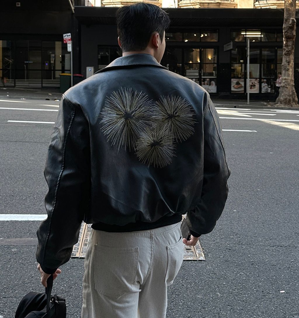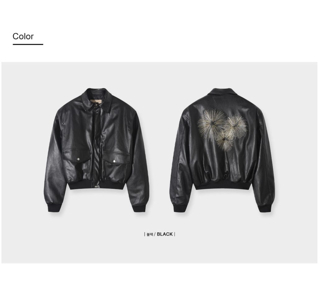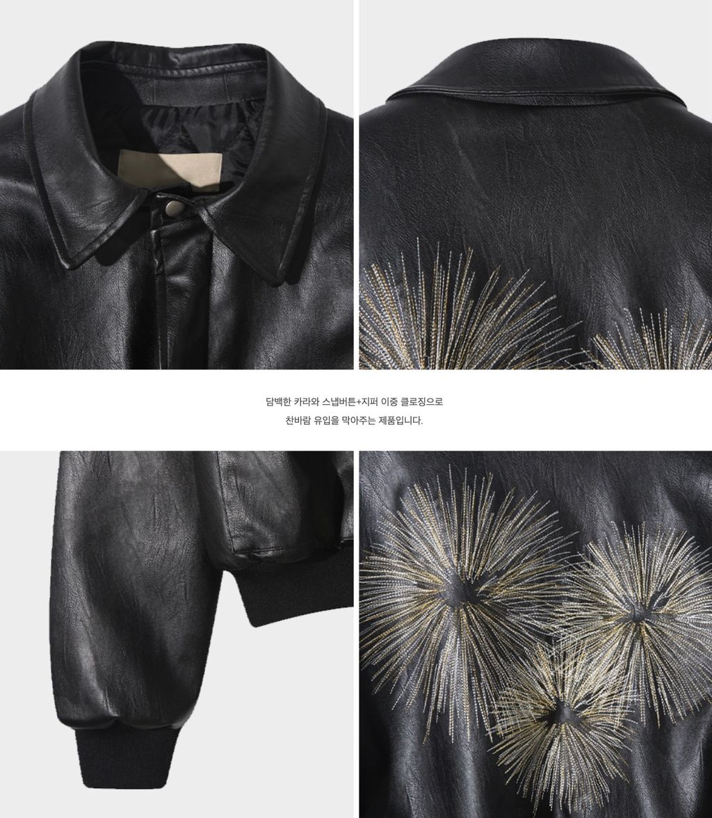 煙火燦爛 雙口袋 布魯克林 騎士皮革外套夾克 黑色