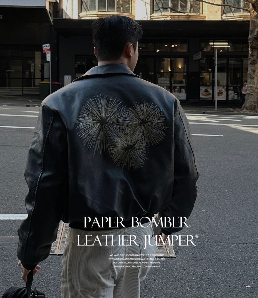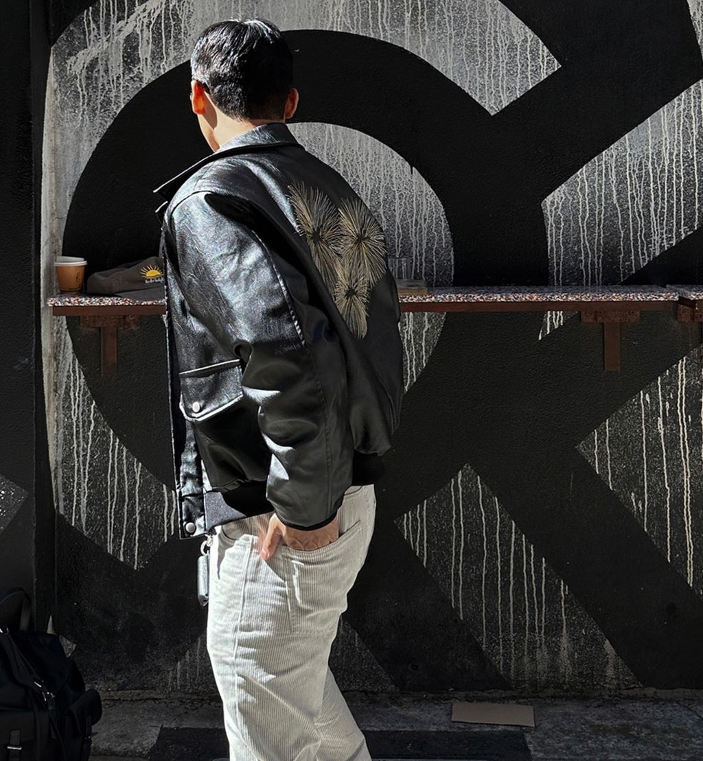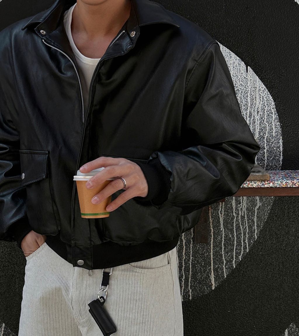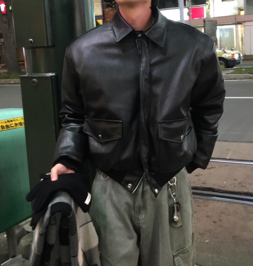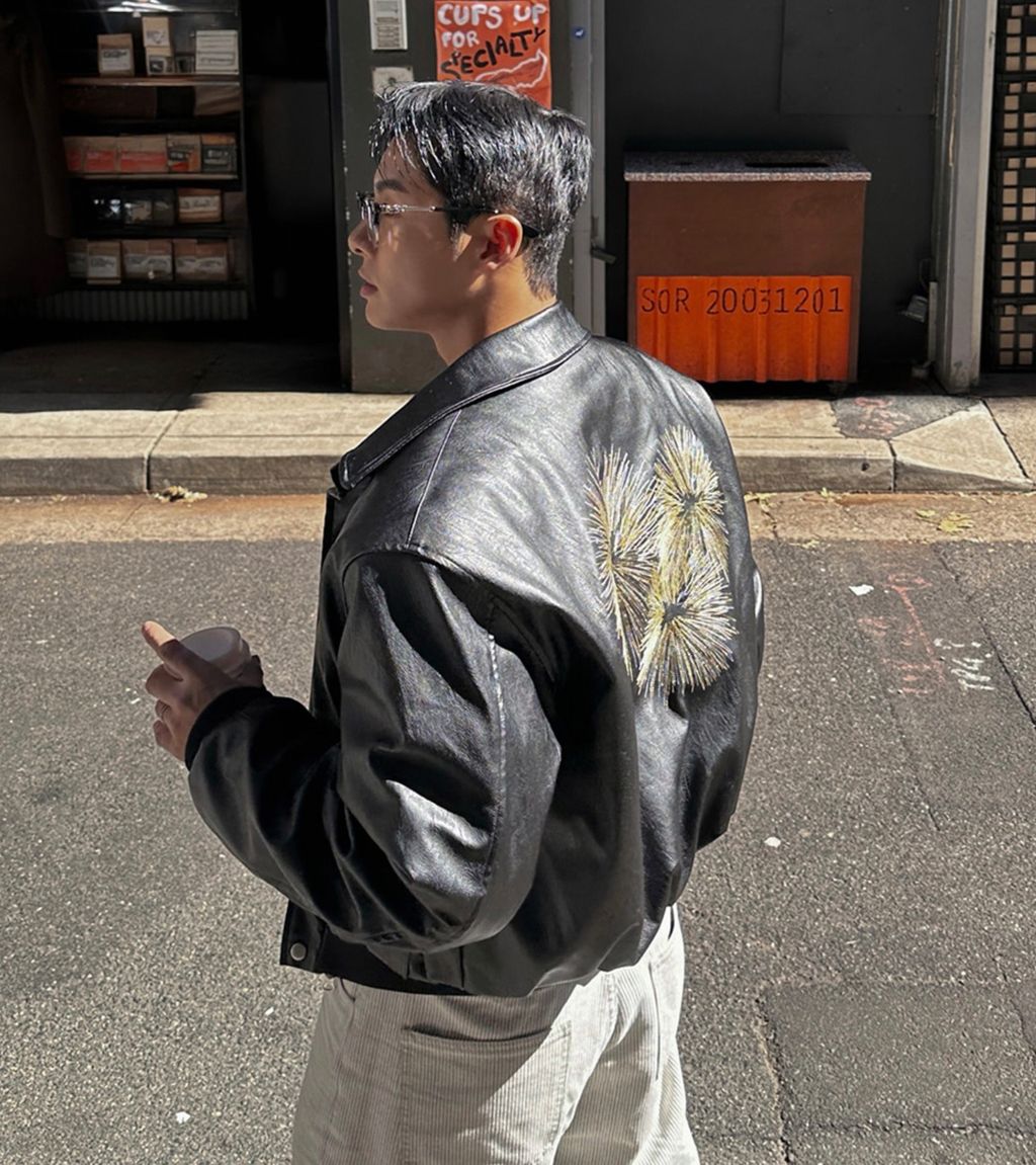 煙火燦爛 雙口袋 布魯克林 騎士皮革外套夾克 黑色
