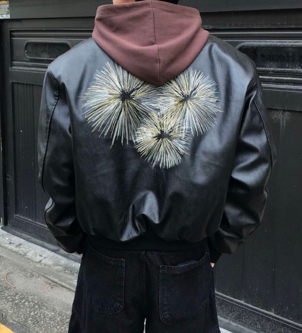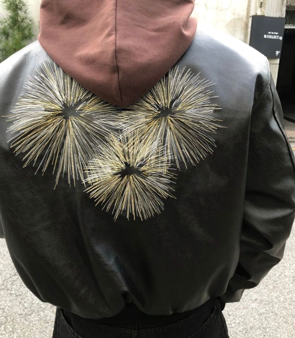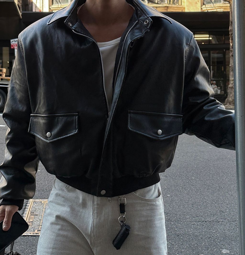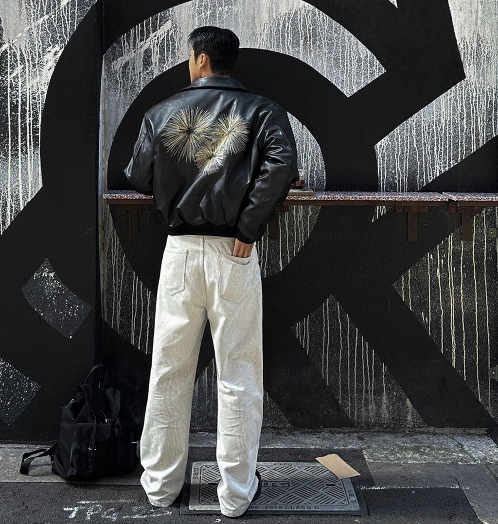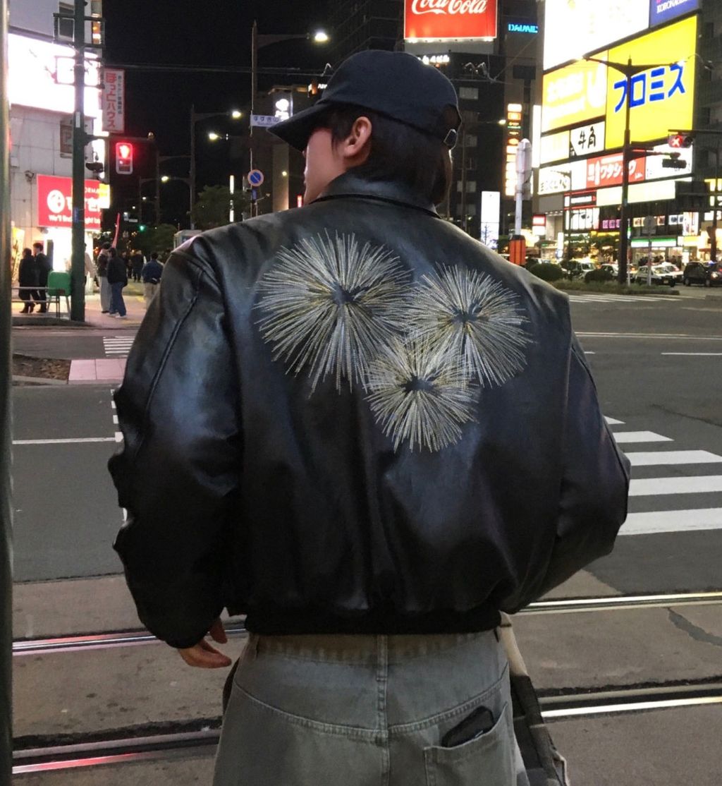煙火燦爛 雙口袋 布魯克林 騎士皮革外套夾克 黑色