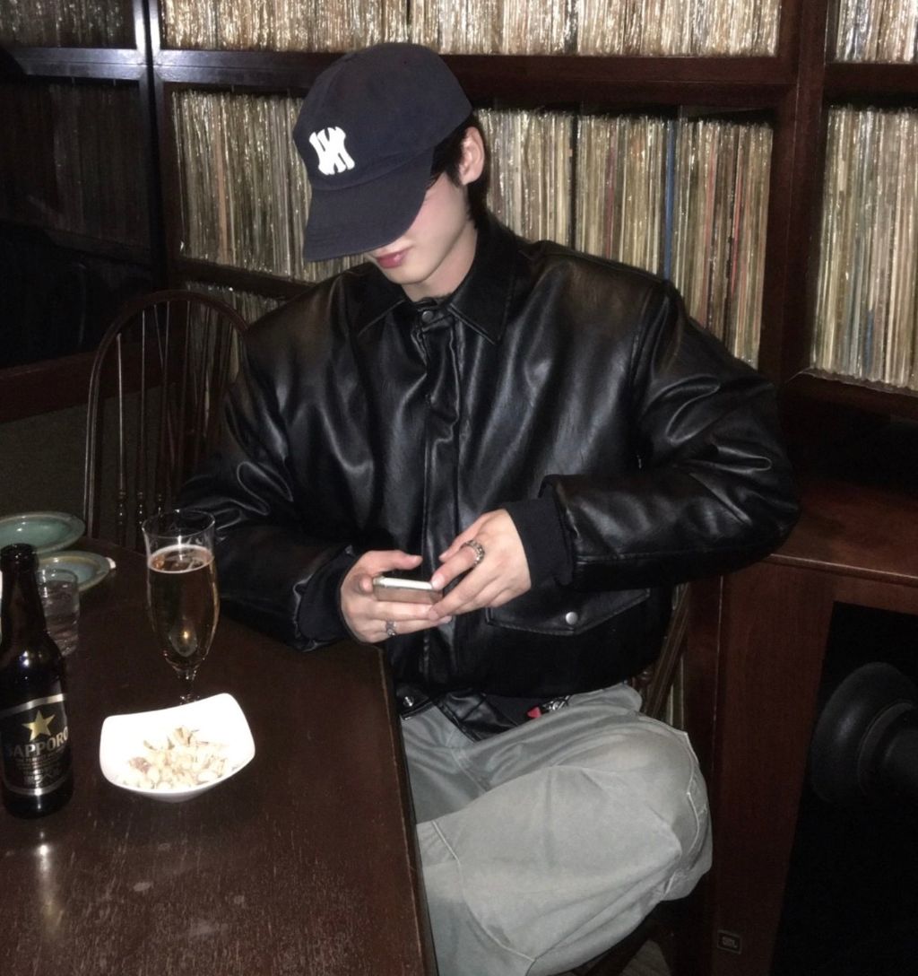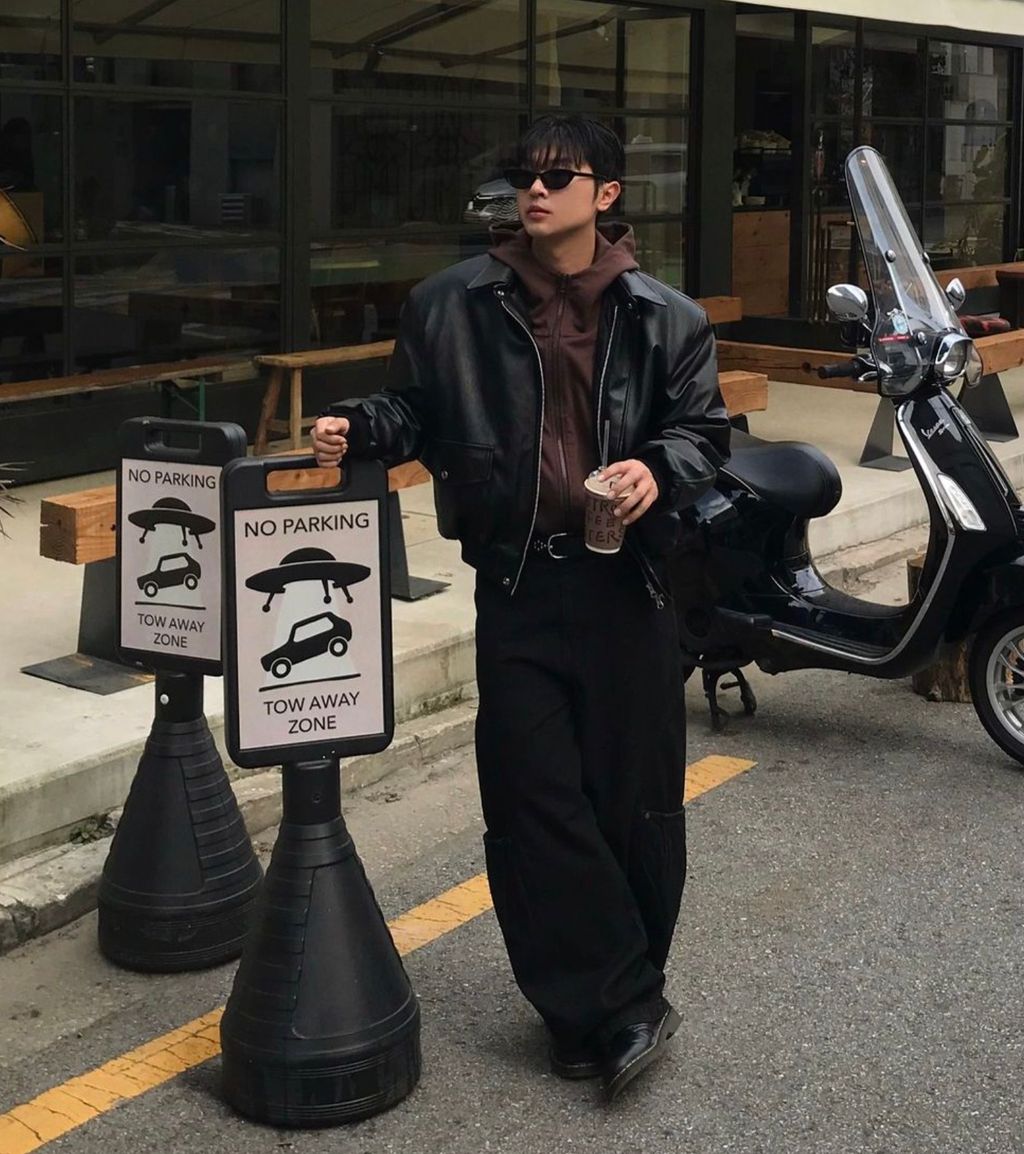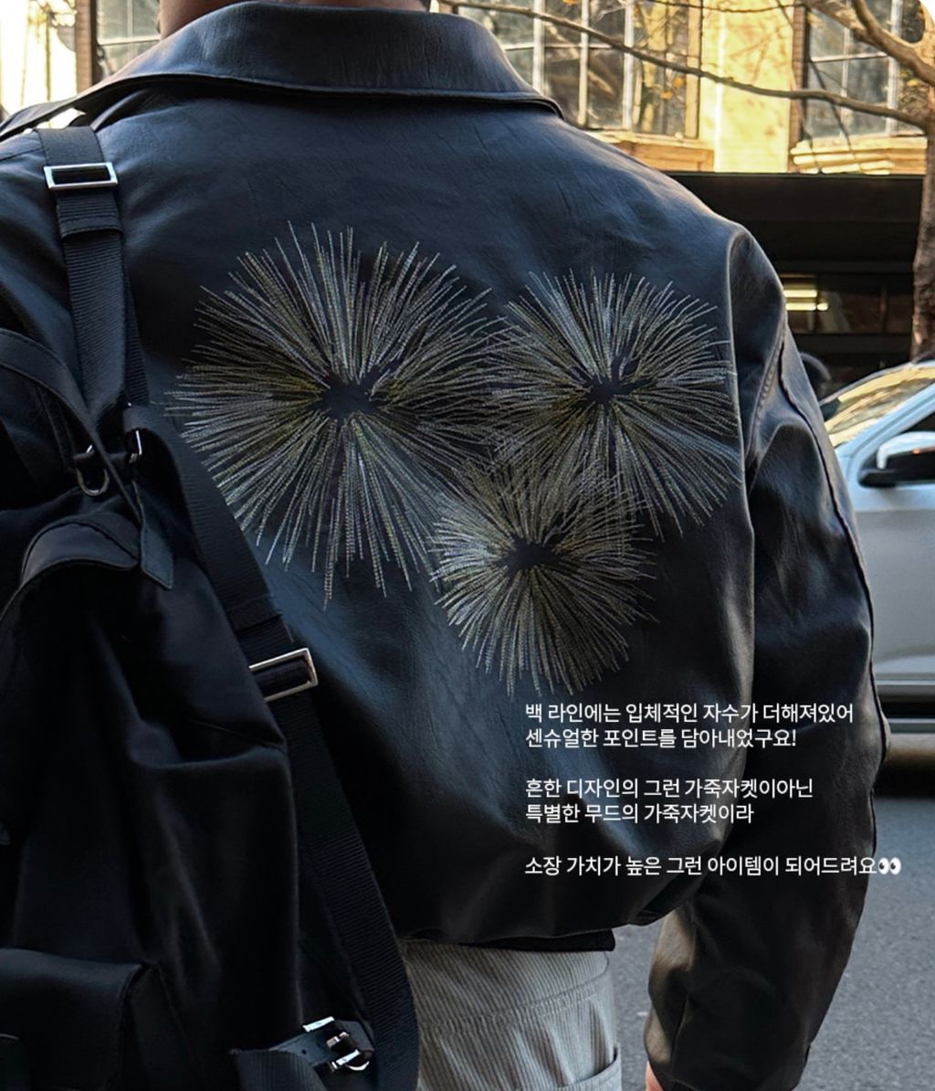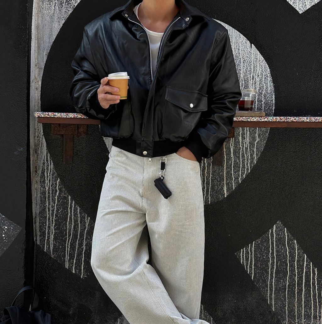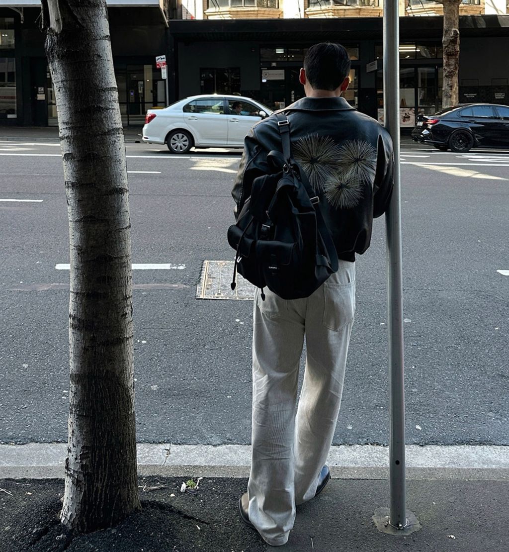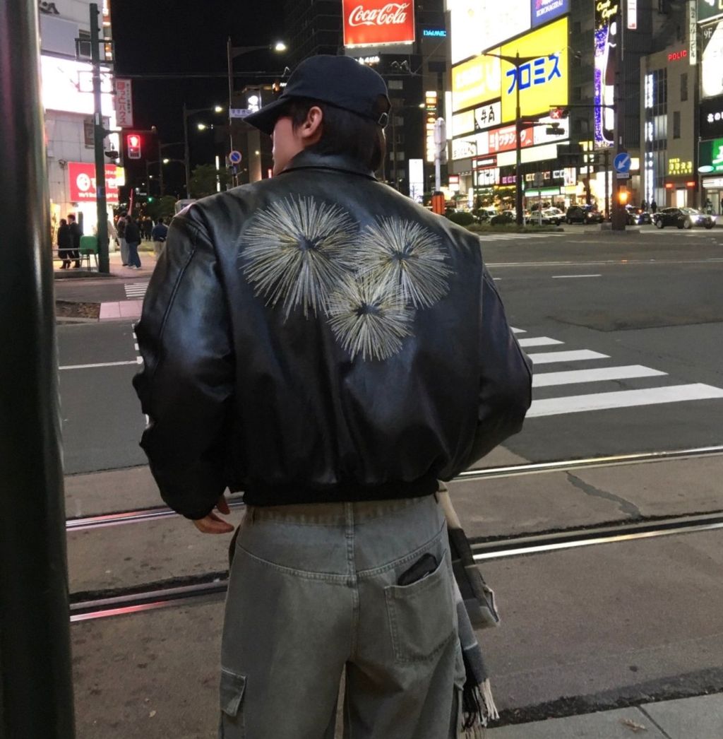 煙火燦爛 雙口袋 布魯克林 騎士皮革外套夾克 黑色