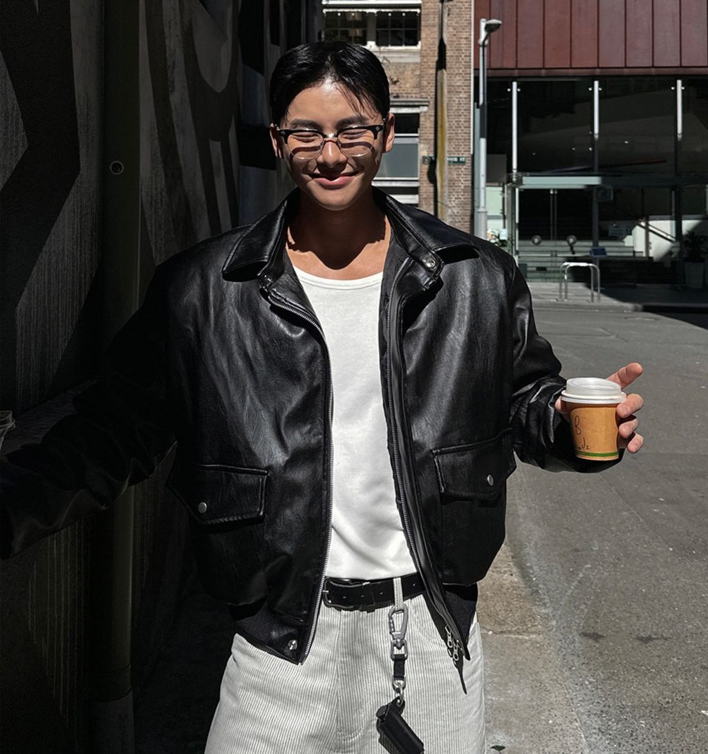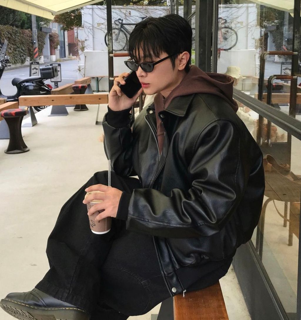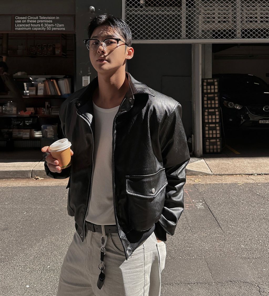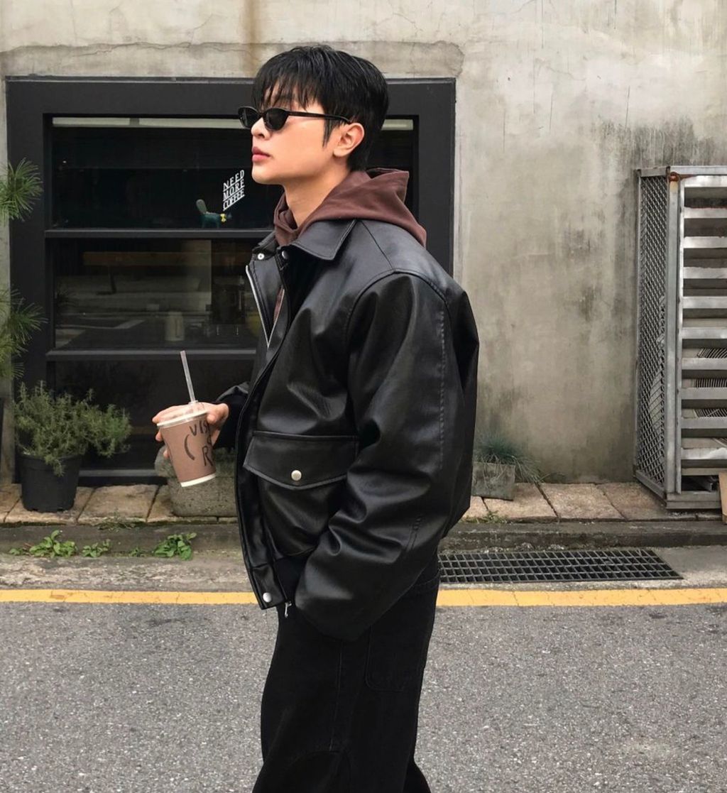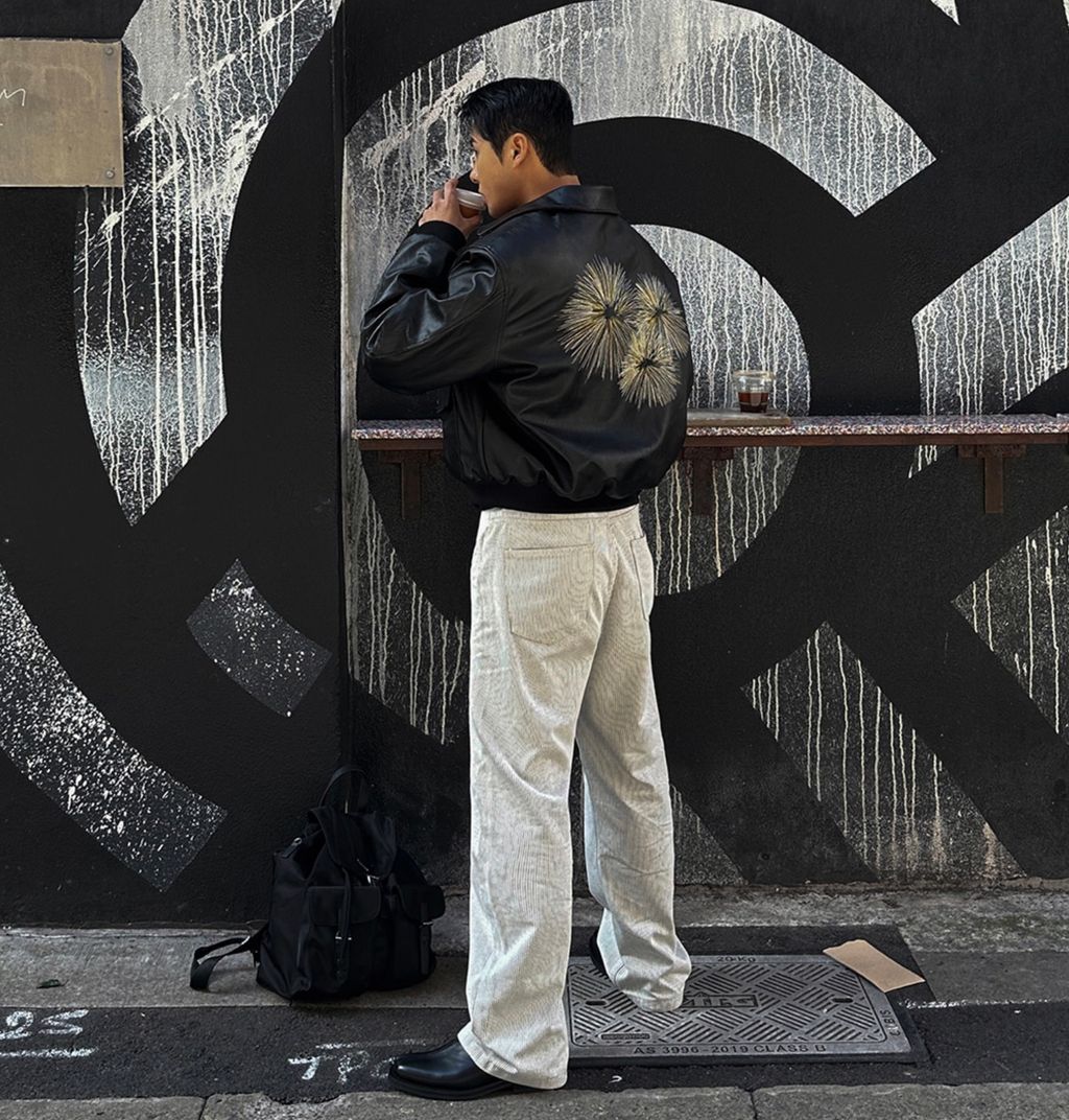 煙火燦爛 雙口袋 布魯克林 騎士皮革外套夾克 黑色
