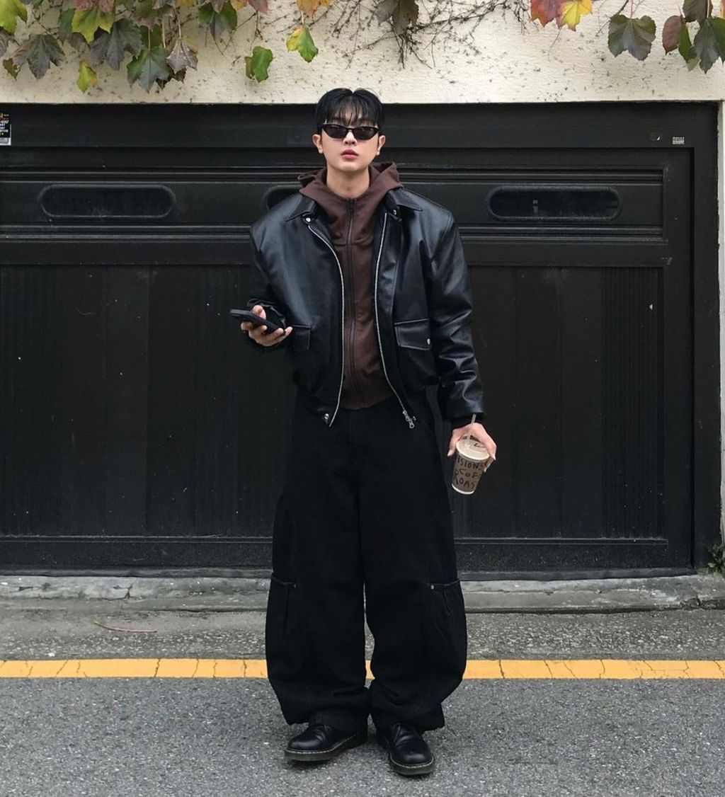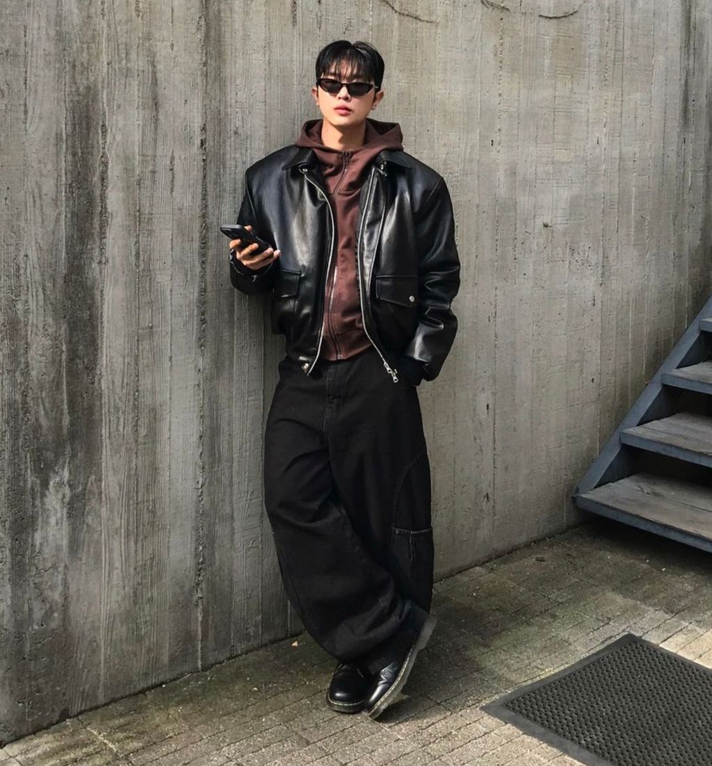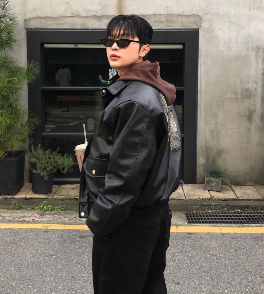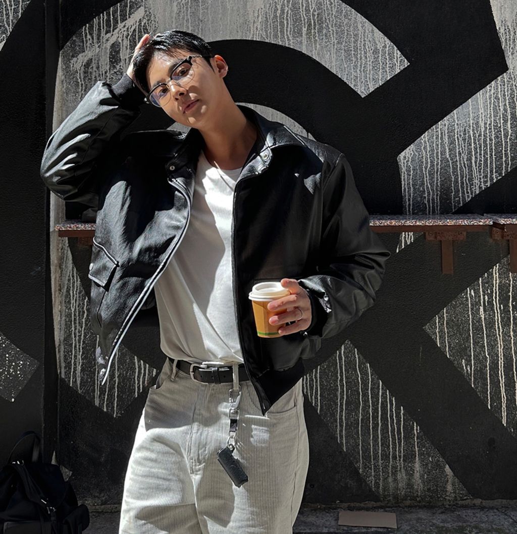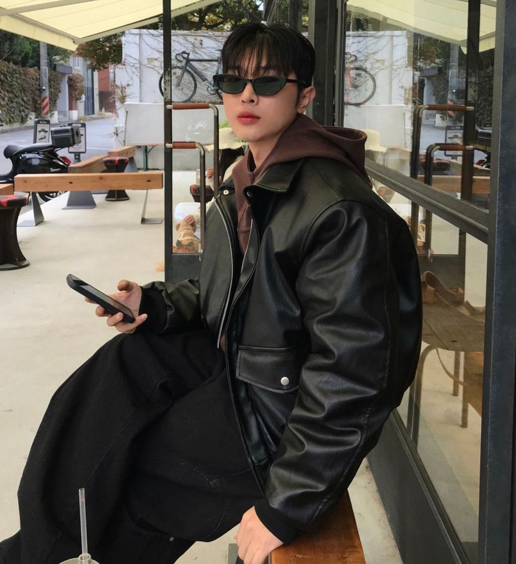 煙火燦爛 雙口袋 布魯克林 騎士皮革外套夾克 黑色