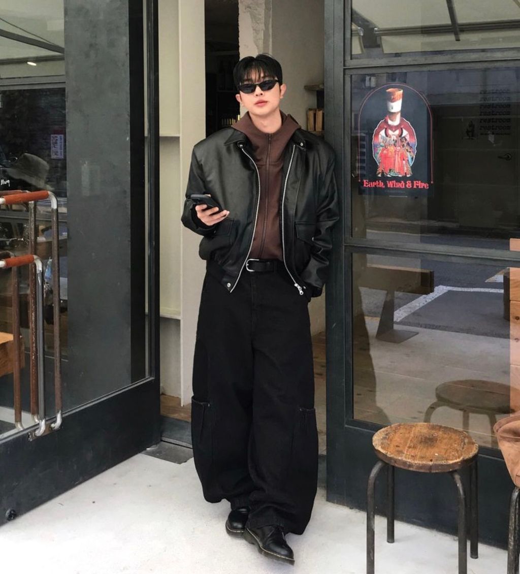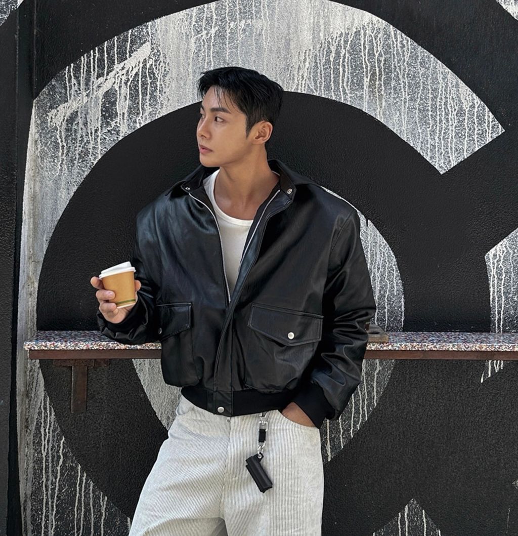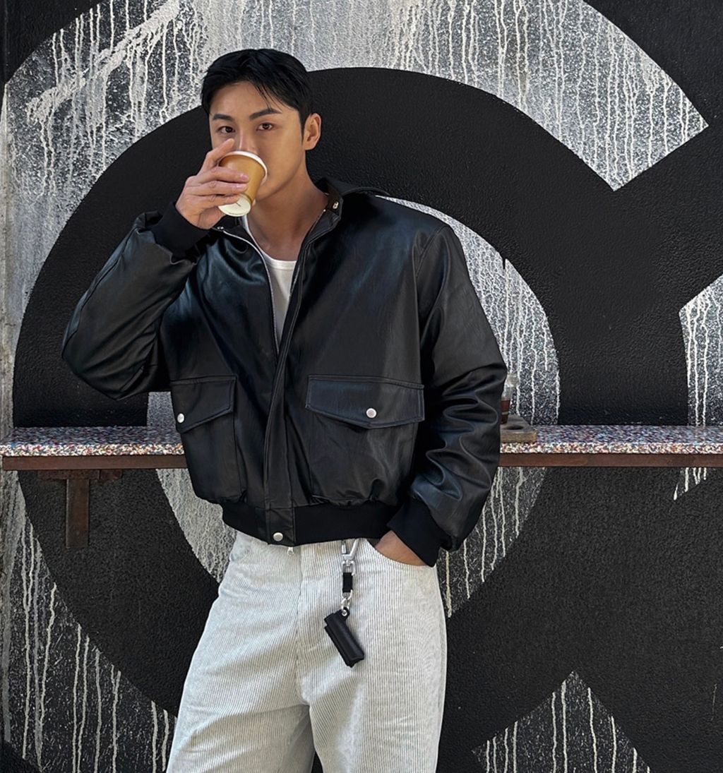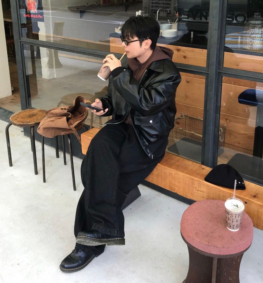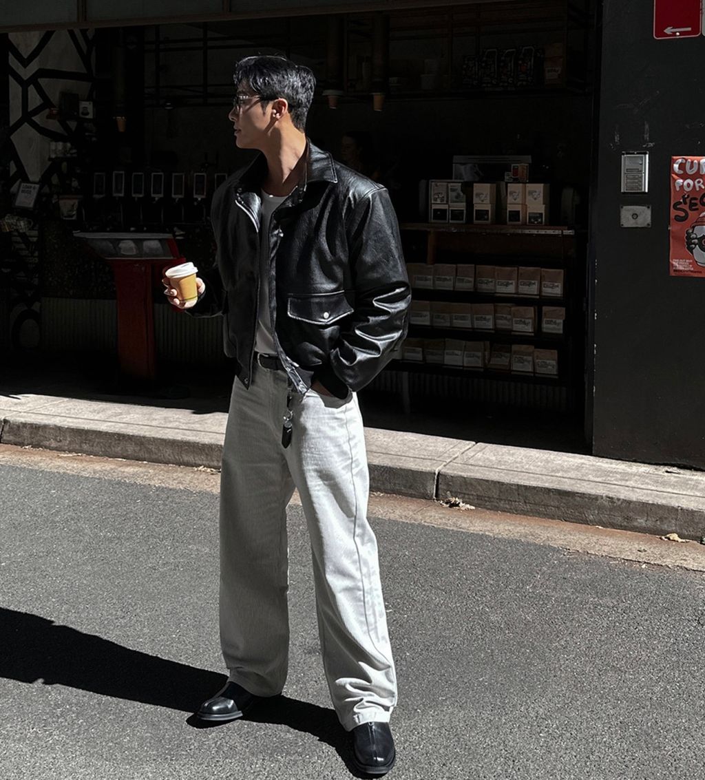 煙火燦爛 雙口袋 布魯克林 騎士皮革外套夾克 黑色