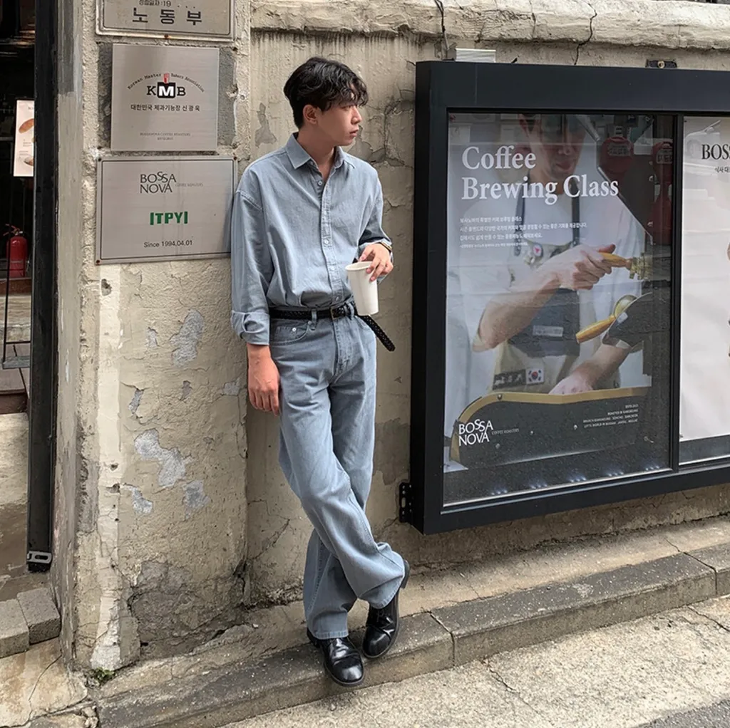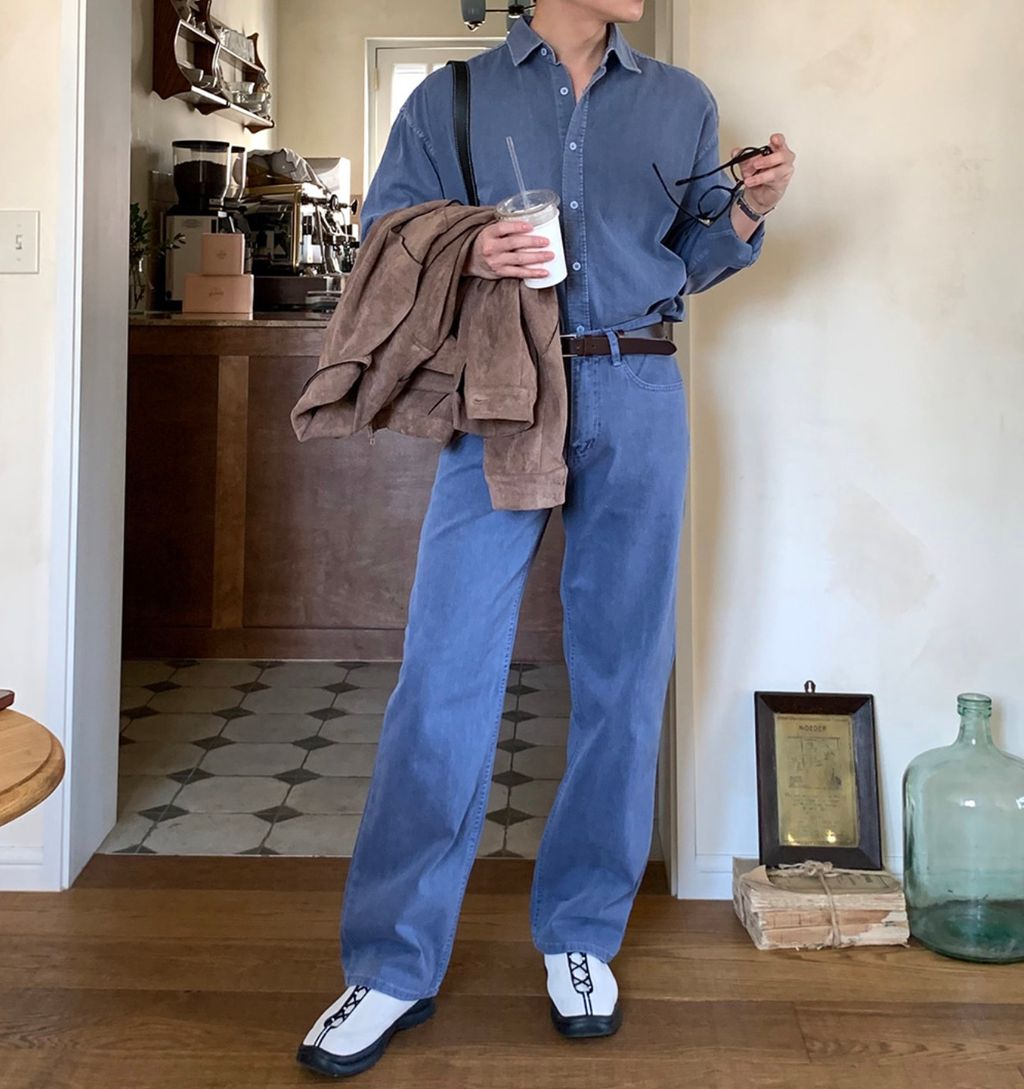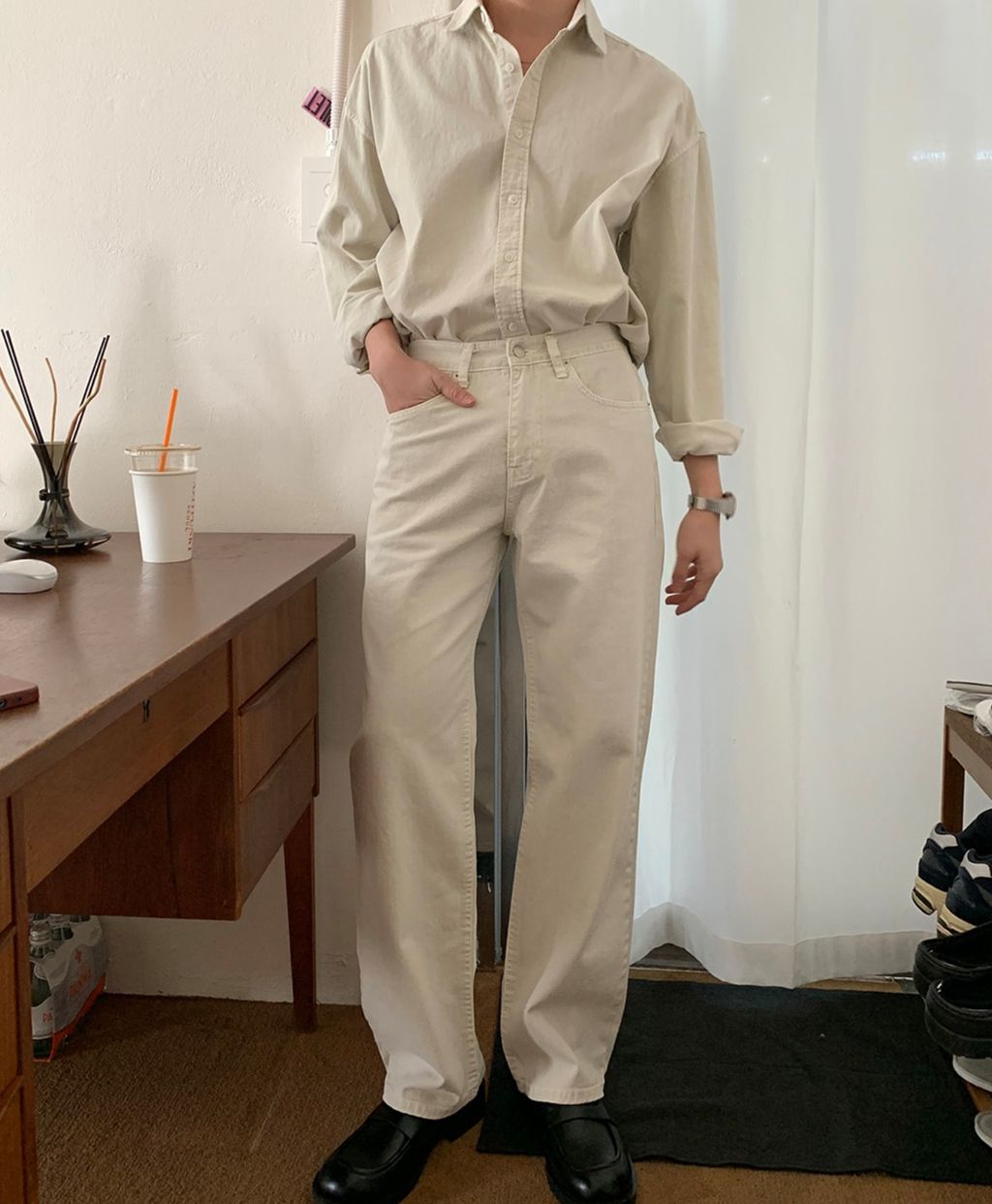 出清款 做舊洗色長袖襯衫 +丹寧布料長褲 五色 90583231
