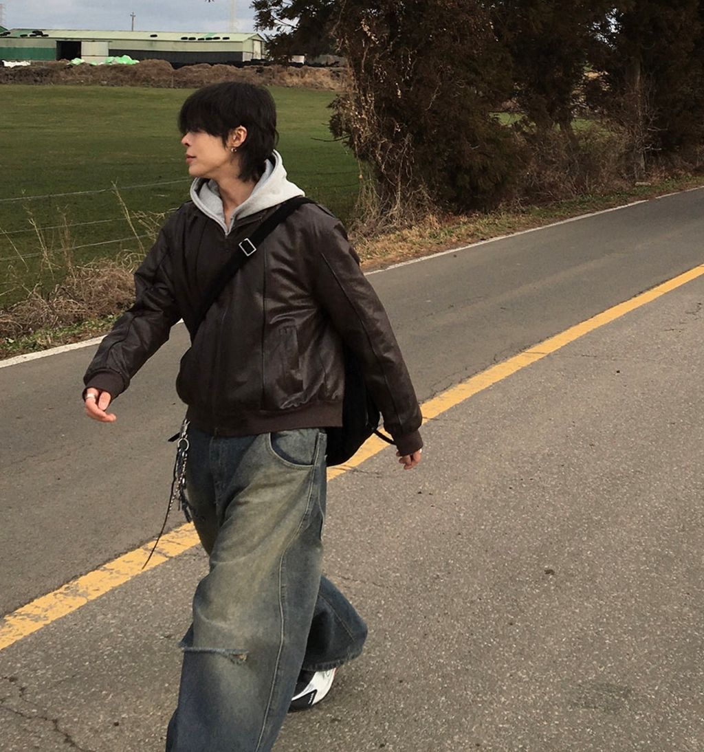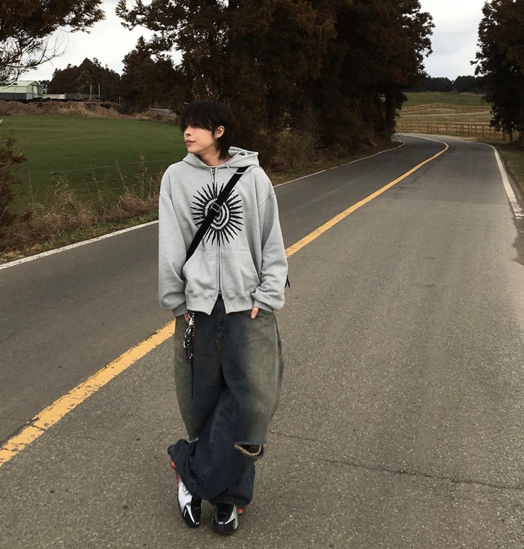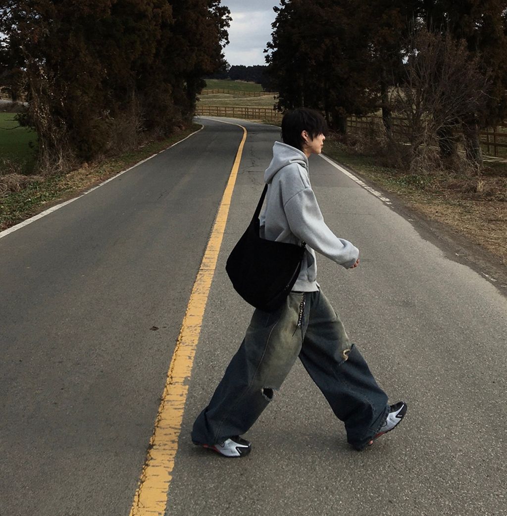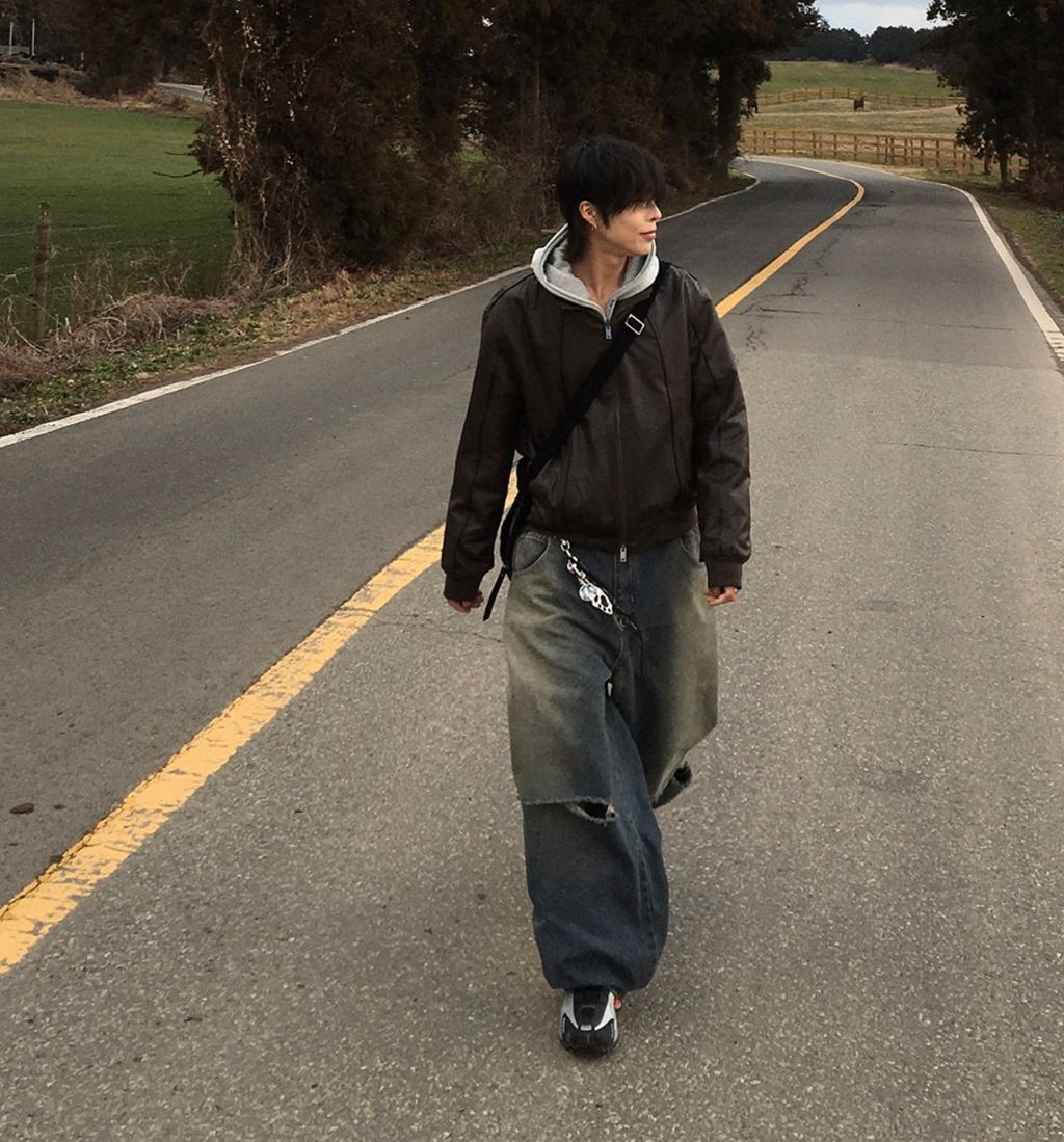 大腿刷白 膝蓋割破 寬管 彎刀 單寧牛仔褲 兩色