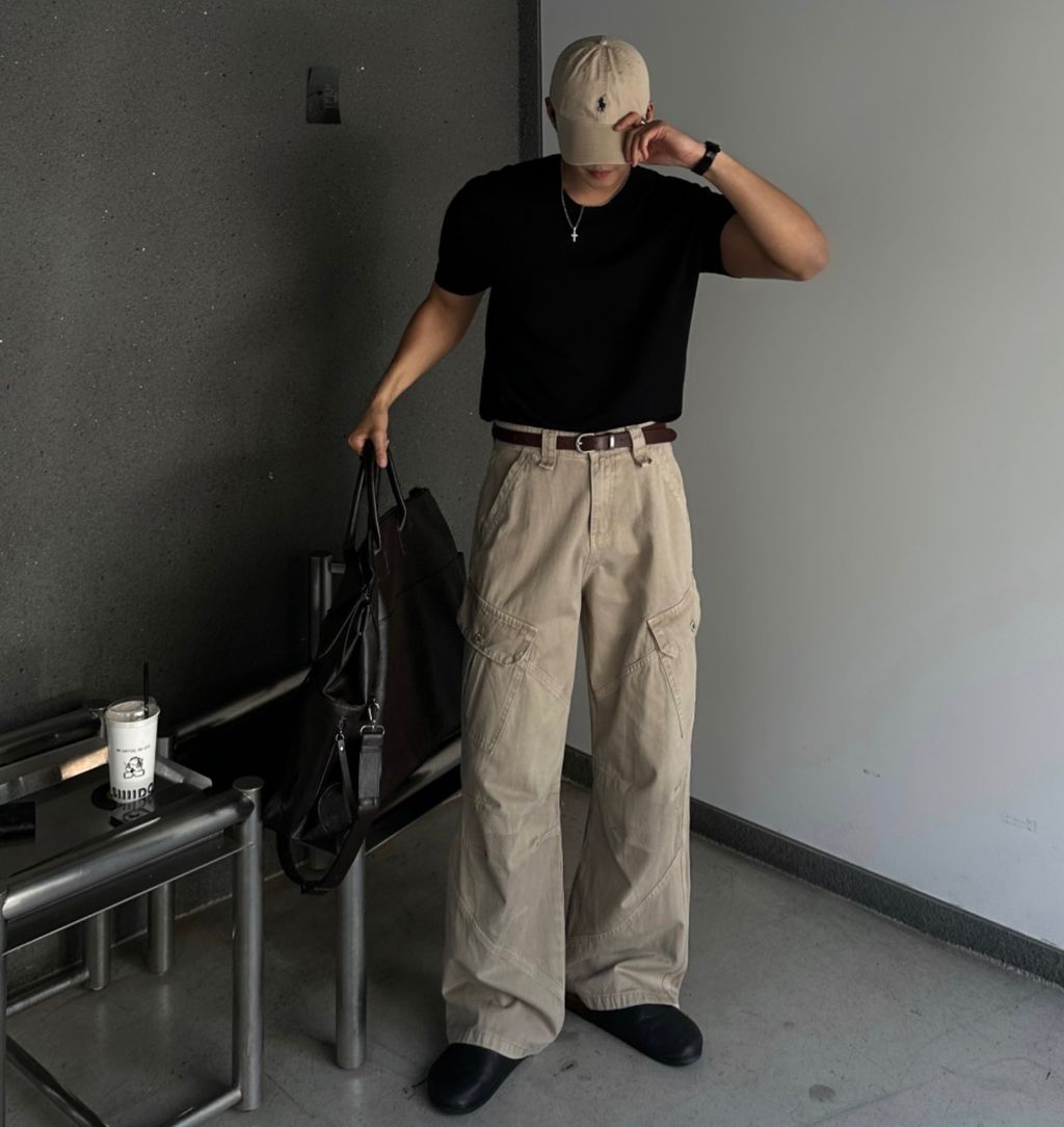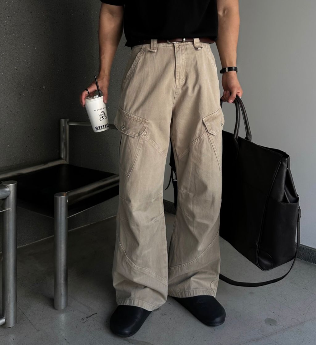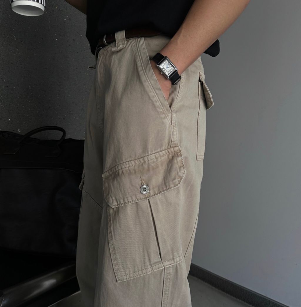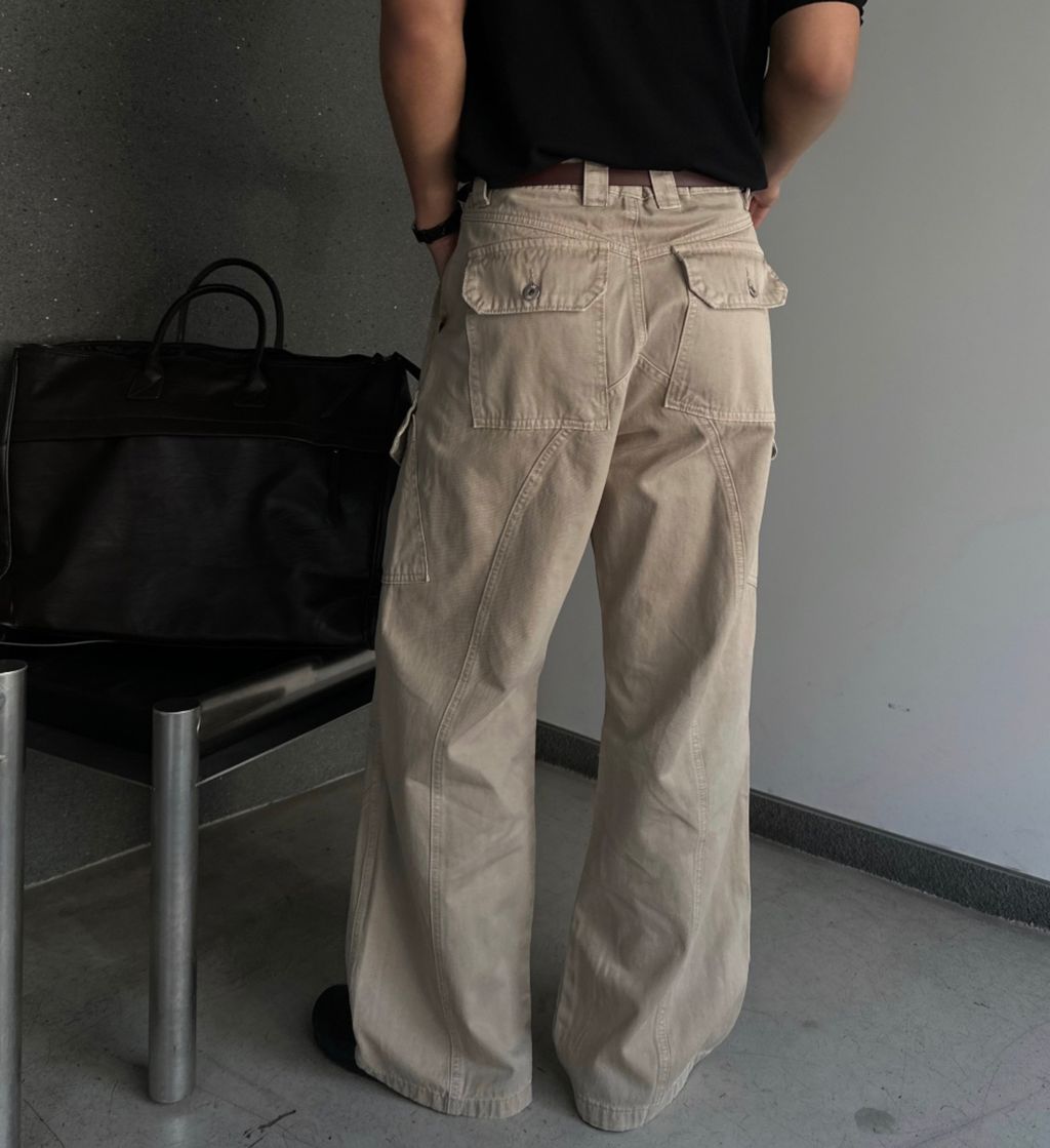 棉質 美式 雙口袋 直筒 工裝長褲 三色