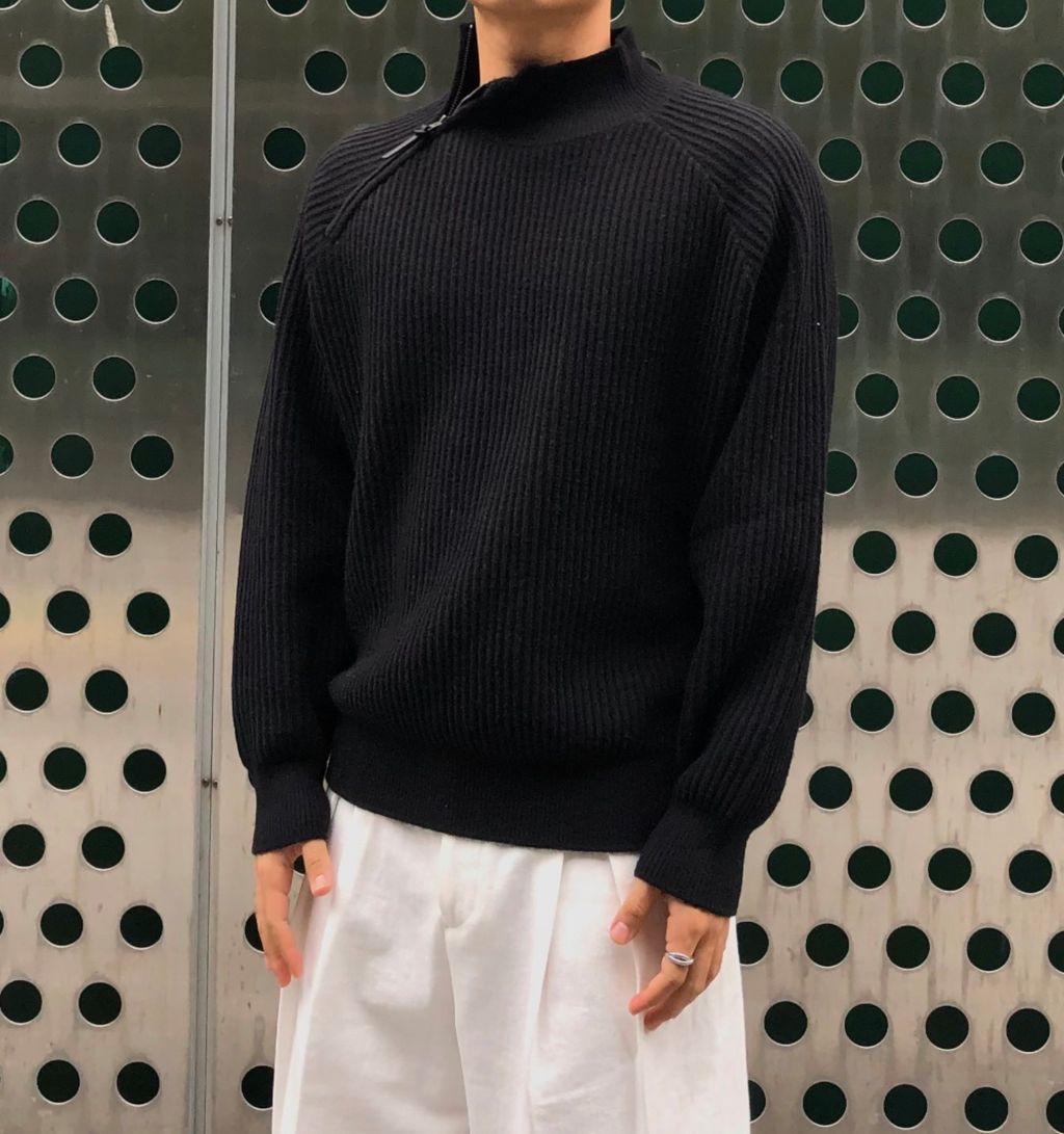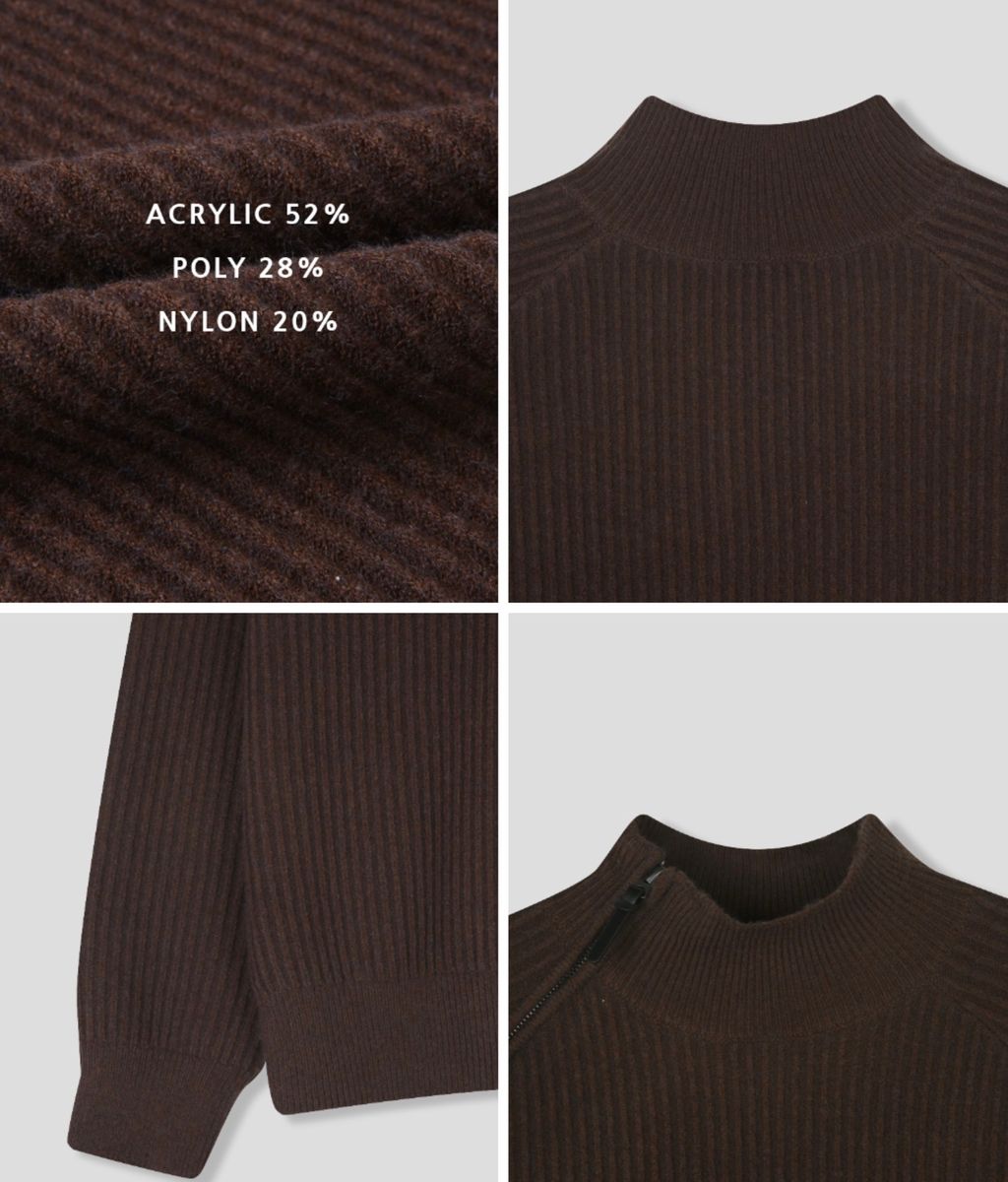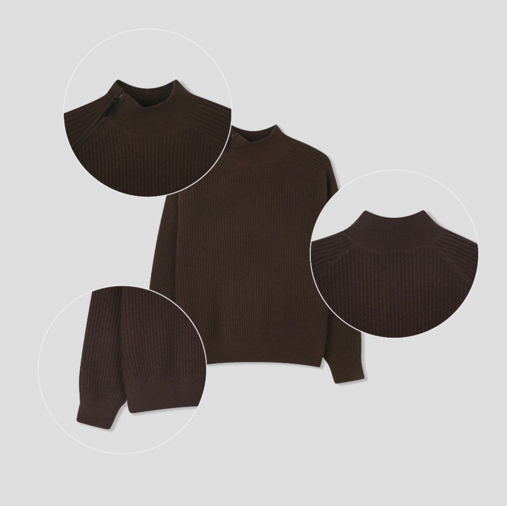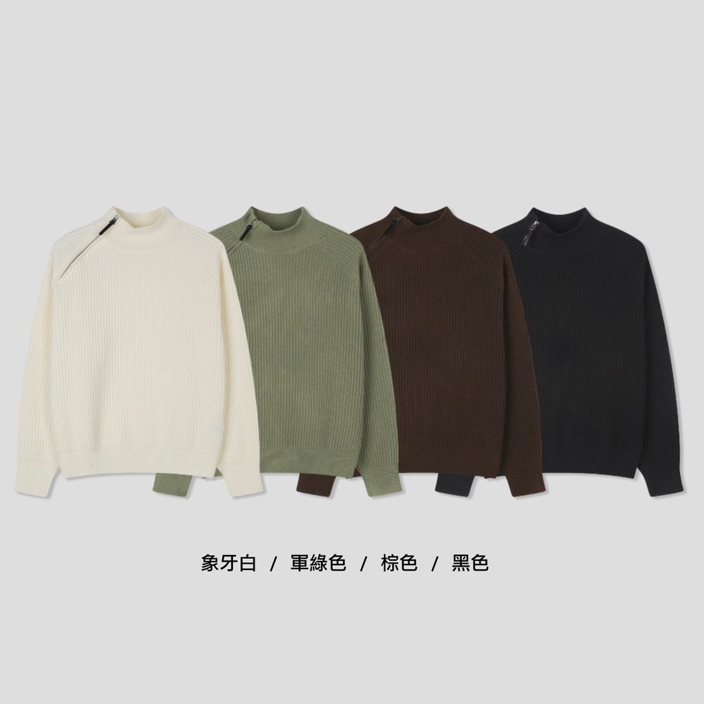 斜開高領 拉鍊裝飾 紋路布料 針織衫毛衣 四色