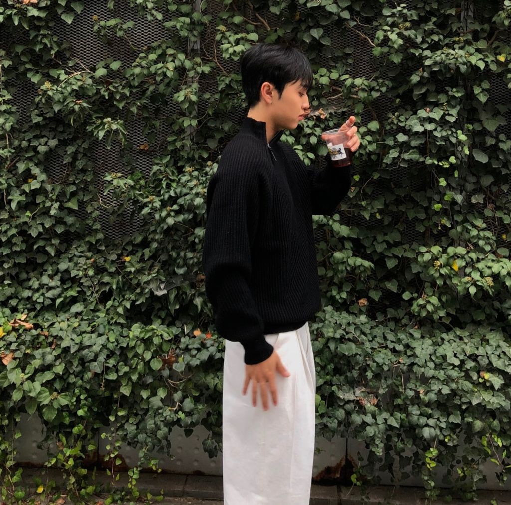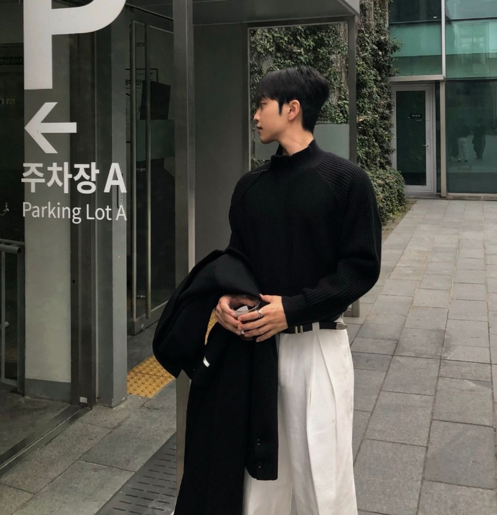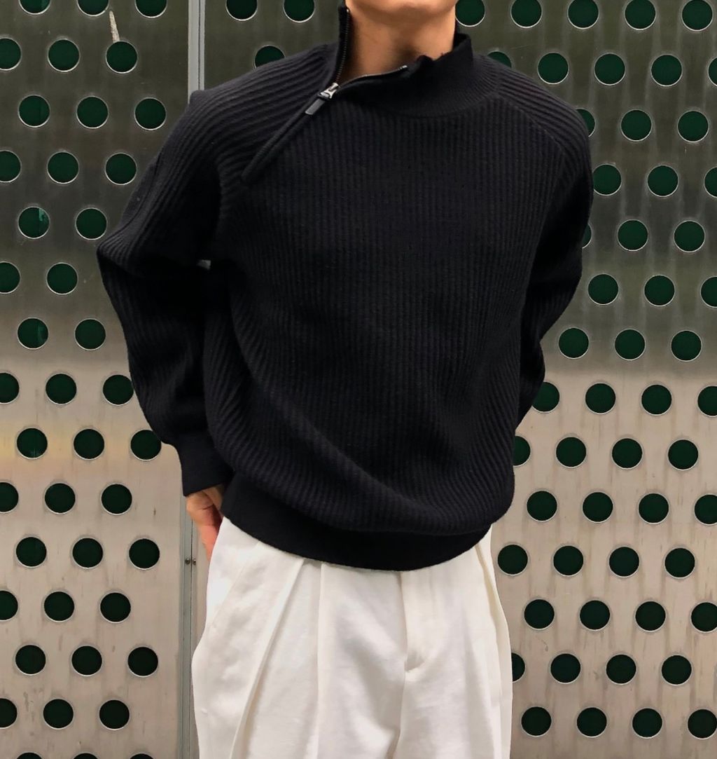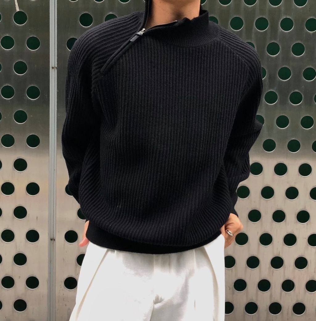 斜開高領 拉鍊裝飾 紋路布料 針織衫毛衣 四色
