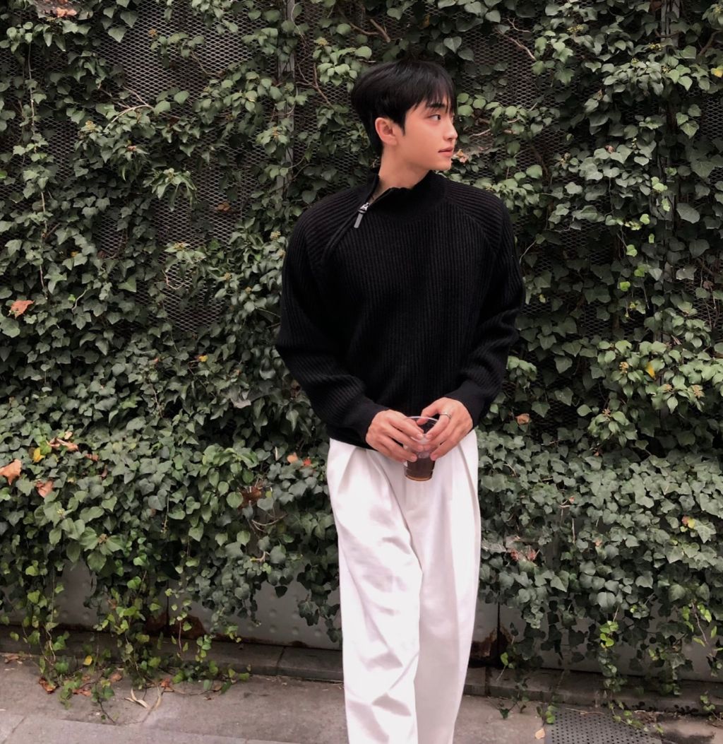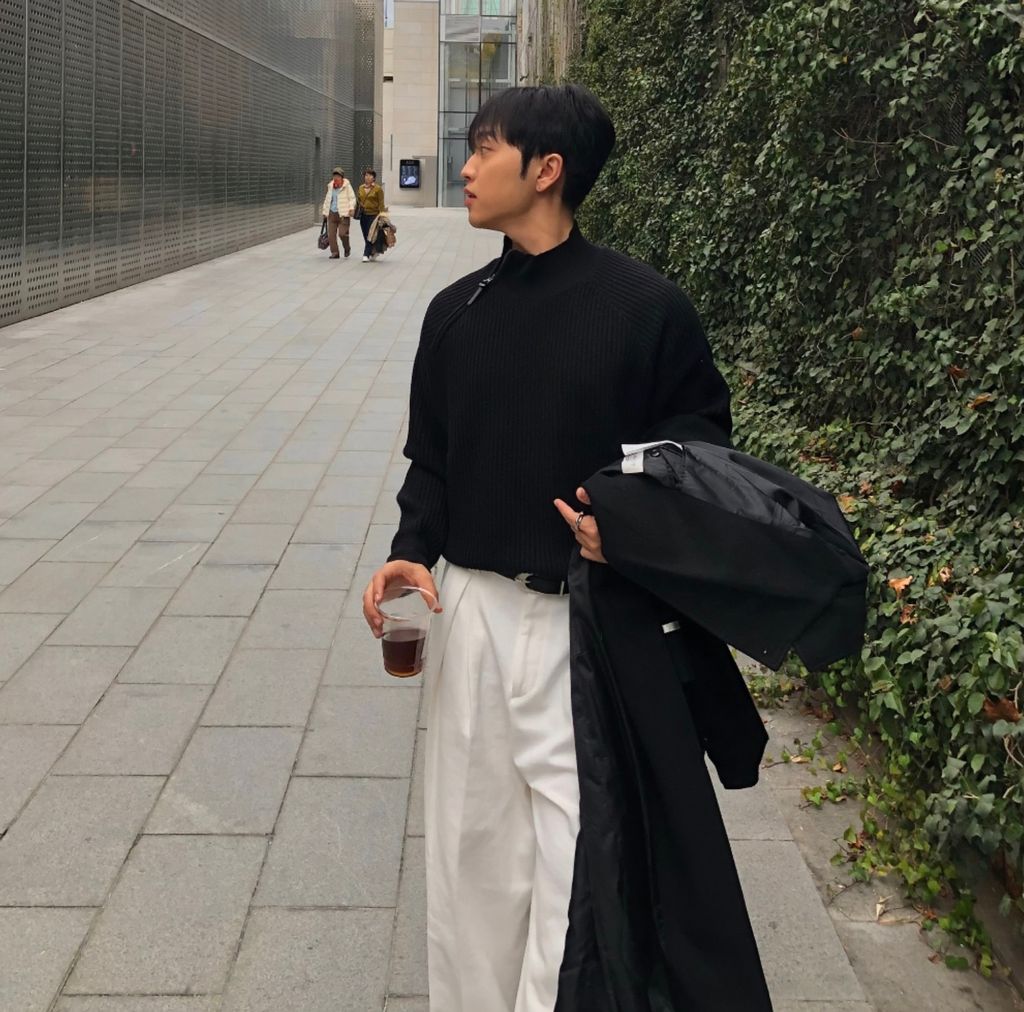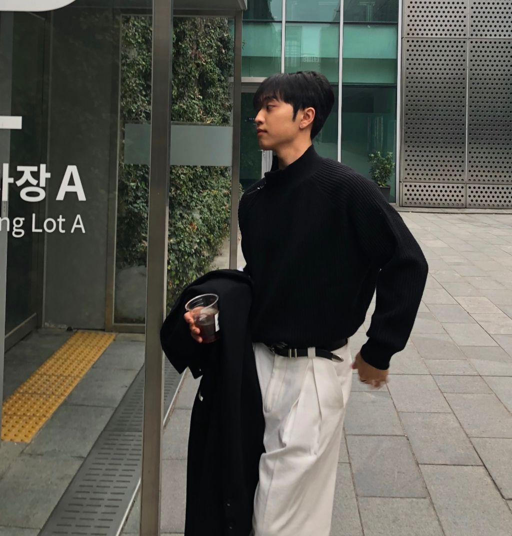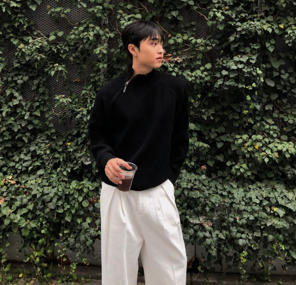斜開高領 拉鍊裝飾 紋路布料 針織衫毛衣 四色