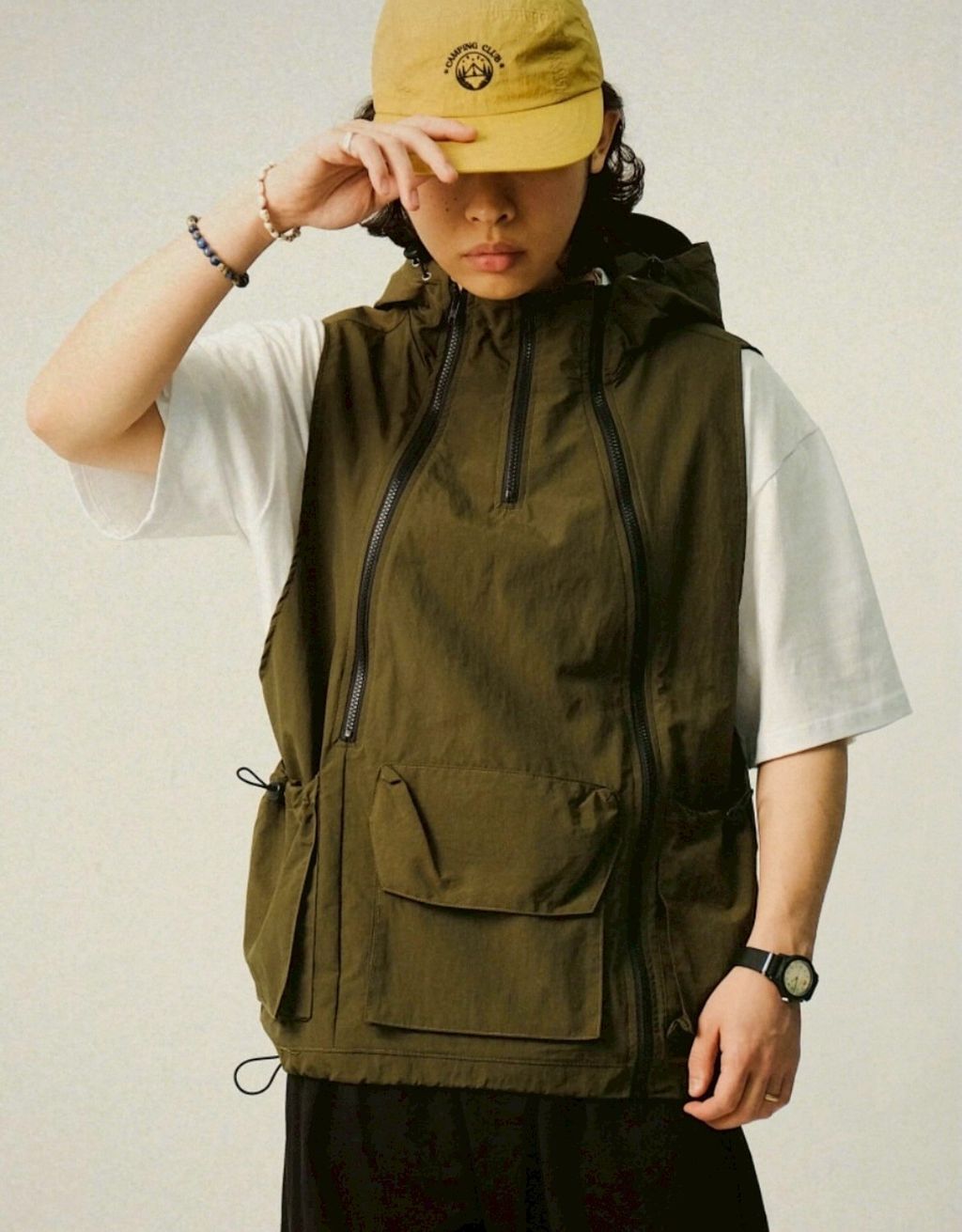 機能風 戶外風格 露營 山系 外搭連帽背心 四色