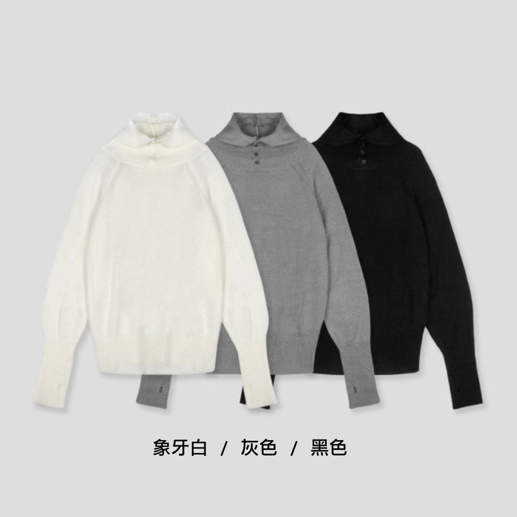 高領 x 連帽 x 袖套 x 排扣 長袖針織衫 三色