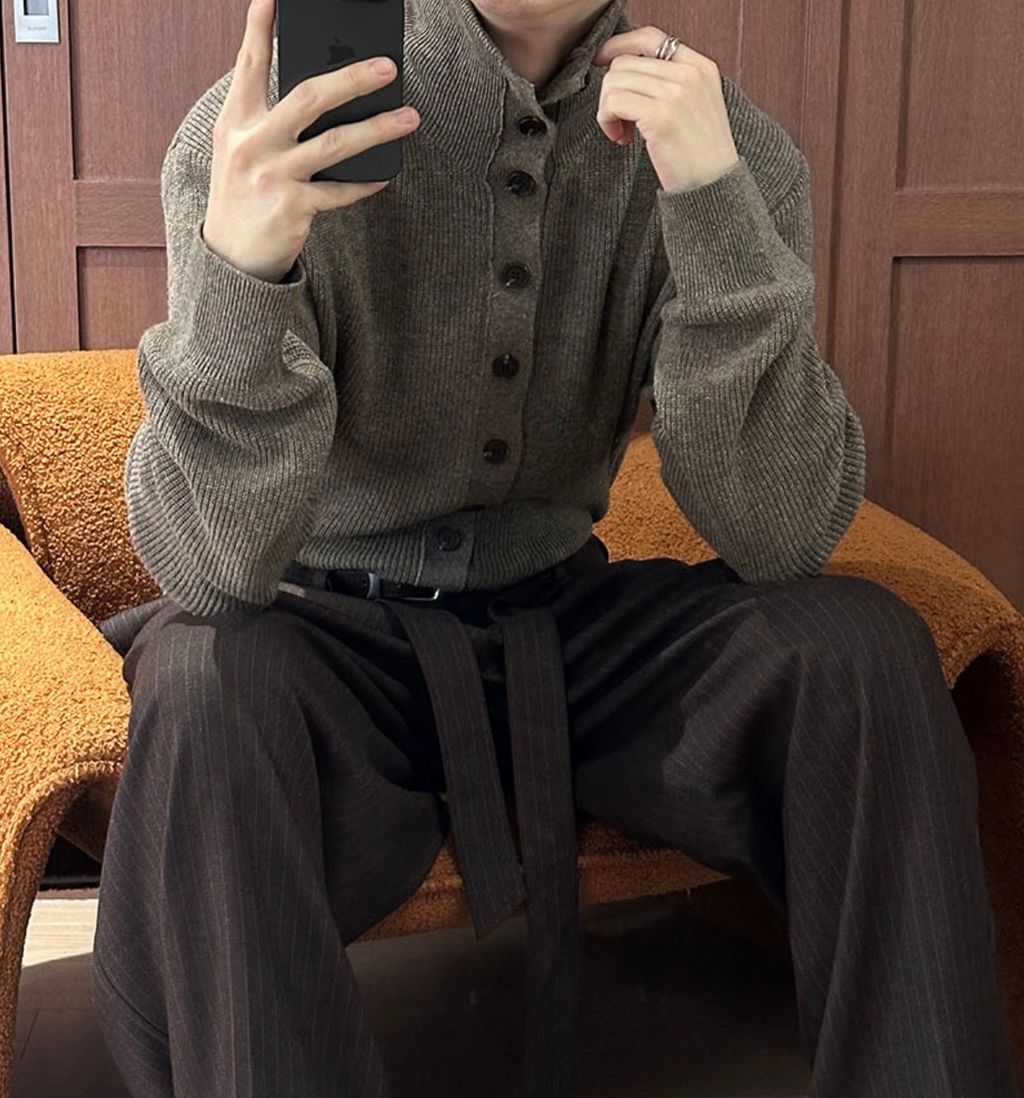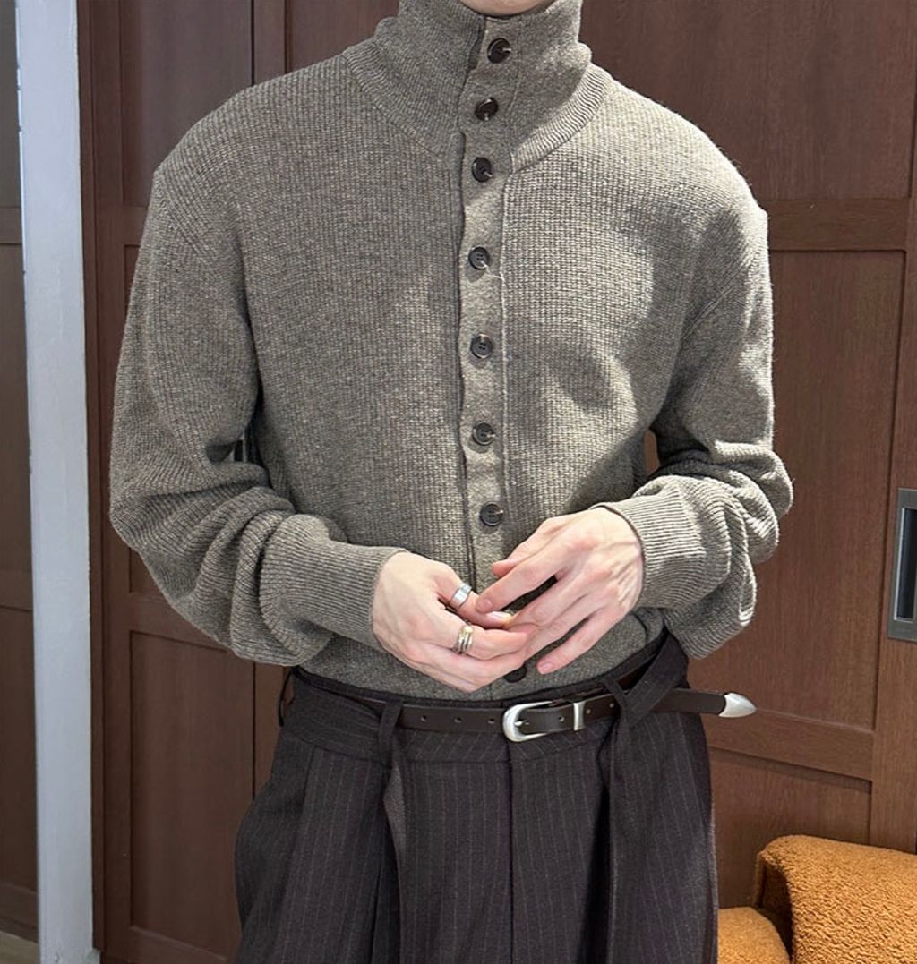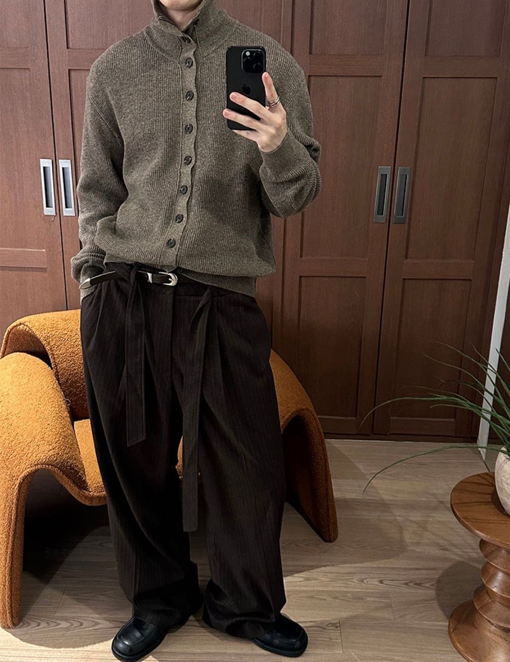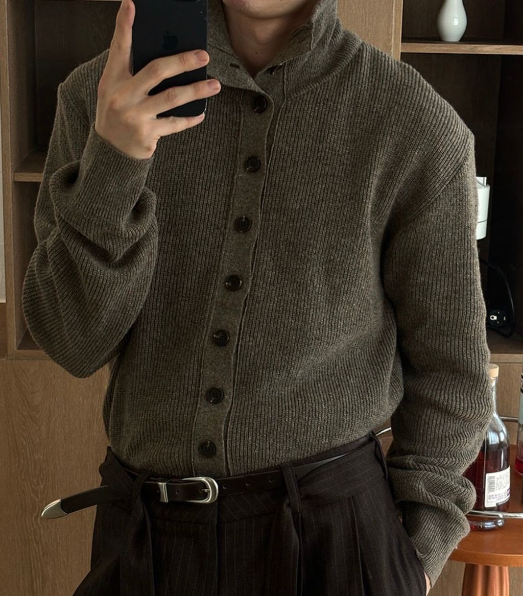 羊毛60趴 高領 大翻領 針織 開襟外套 三色