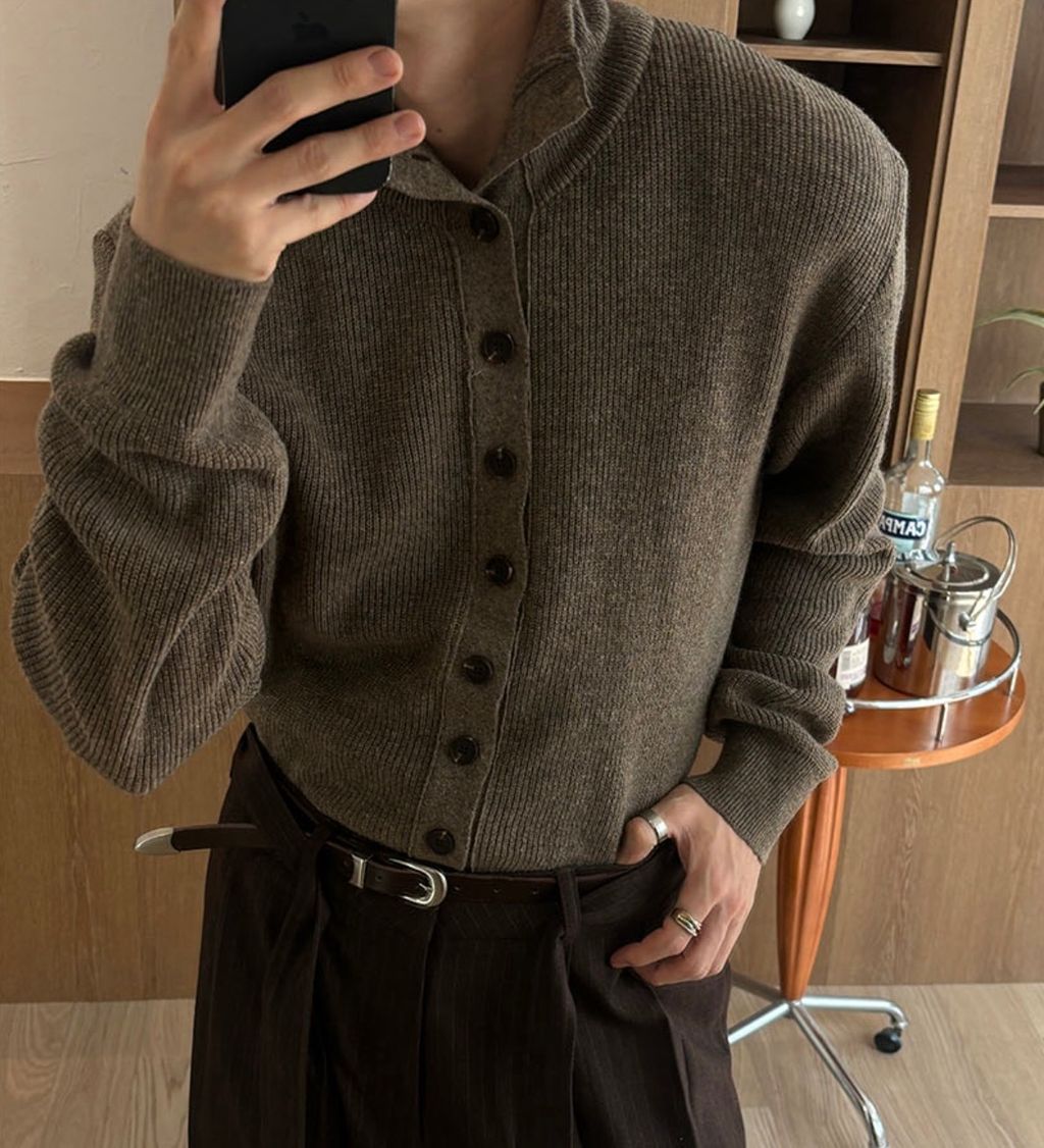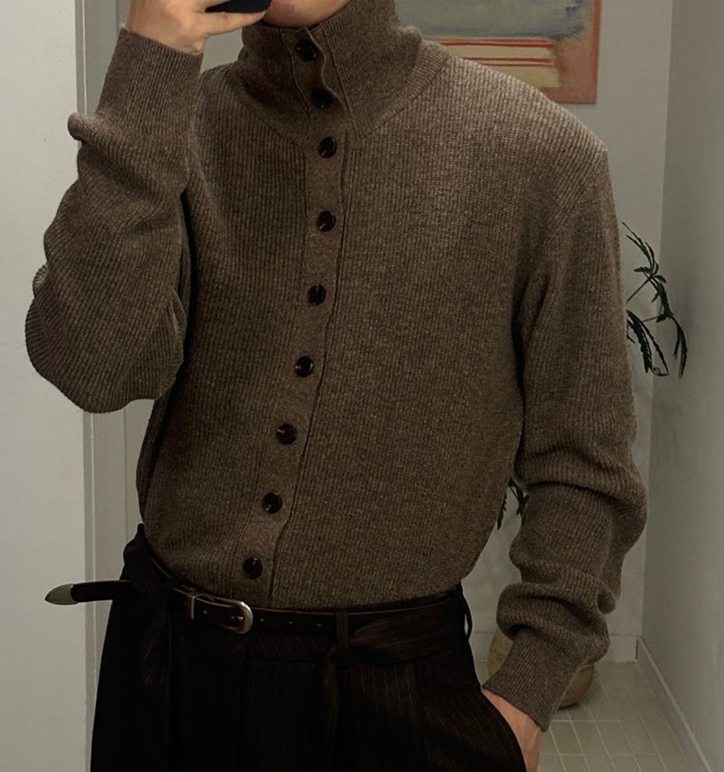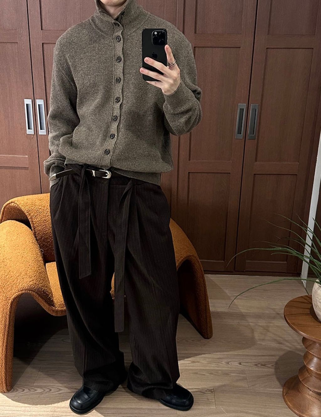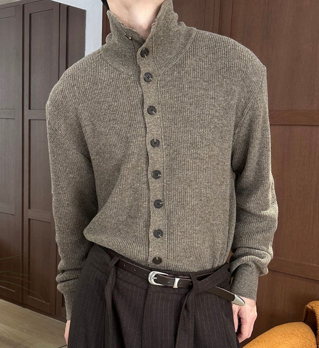 羊毛60趴 高領 大翻領 針織 開襟外套 三色