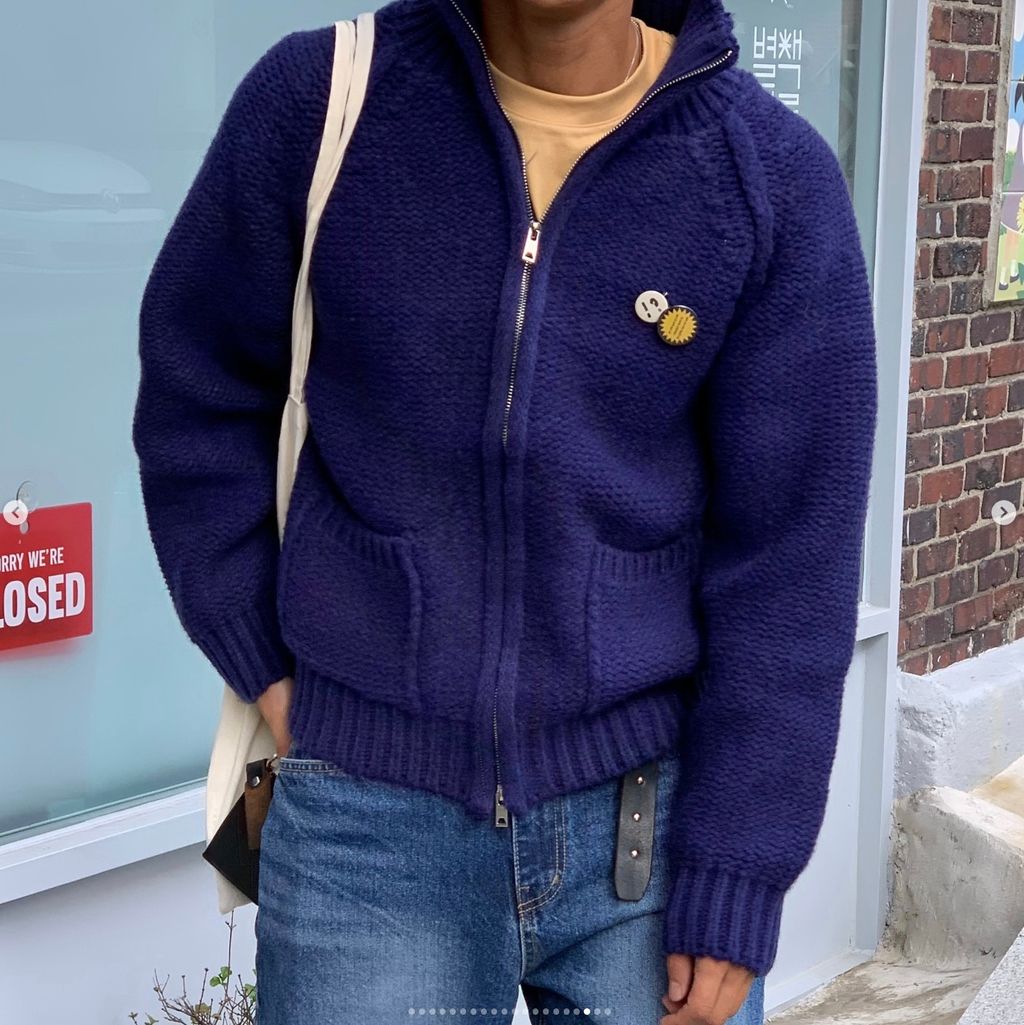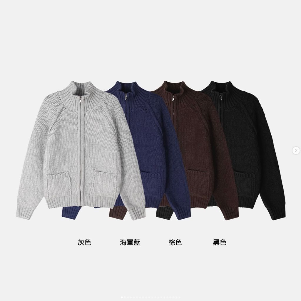 超粗針織落肩 高領 縮口 開襟外套 四色