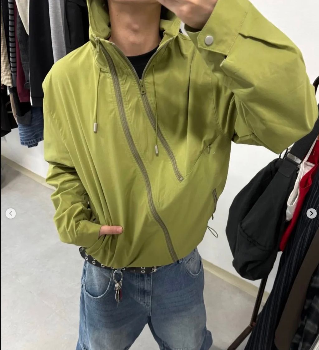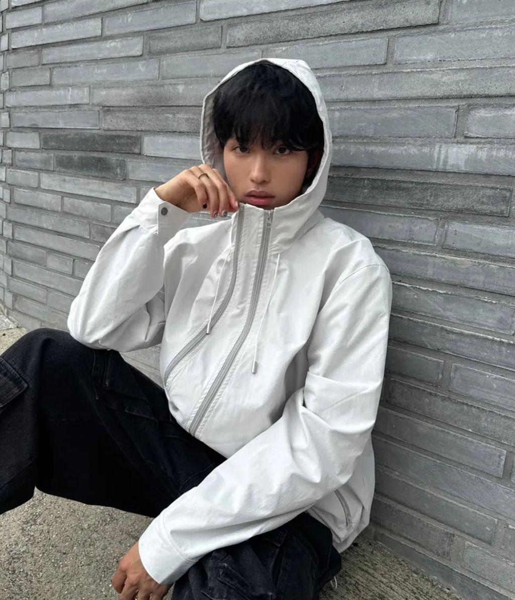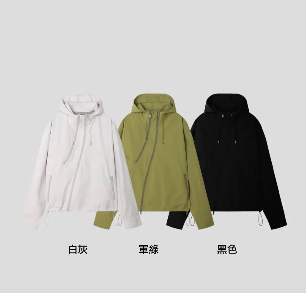 雙開 斜開拉鍊 防風 連帽外套夾克 三色