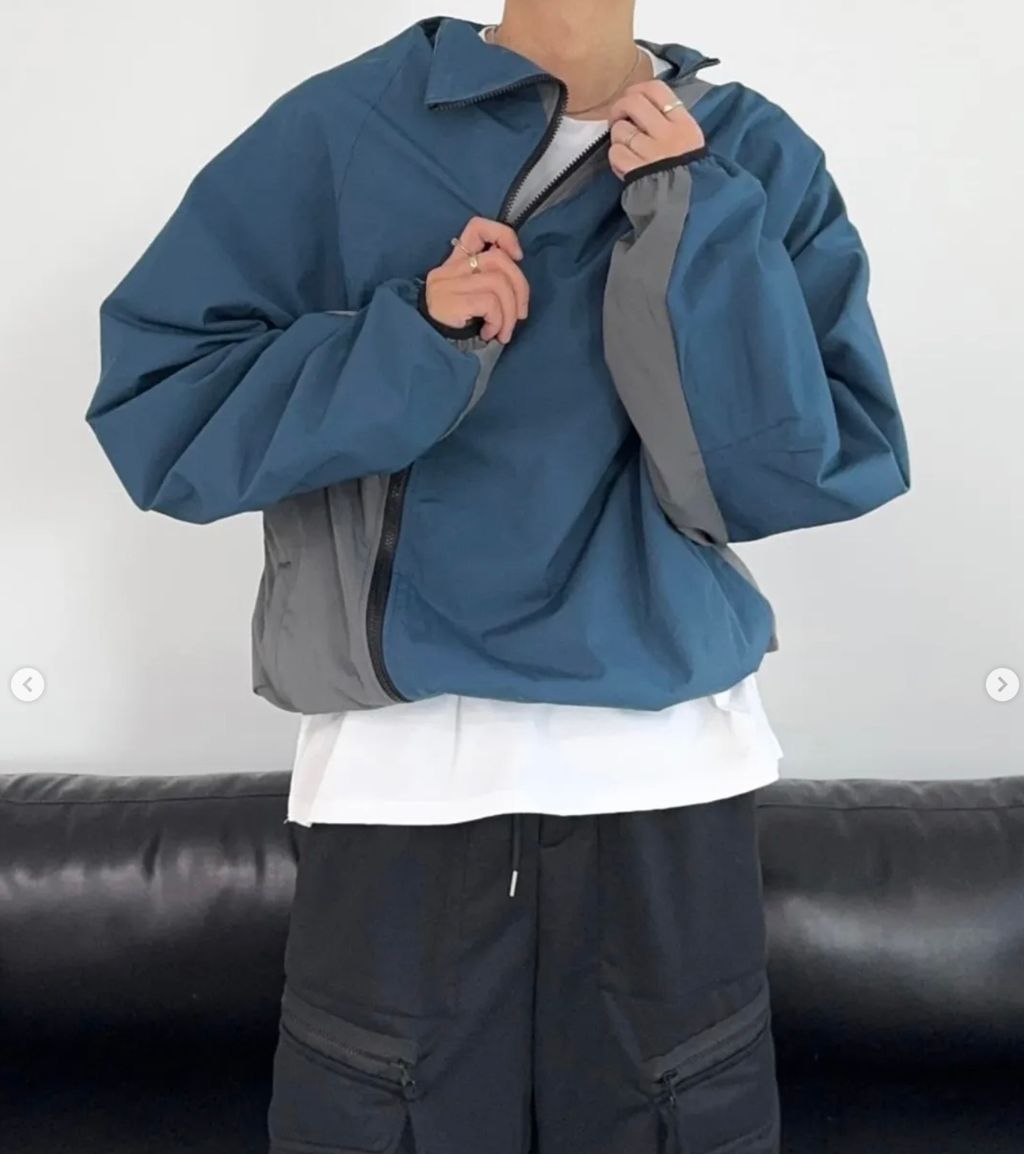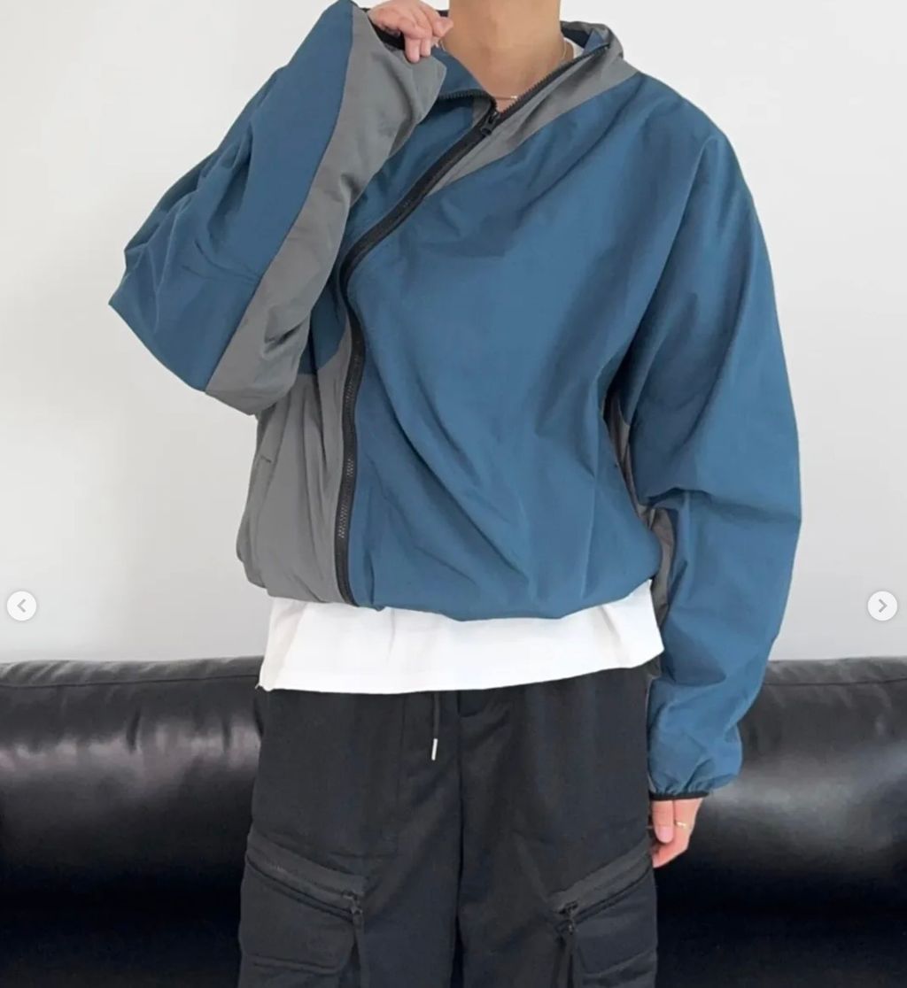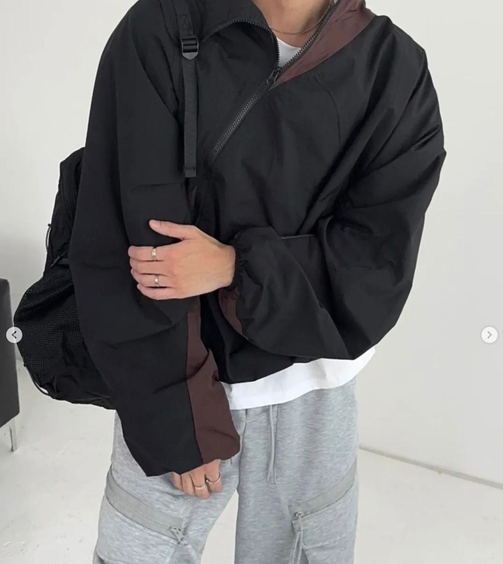 高領 拼色 拼接斜開拉鍊 防風外套夾克 兩色