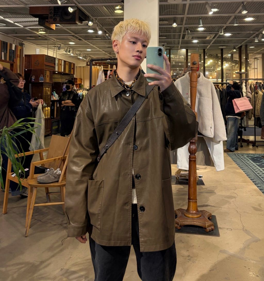 長版 皮革 短大衣 日系街頭 皮衣 兩色