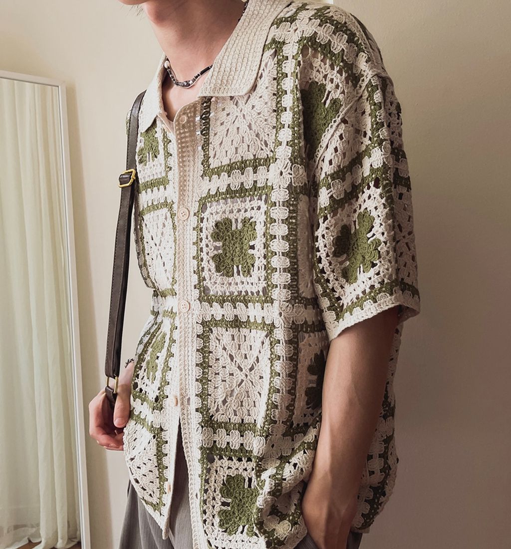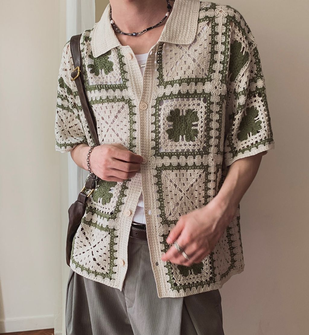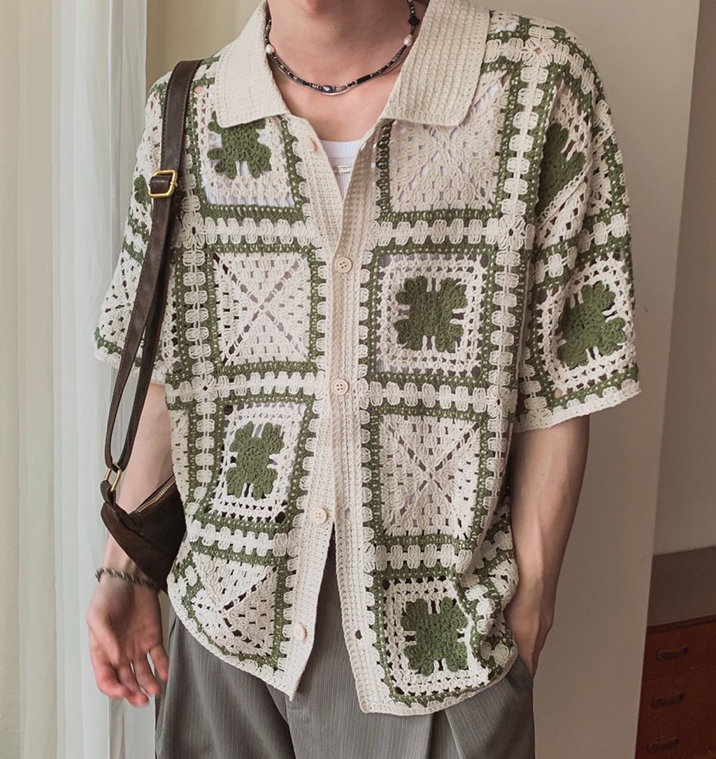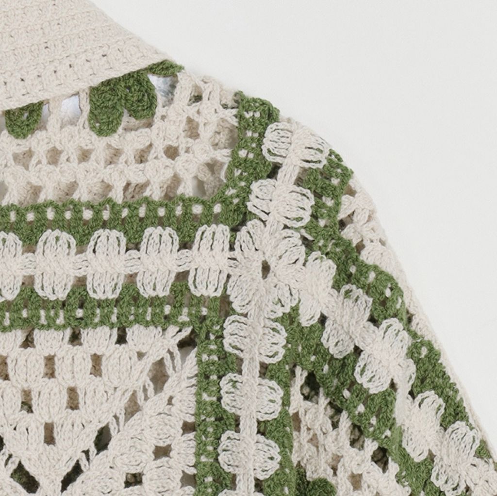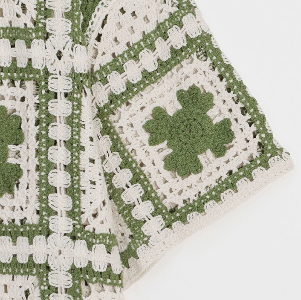 古著 鉤針 針織料 四葉草 針織 開襟衫 兩色